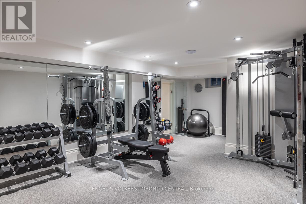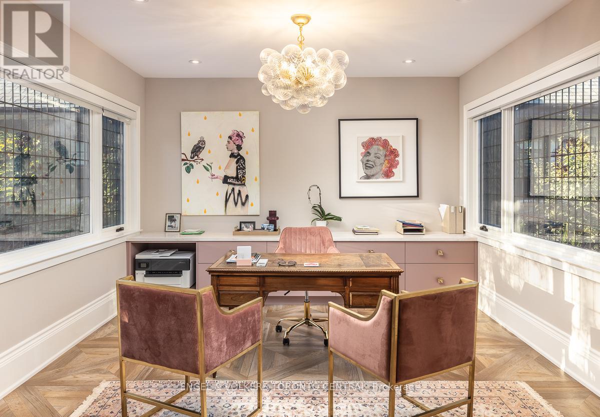 Welcome to One Bryce Avenue - a four-bedroom residence where classic elegance meets modern sophistication. Recently expanded and completely rebuilt from the studs out, this exquisite home perfectly blends the original architecture with refined finishes and thoughtful design. The main level features a sun-filled living room with fireplace, recessed lighting, and walkout to the deck. The entertainment-sized dining room with wainscotting and pocket doors flows seamlessly into both the living area and gourmet chef's kitchen, appointed with bespoke cabinetry, Miele appliances, and a generous island ideal for gatherings. A distinguished main-floor office with wall-to-wall windows offers a bright, inspiring workspace, while the adjoining family room with rich custom wood paneling and a fireplace creates a warm and inviting setting for relaxed evenings. Every room exudes understated luxury, accentuated by detailed millwork, coffered ceilings, and designer lighting.Upstairs, the serene primary suite offers a spa-inspired ensuite and walk-in closet, while the spacious second bedroom also includes its own ensuite bath. A sunlit office with built-ins and wall-to-wall windows provides a flexible retreat for work or reading. The third floor presents two additional bedrooms bathed in natural light beneath a striking skylight-perfect for family or guests.The finished lower level extends the living space with a professional-grade gym, relaxing sauna, temperature-controlled wine cellar, and ample storage. Even the garage reflects the home's craftsmanship, featuring custom shelving and organizational systems.Set on a quiet, tree-lined street, One Bryce Avenue will stand the test of time - a home where every element has been beautifully reimagined and lovingly restored. (id:65552)