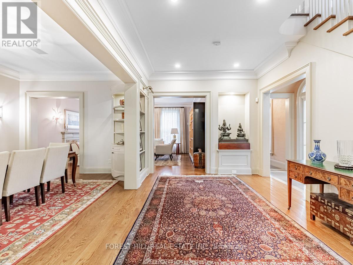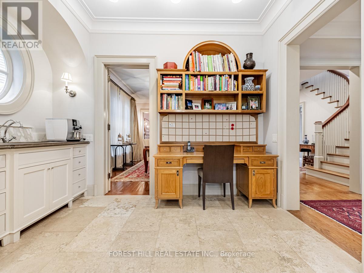 This exceptional residence, custom-designed in 2000 by the esteemed firm of Katharine Newman and Peter Cebulak, exemplifies luxurious living with the finest materials throughout. Lot pies out to 60 feet in rear. The home begins with a vestibule featuring an armoire closet and a chic two-piece powder room. The expansive layout flows effortlessly from the large foyer into spacious principal rooms, creating an airy and inviting atmosphere. The gourmet kitchen offers a coffee station, built-in desk, oversized island, and a bright breakfast room with French doors opening to an oversized terrace, perfect for al fresco dining or quiet relaxation. The adjacent family room features a fireplace, custom shelving, and walk-out access to the stone terrace. Separate living and dining rooms provide additional versatility. A mudroom with a separate entrance and ample closet space completes the main floor, which boasts 9'6" ceilings. Upstairs, the south-facing primary suite offers a walk-in closet and spa-like ensuite with dual vanities. Three additional generously sized bedrooms with abundant closet space and large windows, along with beautifully appointed bathrooms, complete this level. The lower level features heated floors, a large great room with built-in bookshelves and a wall-mounted TV, a gym/office with built-in desks, and a fifth bedroom with a large closet. A fully-finished laundry room with ample storage, a walk-in wine cellar, and an additional four-piece bath provide exceptional convenience. The spectacular stone terrace leads to professionally landscaped gardens with a stone BBQ area. The detached stone garage, built in 2010, complements the homes exterior and features a heated driveway. Ideally located within walking distance to the best private schools (BSS and UCC, )as well as shops, restaurants, transit, and places of worship. This home offers the perfect blend of luxury, convenience, and style! (id:65552)