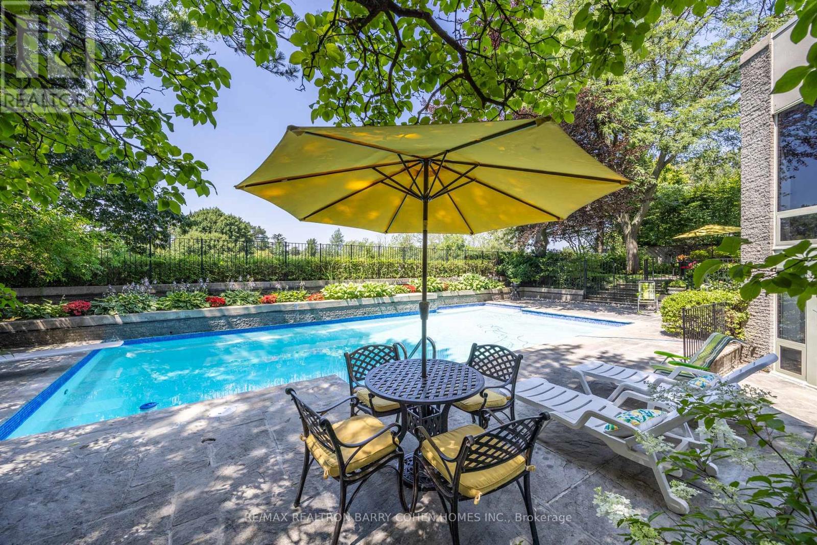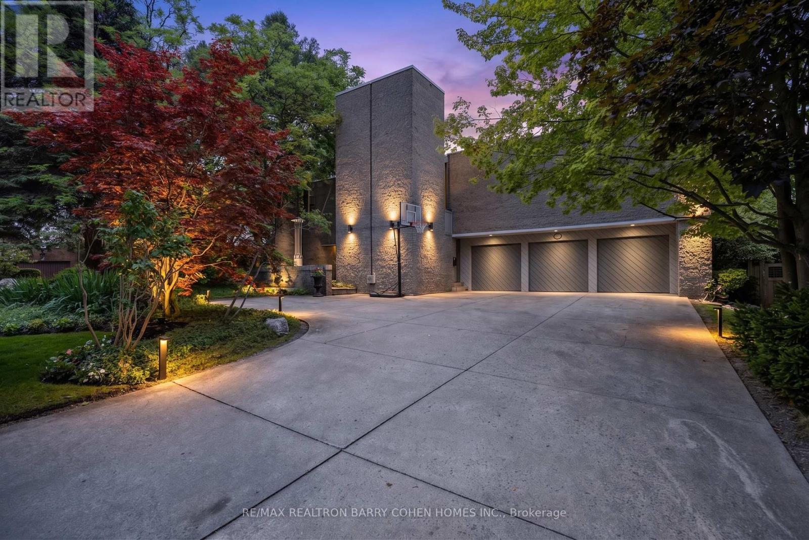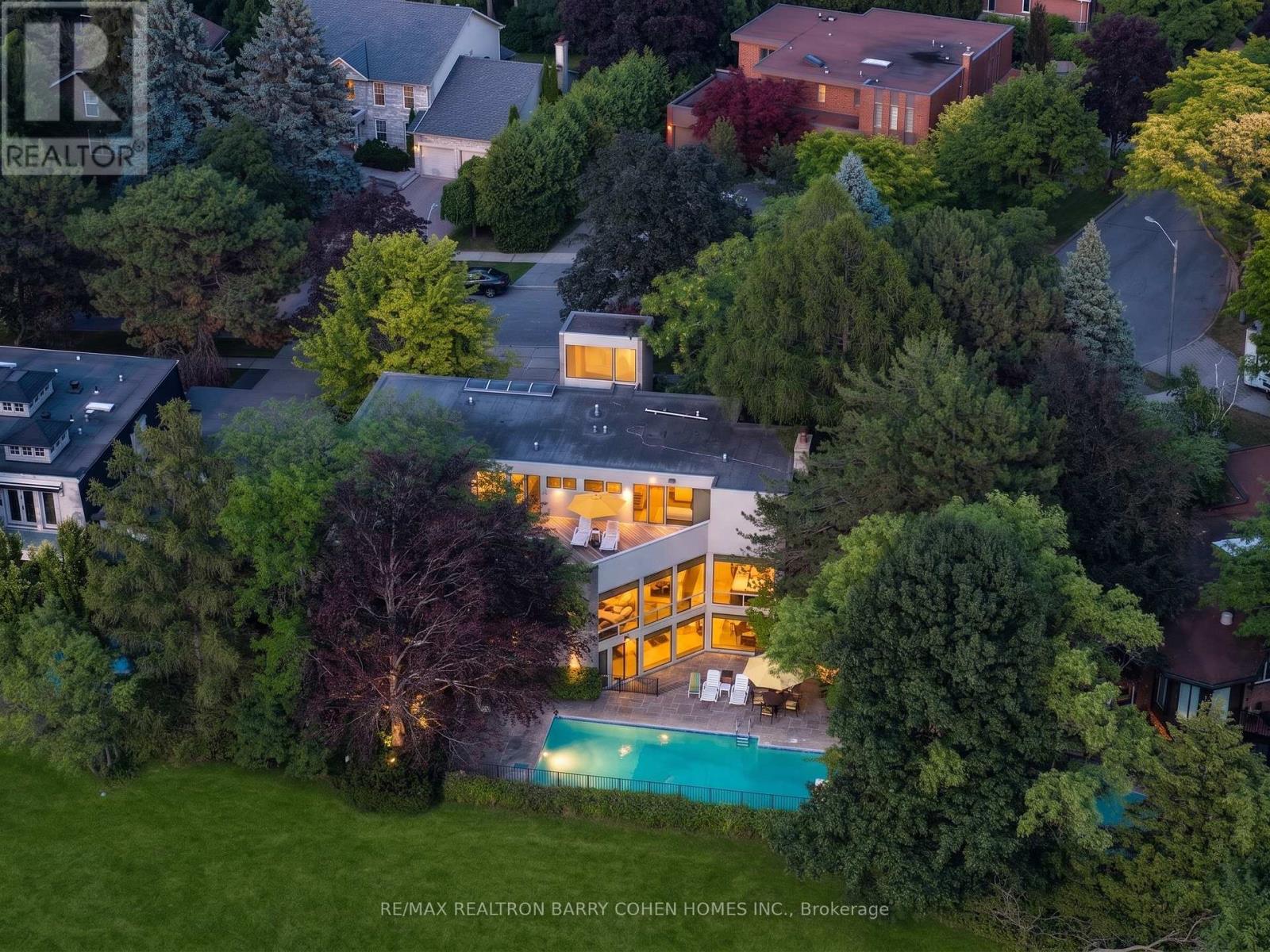 An iconic showcase of refined design, upgraded and perfectly positioned in the prestigious Windfields neighbourhood, this exceptional residence offers unparalleled privacy and a seamless connection to the natural beauty of Windfields Park. Bold Brutalist architecture creates a dramatic, light-filled interior with floor-to-ceiling picture windows on every level, adorned with custom Belgian linen window coverings. An expansive second-floor sundeck provides sweeping park views and is accessible from all four bedrooms, while the lower level opens effortlessly to lush rear gardens. The main floor is designed for elegant entertaining, featuring formal living and dining areas, a sunken family room, a chef's kitchen with servery, and walk-outs to a flagstone patio and shimmering concrete pool. A sculptural open-riser staircase enhances the flow of natural light throughout the home. The lower level offers a luxurious retreat with a fifth bedroom, wet bar, recreation room with wood-burning fireplace, sauna, and floor-to-ceiling garden views with walk-up access to the patio. A three-car garage and circular driveway accommodating 8+ vehicles provide ultimate convenience, while proximity to top schools, 401/404/DVP, and the exclusive Granite Club ensure unparalleled lifestyle ease. A rare urban sanctuary, this home combines dramatic design, refined luxury, and a serene parkside setting for a truly extraordinary living experience.