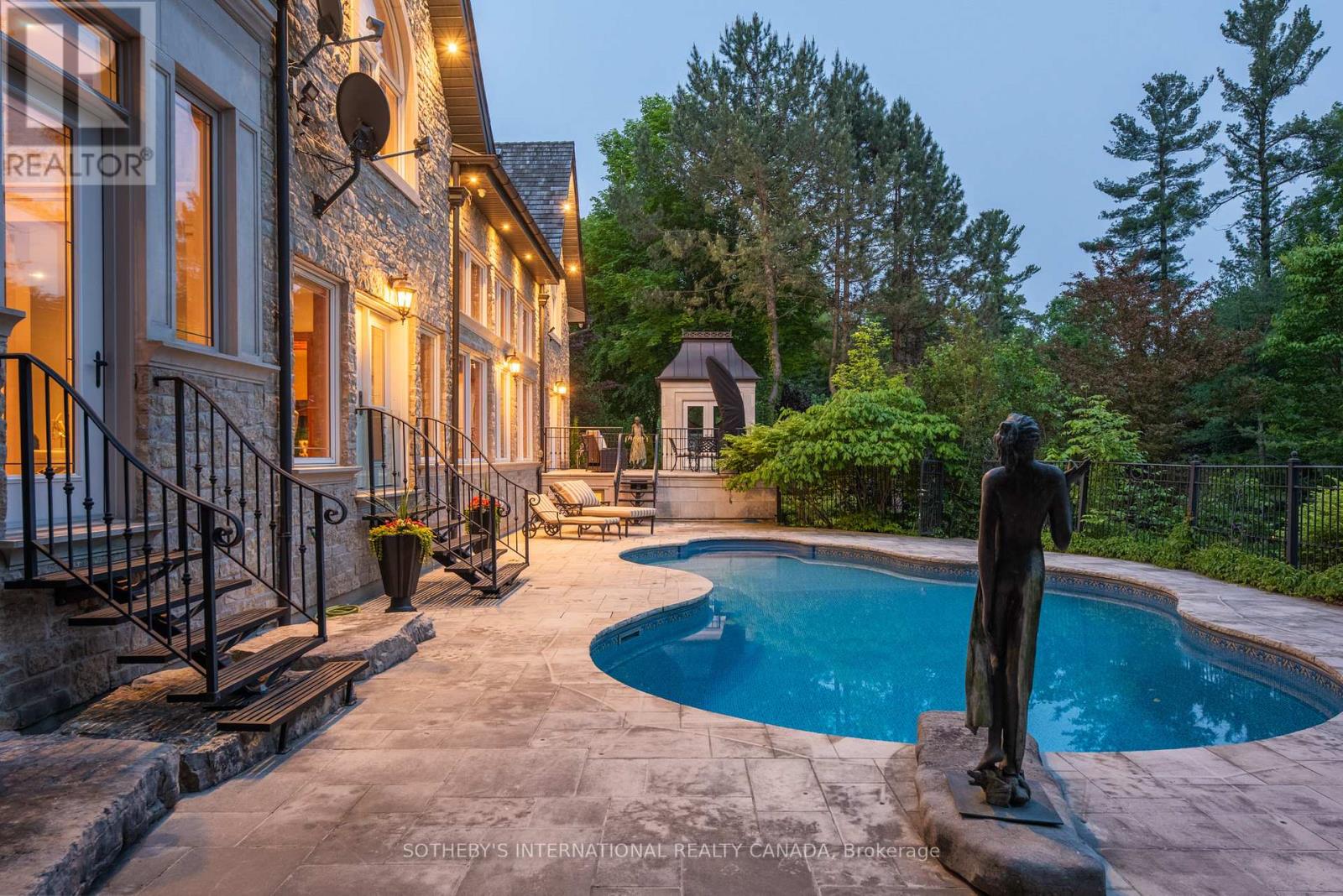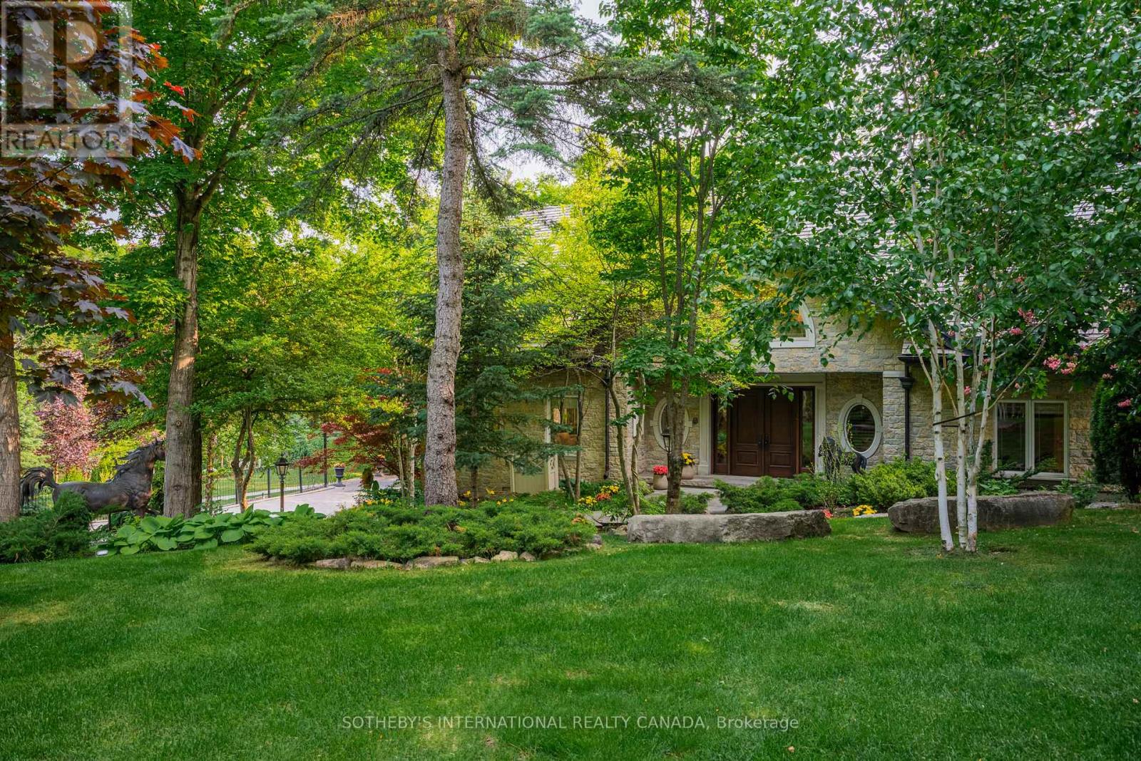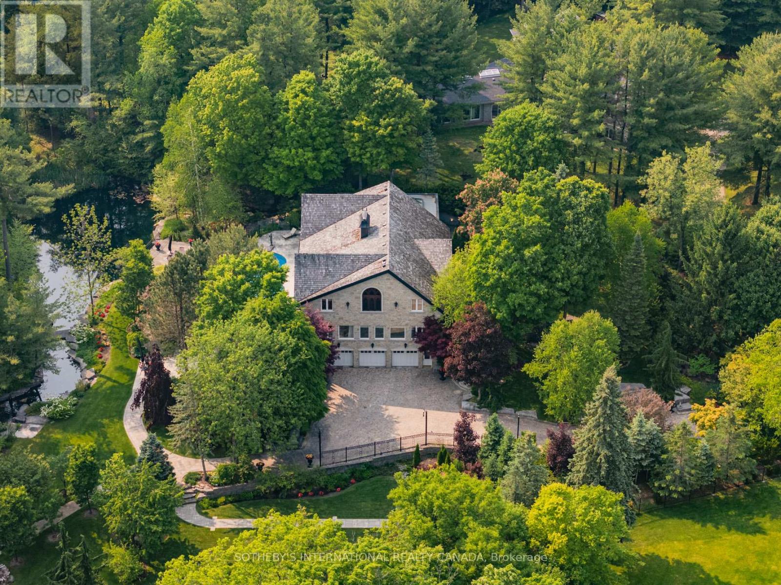 Exquisite Country Estate in Prestigious Kleinburg, Welcome to a truly one-of-a-kind oasis, nestled on over an acre of professionally landscaped grounds in the heart of Kleinburg, backing onto the prestigious Copper Creek Golf Club. This magnificent stone family home boasting over 6000 sq ft offers 4 spacious bedrooms, 6 luxurious bathrooms, and expansive principal rooms with soaring ceilings and top-of-the-line quality finishes throughout. The heart of the home is a gourmet chefs kitchen, seamlessly blending elegance and functionality for everyday living and exceptional entertaining. The finished lower level is a dream retreat, complete with a large wine cellar, perfect for connoisseurs. Outdoors, your private sanctuary awaits: In ground pool and spa with magical water features and two cascading waterfalls. Terrace with a custom-built BBQ house, complete with an overhead ventilation system. Pool house featuring a full chefs kitchen and 3-piece bath, opening directly to the terrace ideal for entertaining. Spring-fed pond , creating a serene, resort-like atmosphere. Heated private driveway, 3-car garage, outdoor lighting, in-ground sprinkler system, and lush rockery gardens all meticulously designed for year-round beauty and comfort. This rare gem combines unmatched luxury, privacy, and natural beauty, offering the best of refined country living just backing onto Copper Creek Golf Club & minutes from the conveniences of the city. Experience the magic of this breathtaking estate schedule your private tour today. (id:65552)