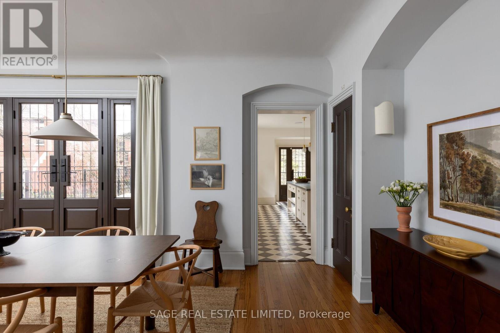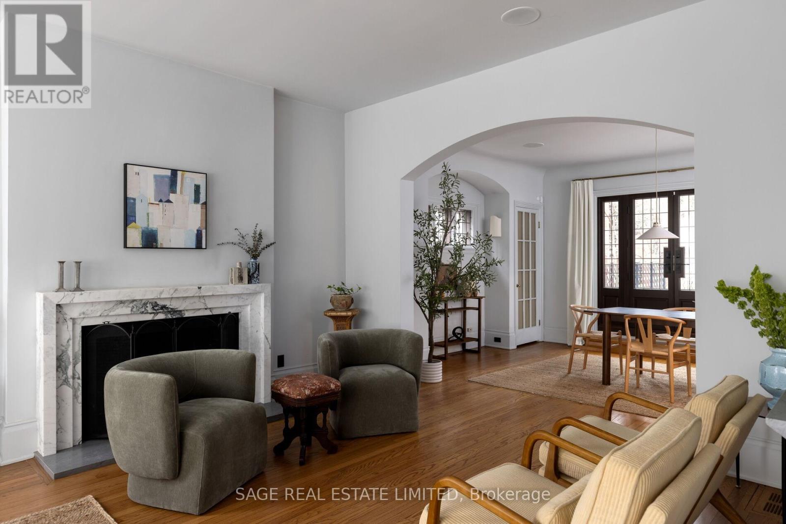 Originally a stately classic residence, this exceptional Rosedale home was thoughtfully reimagined in 2021 under the direction of acclaimed interior designers Michelle R. Smith and Hayley Bridget Cavagnolo. The result is a rare and seamless blend of timeless character and contemporary luxury-refined, welcoming, and rich in detail. Set behind lush landscaping, the home offers striking street presence with a quiet confidence that immediately captures attention. Inside, five bedrooms and five beautifully designed bathrooms are complemented by craftsmanship rarely found. Hand-painted flooring throughout the main level adds subtle artistry, while three wood-burning fireplaces-one anchoring the kitchen-bring warmth and charm to everyday living.The chef's kitchen is both functional and elegant, featuring a Wolf range, Sub-Zero Pro Series refrigeration, an oversized eat-in area, and a walk-out to an expansive deck that seamlessly extends the living space outdoors. A butler's pantry adds thoughtful storage and effortless entertaining appeal.Designed for hosting and relaxing alike, the home features a built-in Sonos sound system throughout the interior and backyard. Outdoors, a private resort-style setting awaits with a saltwater pool equipped with smart heating and lighting-perfect for year-round enjoyment.The third-floor retreat offers exceptional flexibility, complete with a family lounge, workspace, guest bedroom, full bath, and private rooftop deck. On the lower level, a sauna provides a spa-like escape, completing this truly one-of-a-kind Rosedale residence. (id:65552)
