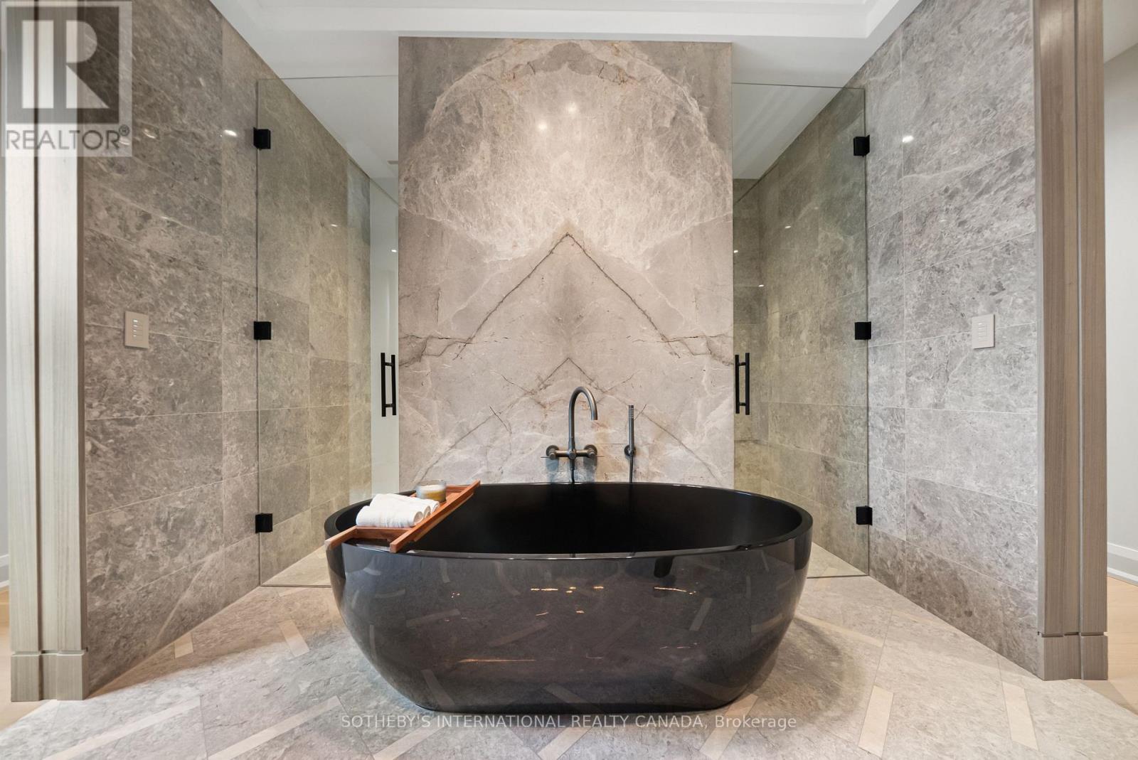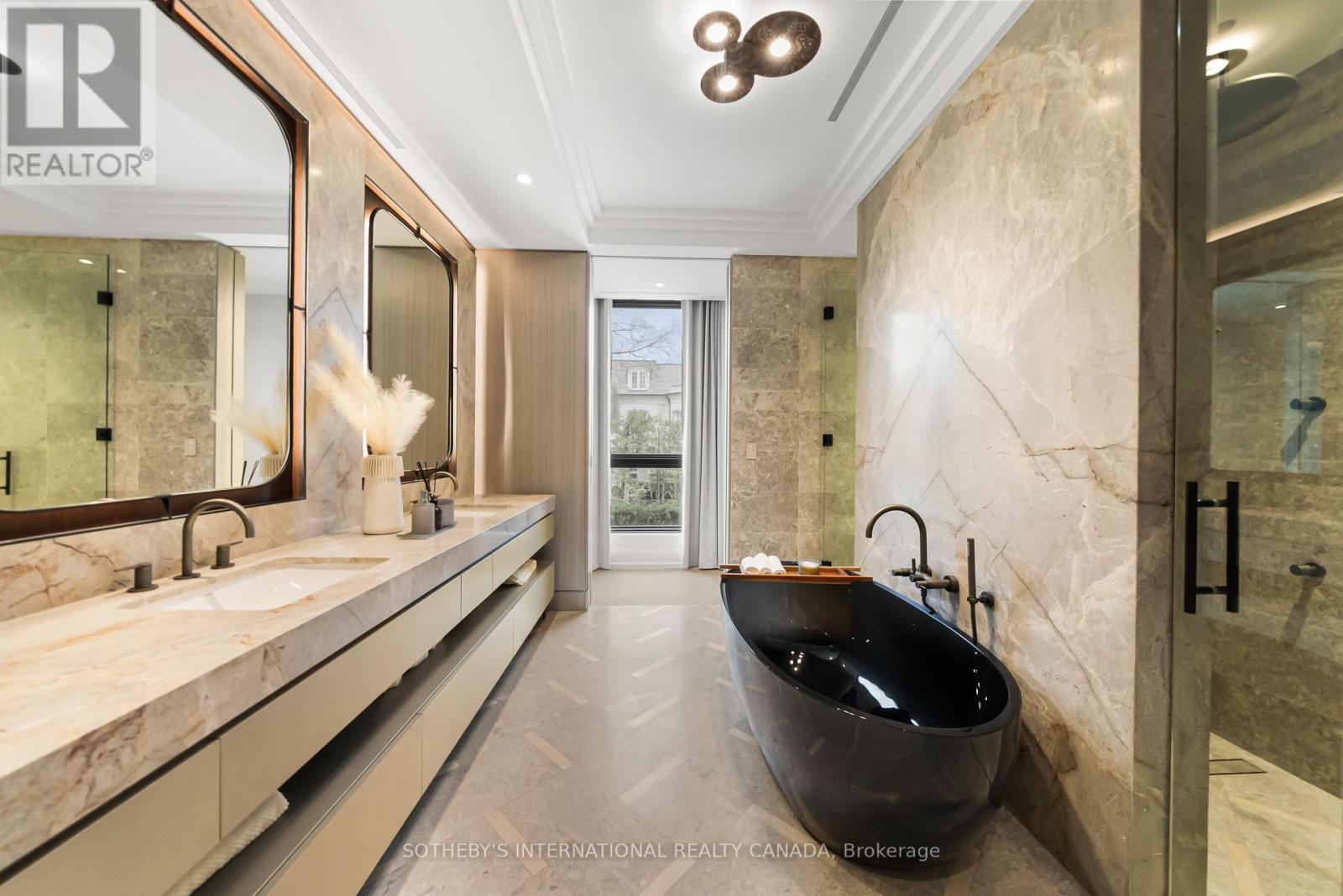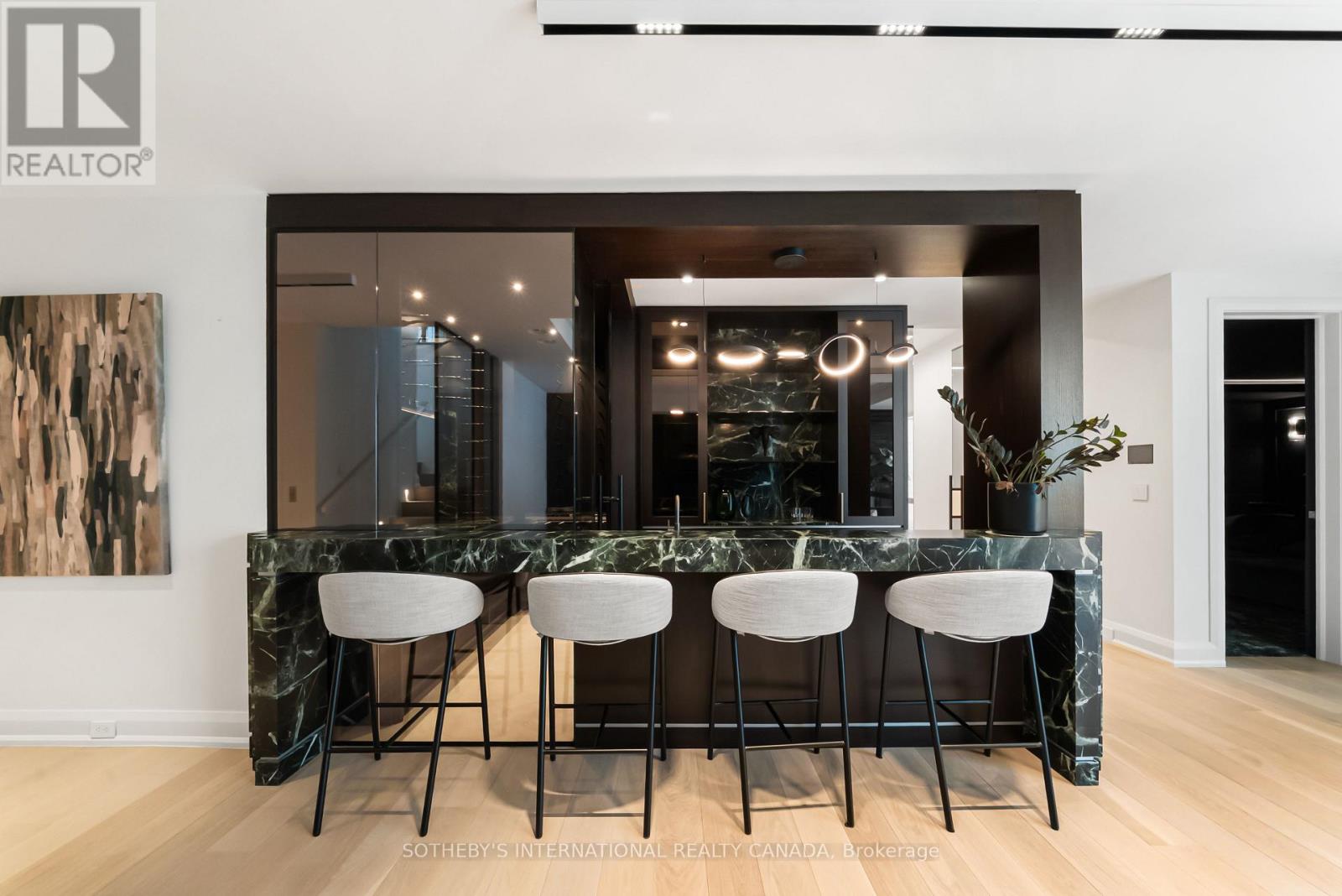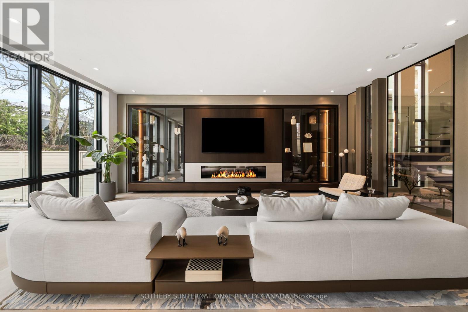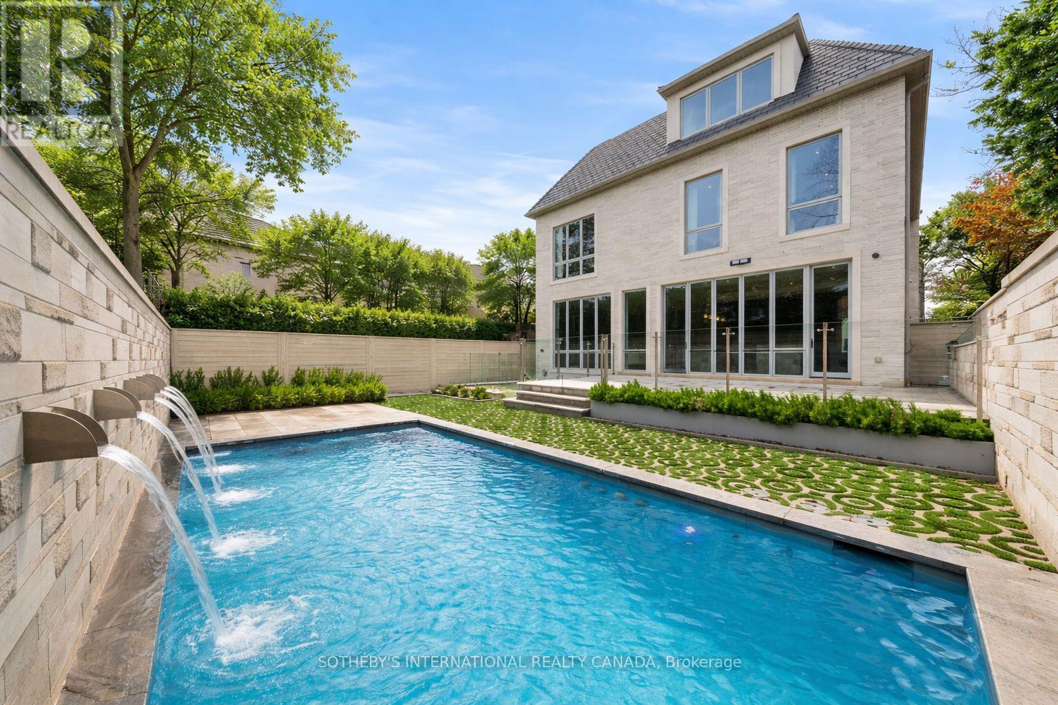 106 Glenayr Rd won 2025 Best Luxury Residential Interior Design Ontario and Luxury Lifestyle Award TOP 100 Interior Designers of the World. Highly acclaimed visionary leader Omid Taba OE Design built this significant residence on most exquisite Billionaire's Row. Arrive with your luggage and relax as if you were moving into a Four Seasons Presidential Suite. The pre-arranged luxury is designed for those seeking high-end comfort and turnkey lifestyle. It checked all the well-loved Forest Hill home amenities: *Elegant stone facades.*Appx 8,750 SF sophisticated interior. *3-storey layout with elevator. *6 Ensuite bedrooms incl enormous dressing suites and precious boudoir. *Sumptuous 14' entryway with a top-notch office. *Multiple Lounge Hubs for family gatherings. *Magazine-worthy chef's kitchen with two marvelous waterfall islands, ample pantry and paneled upscale appliances. *3rd & Lower Flr 2-Laundry. *A consistent rich, luxe tone is achieved through trimless shadow reveals and refined textured treatments on all surfaces. Bespoke emerald palette seamlessly balances warm brass accents, white oak planks, and dramatic marble veins. *Comprehensive home comfort plan incl Control4 automation, smart lighting/sound/security, radiant heated floors, zoned heating/cooling, sustainable wellness-focused building materials, and thoughtful engineering allows high ceiling, airy oasis and open to above flows. *Nine skylights and premium wall-to-wall windows provide excessive natural light, complemented by layered architectural lighting throughout. *Sculptural float staircase with biophilia garden. *Resort-like lower level boasts Club Lounge with VIP Home Cinemas and Gym, Opulent Marble Cocktail Bar with illuminated Wine Cellar, Lower walkout to lighted garden, enormous B/I BBQ patio and heated Betz pool.*Tuckaway Nanny Quarter. *3-car Garage with snowmelt drive & walkways. A true timeless masterpiece offers experiential living tailored for the most discreet luxury connoisseurs. (id:65552)