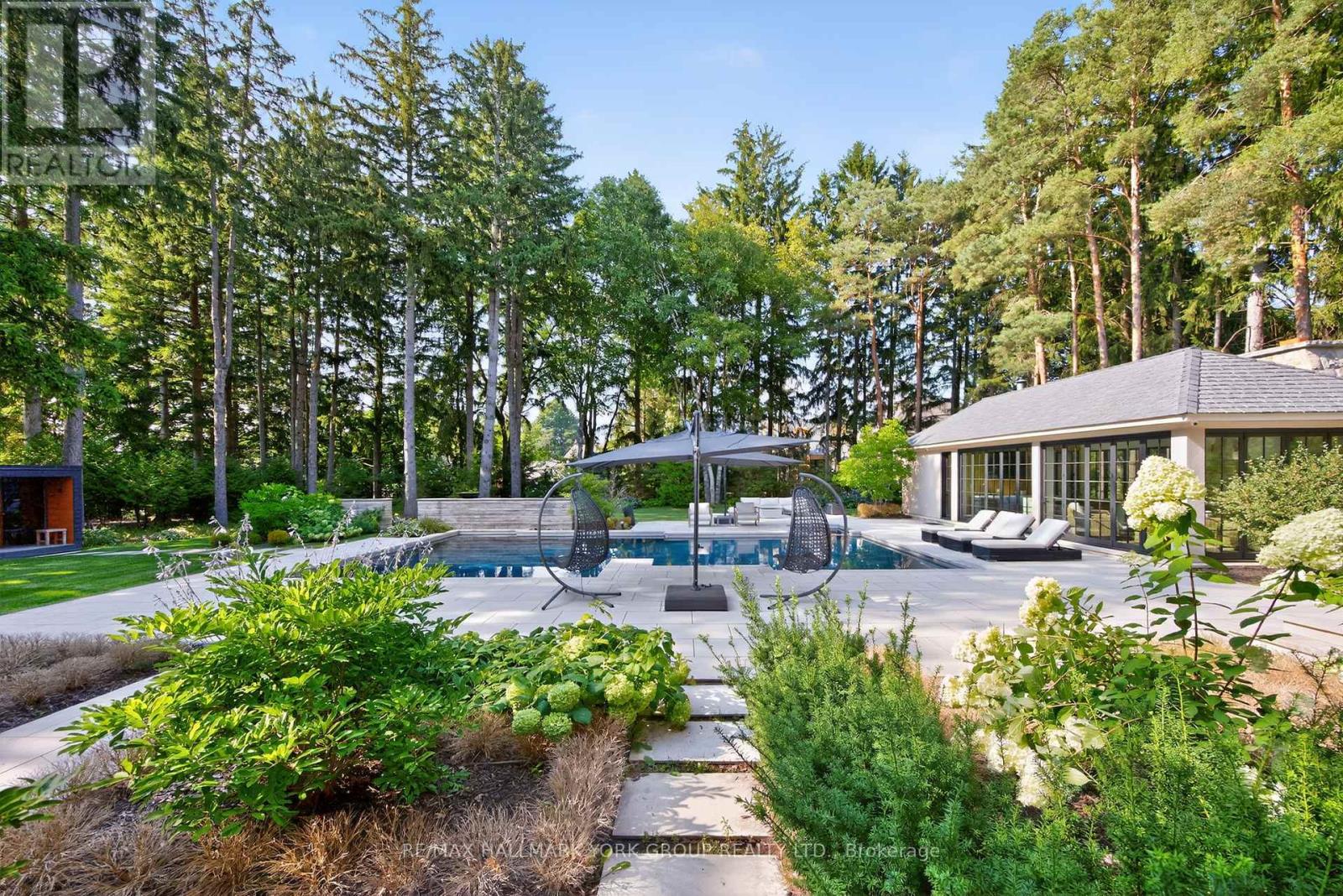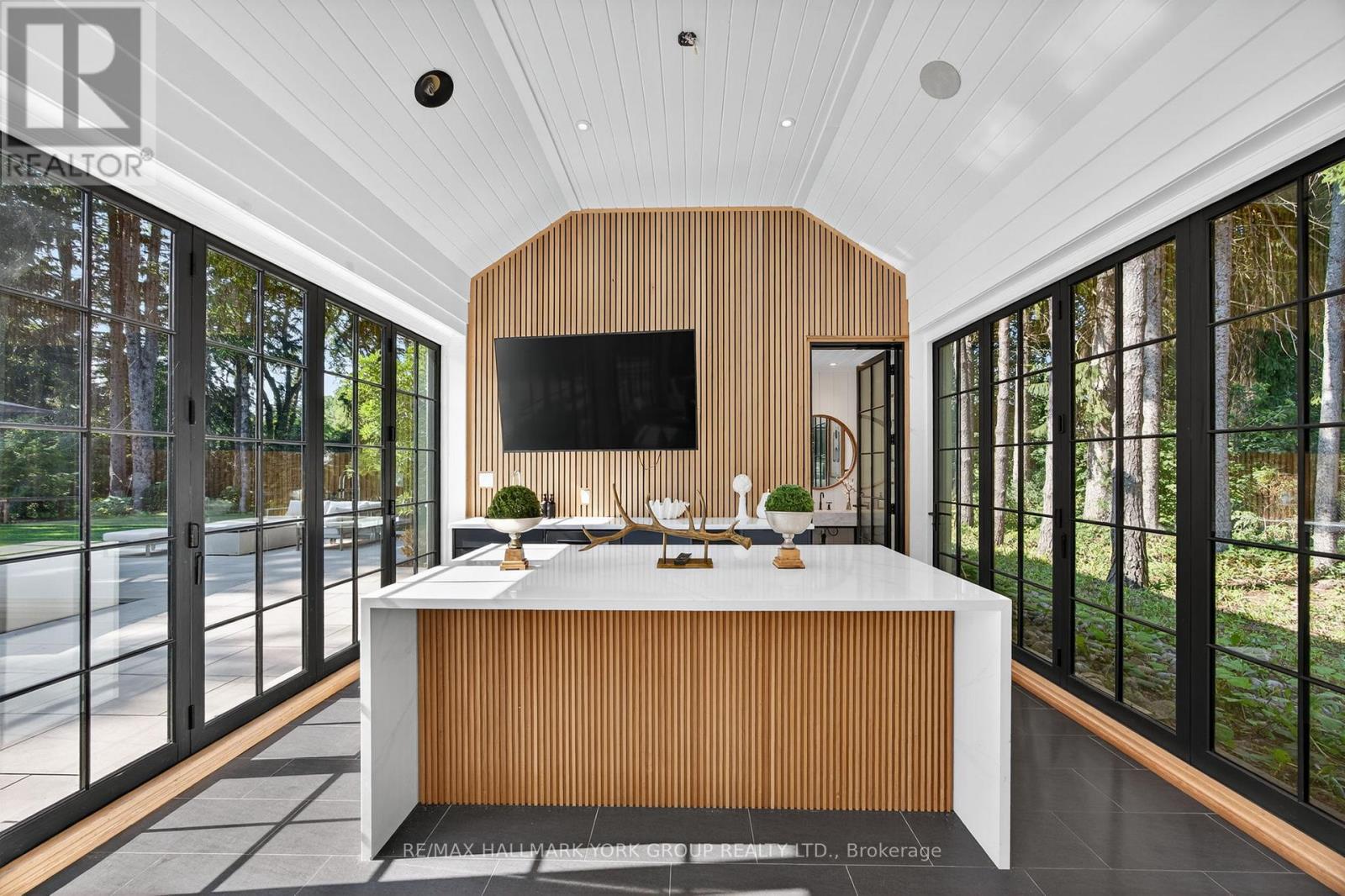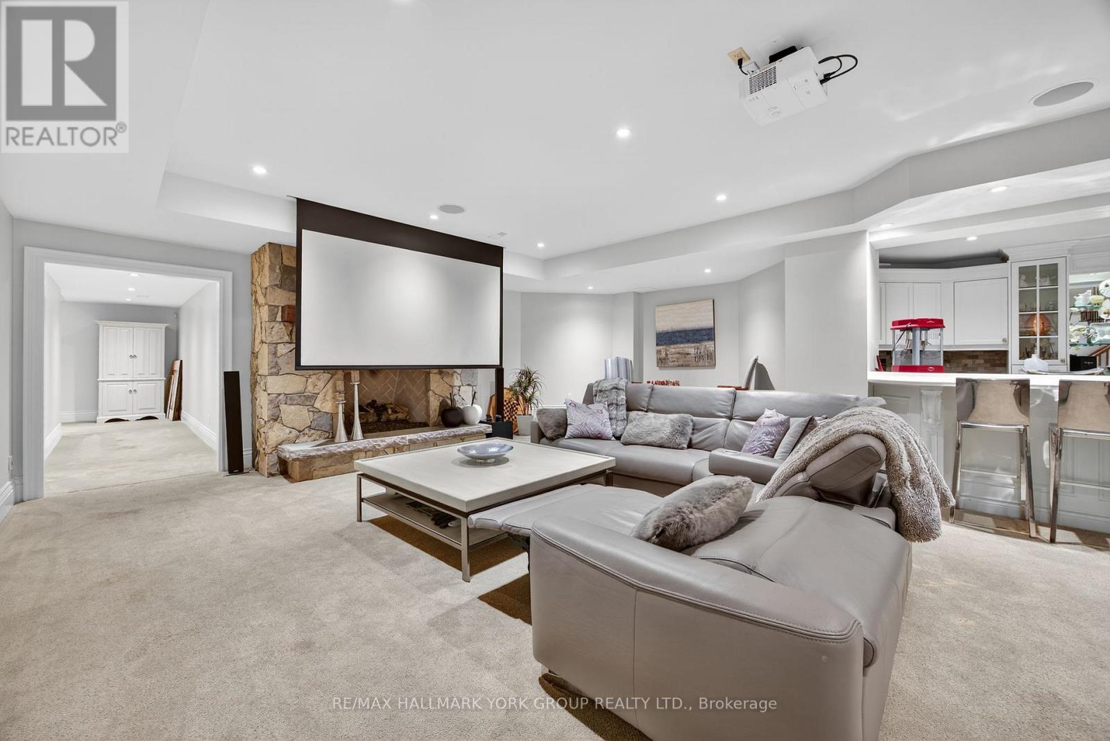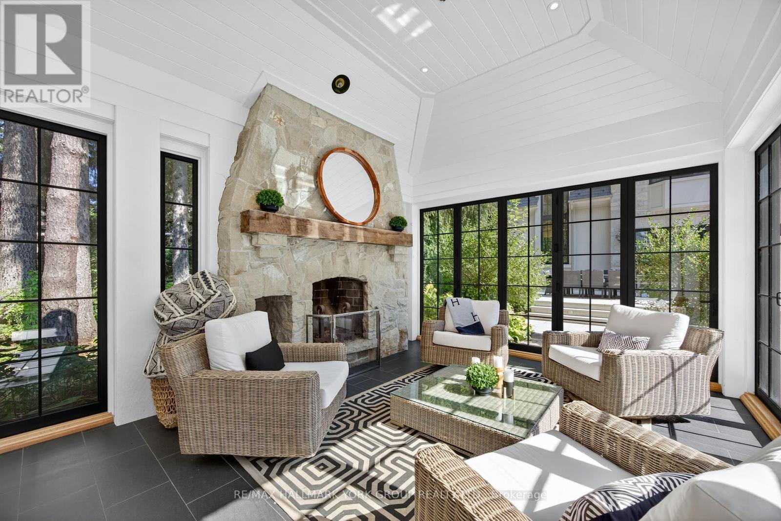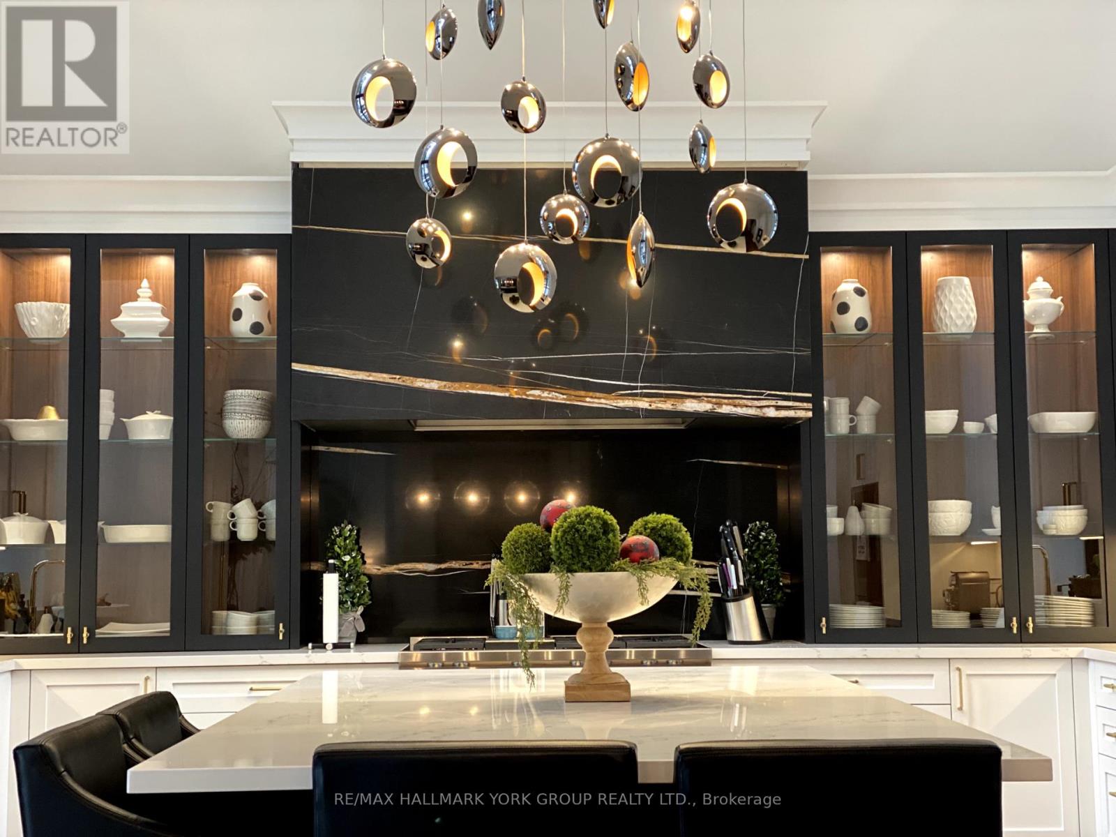 An Iconic Estate on Prestigious Kennedy Street West. Set on 1.18 private acres in the heart of Old Aurora, this one-of-a-kind residence embodies refined elegance and modern glamour. Behind its timeless façade, interiors are curated with a designers eye, wide-plank custom elm hardwoods, exquisite chandeliers, and architectural ceiling heights that flood the home with natural light. At the centre, the show-stopping Cameo Kitchen blends luxury and function with bespoke cabinetry, professional-grade appliances, and statement finishes worthy of a magazine spread. Formal and casual spaces alike are anchored by multiple fireplaces, creating warmth and sophistication throughout. The upper level boasts four bedrooms, highlighted by a lavish primary suite with a custom walk-in dressing room and spa-inspired ensuite retreat. On the lower level, two additional bedrooms, a dramatic stone fireplace, a wet bar designed as a secondary kitchen, and a private gym extend the homes lifestyle experience. Outdoors, the grounds transform into a resort-worthy escape: a glistening pool framed by multiple terraces, a designer outdoor kitchen, a custom designed cabana with retractable doors for seamless indoor-outdoor entertaining, floor to ceiling stone fireplace, 2 pc ensuite, wet bar and a stand-alone sauna that elevates relaxation to art form. A four-car garage with handcrafted wood doors, lead in to from a custom mudroom with walnut floor to ceiling cabinetry, completes this rare offering. This is more than a home, it is a statement of prestige, privacy, and unparalleled design in one of Auroras most coveted enclaves. (id:65552)