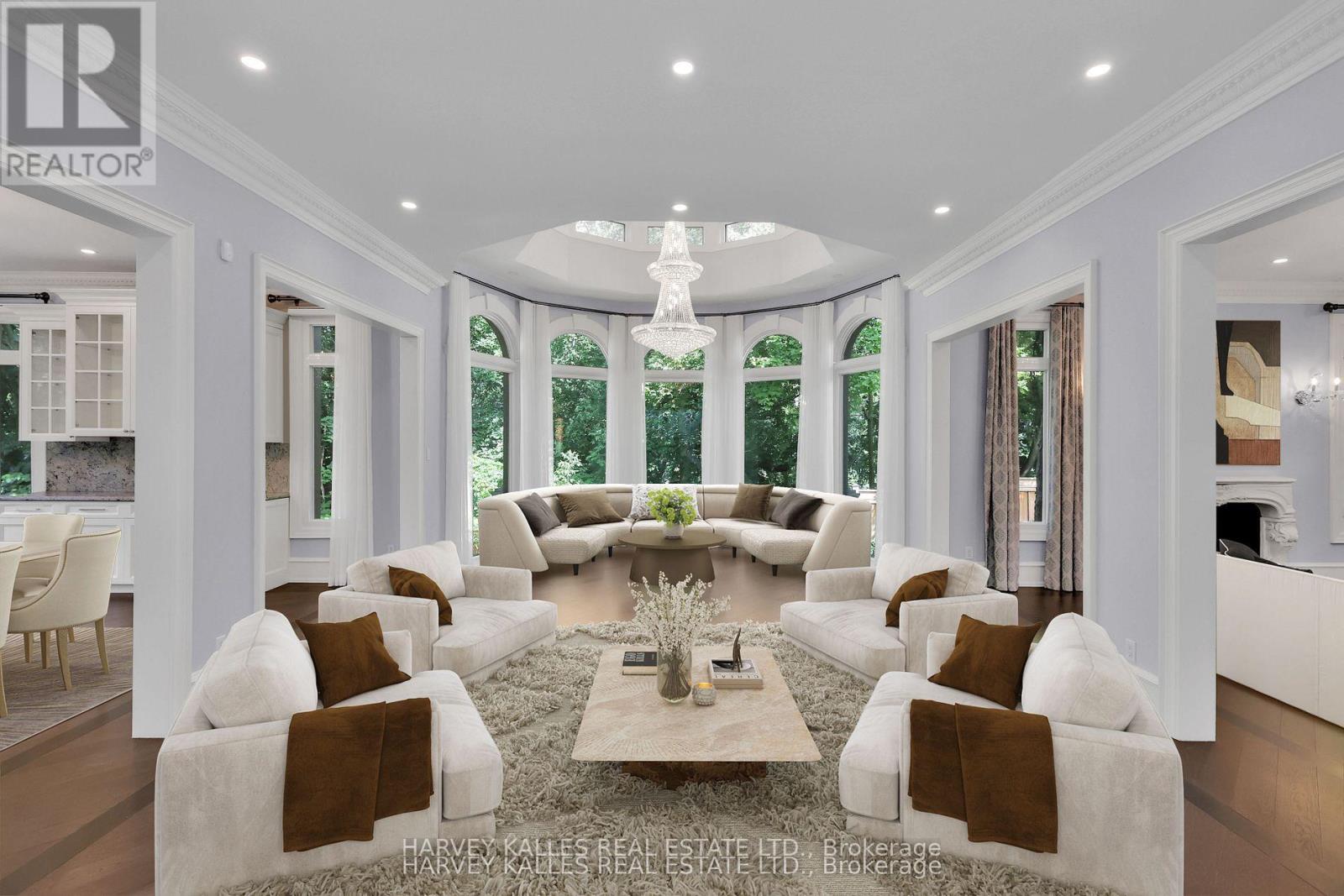 A Unique Offering In The Heart Of Lytton Park. Rarely Does An Opportunity Arise To Own A Residence In This Coveted Location That Also Boasts A Serene, Country-Like Ravine Setting Paired With A Rare Double-Sized Estate Lot Offering Exceptional Frontage And Depth. This Lovingly Cared-For And Thoughtfully Updated Home Welcomes You With A Grand Entrance And Soaring Foyer, Leading Into Expansive Living And Dining Areas Under Dramatic Ceilings, While An Updated Eat-In Kitchen Connects Seamlessly To The Family Room And Private Office With A Separate Servery And Staircase To The Lower Level. The Second Level Features A Spacious Primary Suite With A Luxurious Ensuite And Walk-In Closet, Alongside Three Additional Generously Sized Bedrooms With Ensuites Plus An Office Or Nursery. The Lower Level Provides A Flush Walkout To A Beautifully Landscaped Yard And Includes An Oversized Entertainer's Recreation Room, Gym, Home Theatre, And A Guest Suite With Spa, Along With A Dedicated Storage Room Offering Excellent Flexibility, Easily Converted Into A Custom Wine Cellar Or Tailored To Suit Your Needs. An Oversized Integrated Garage Spanning Approximately 810 Square Feet Accommodates Two SUVs With Ease And Features Epoxy Flooring. Outdoors, A Professionally Landscaped, Park-Like Oasis Awaits With An Inground Pool, Playground, Outdoor Deck With Gas BBQ, And A Gated Heated Driveway Ensuring Privacy. Offering Over 8,500 Square Feet Of Total Living Space And Exceptional Storage Space Throughout, This Residence Combines Scale, Function, And A Truly Unmatched Setting, Just Moments To John Ross Robertson, LPCI, Lush Parks, Shops, Restaurants, And More. Truly, This Is A Home Not To Be Missed.