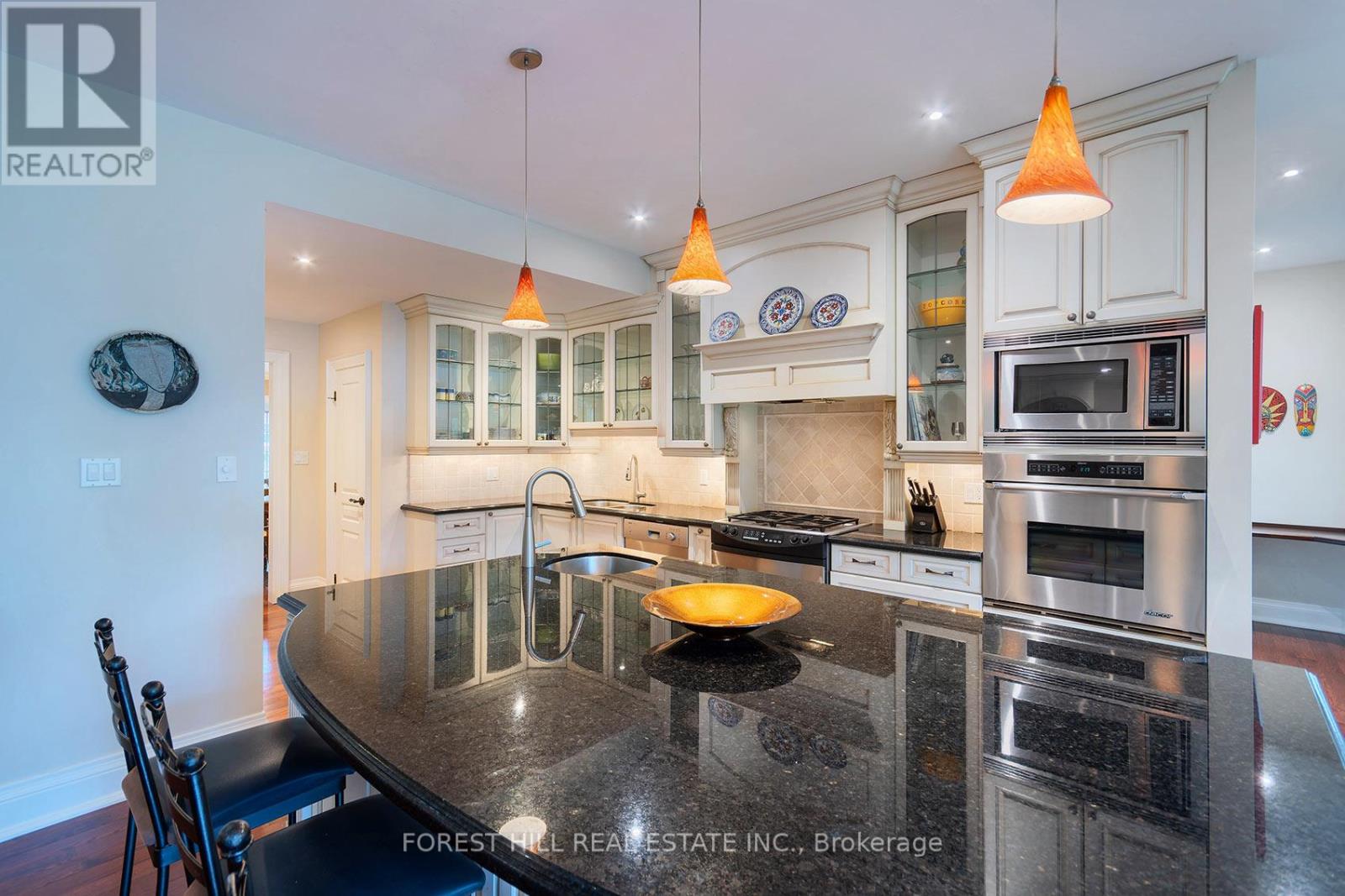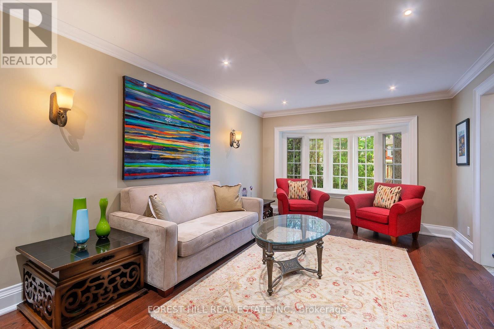 Prime Lower Forest Hill South location on a generous 50 x 130 ft west facing lot. This elegant centre hall home offers 4 +1 bedrooms and an exceptional layout for family living and entertaining. The expansive open-concept kitchen and family room serves as the heart of the home, complete with a large island with additional sink, pantry, and a walk-out to a beautifully treed, private backyard. A built-in desk adjacent to the eat-in kitchen provides the perfect space for an additional work space or children's homework area, all overlooking the garden. Formal large living and dining rooms with bay windows add timeless charm, while a stylish bar with glass cabinets and a built-in bar fridge enhances the home's entertaining appeal. Rich hardwood floors run throughout the main level. In addition to the Primary retreat, the second floor features three spacious bedrooms, each with large closets, including one with its own ensuite. The primary suite boasts a bay window overlooking the backyard, a large walk-in closet, and a luxurious 6-piece ensuite. A generous second-floor office offers additional flexible living/work space. The fully finished basement includes a huge recreation room, media room, Spacious Nanny's bedroom, and ample storage. A built-in garage with direct access to the home adds everyday convenience. Ideally located just minutes to Forest Hill Village and the shops of Eglinton West, and within reach of top schools including UCC, BSS, Robbins Hebrew Academy, and the Forest Hill school district. This is an elegant home on one of ForestHill's few cobblestone streets adding extra charm and value, not to be missed!