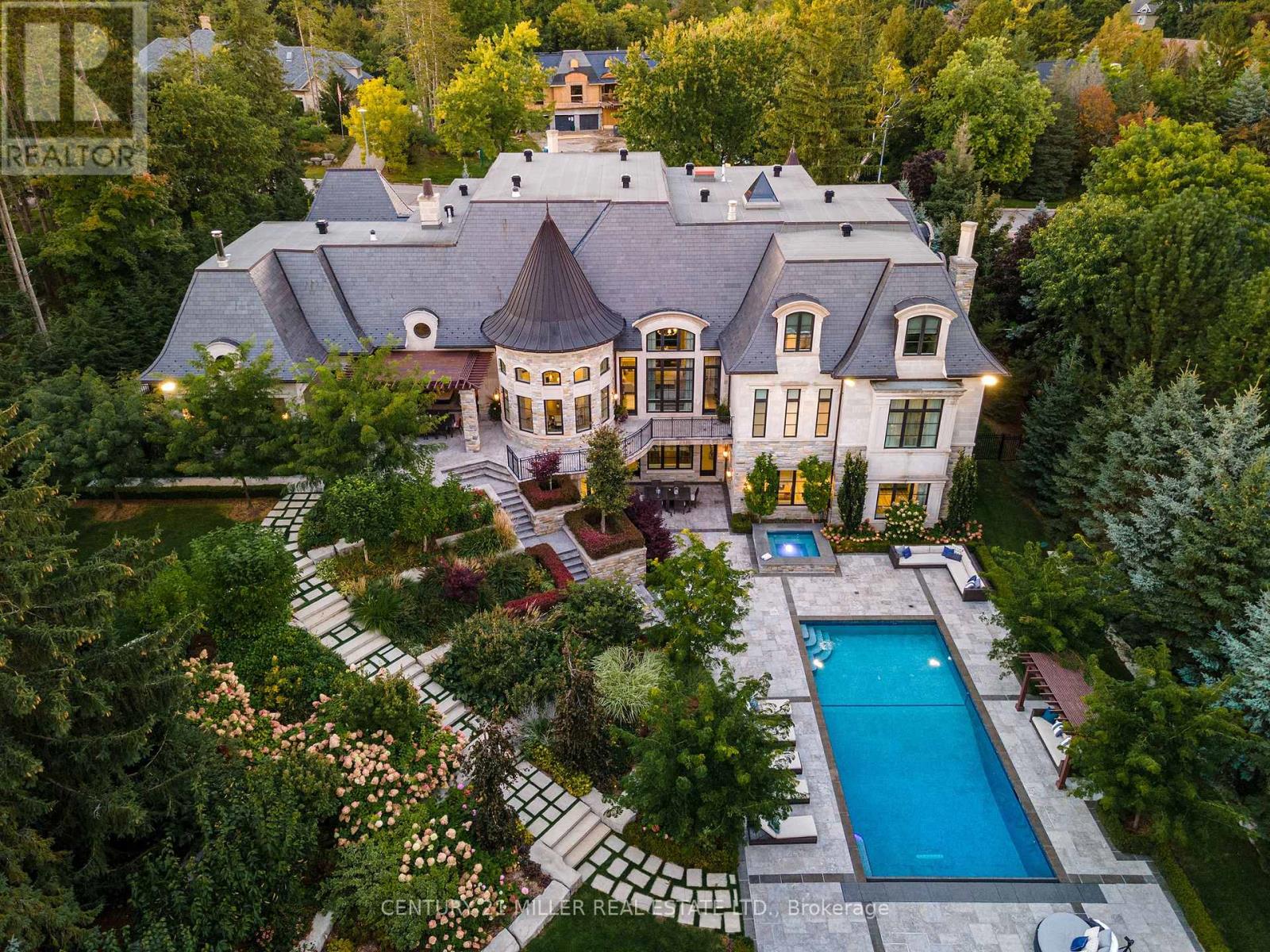 Exquisite French Parsian Home in coveted Woodland Acres. Architect Frank Falcone and Designer Robin Nadel. Over 1 acre of private grounds with pristine manicured gardens, pool and outdoor entertaining spaces. Made with Indiana limestone, natural slate roofing, natural stone, granite and copper detailing. Over 13,000 sq ft of total living space with refined craftsmanship, finest luxury finishes and no detail overlooked throughout this incredible property. Cathedral great room, gourmet kitchen by Bellini Kitchens with Rotunda breakfast area. Extensive millwork, vaulted ceilings and wall panelling throughout. Mahogany wine cellar with capacity of over 500 bottles, elevator, gym, theatre, wet bar, outdoor kitchen, stone fireplace with pizza oven. Separate one bedroom apartment above garage. 4 car garage and 12 parking spots. (id:65552)