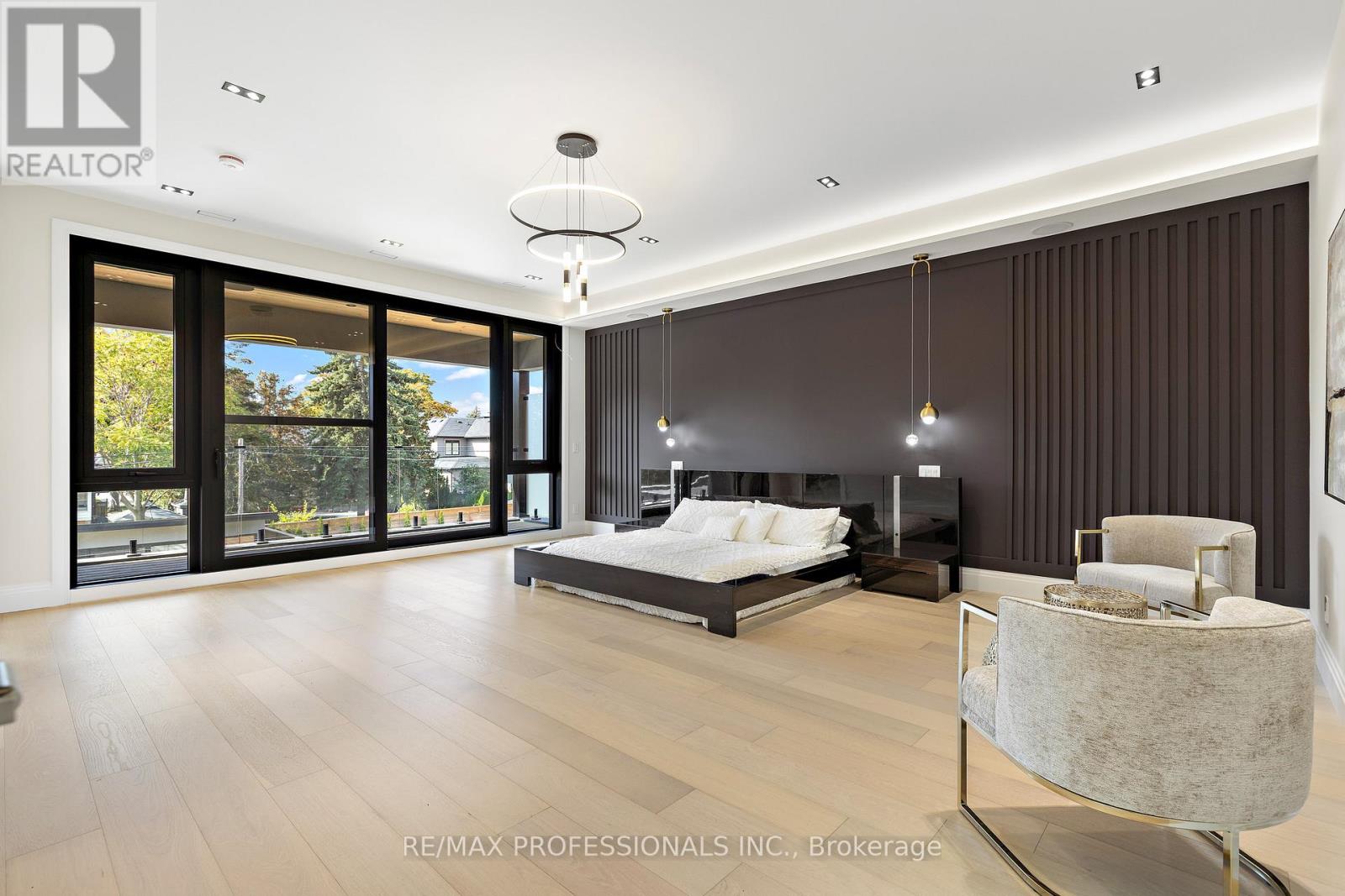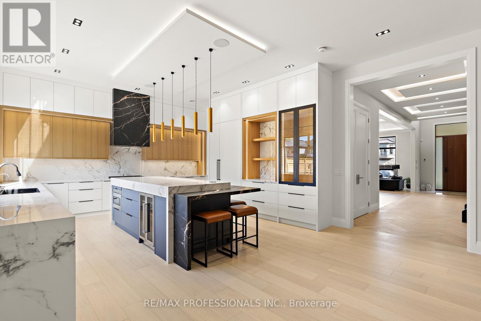 Step inside this breathtaking 5000+ sqft residence, where every detail embodies sophistication and comfort. The grand foyer welcomes you with soaring ceilings, leading to expansive living areas featuring custom millwork & designer notes from hardwood floors to ceilings. Experience culinary excellence in the gourmet kitchen, beautifully appointed with modern cabinetry, Italian porcelain countertops & premium Miele appliances. The adjacent full prep kitchen with a secondary range hood, cooktop & dishwasher ensures that your main kitchen remains flawless for your guests while you cook up a storm. Retreat to 1 of 2 private primary suites, complete with a spa-inspired ensuite, deep soaking tub, and bespoke walk-in closets. Entertain effortlessly in the lower level complete with home theatre built-in speakers, custom wine/cigar fridges, walk out to lower courtyard all finished in impeccable style. Glass walls open to a backyard with resort quality amenities featuring a generous size pool, landscape lighting, outdoor hot water shower, stone & granite bar & a glass enclosed cabana, offering the perfect blend of serenity and grandeur. From smart home automation to the private study to a seamless transit of indoor & outdoor space, every corner of this residence is curated for refined living. To explore the rest of this unparalleled lifestyle you simply need to call your agent and book an appointment.