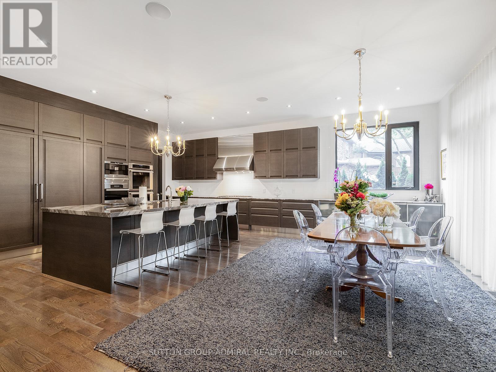 Extraordinary custom-built residence - 5000 Sq Ft + Finished Bsmt! Designed by renowned architect Lorne Rose, located on Toronto's highly sought-after Sandringham Drive. Showcasing timeless Indiana limestone and brick architecture, this exceptional home blends refined craftsmanship, elegant design, and modern smart-home technology. Thoughtfully designed for both luxurious everyday living and sophisticated entertaining, the residence offers beautifully curated interiors, expansive living spaces, and a private outdoor retreat in one of Toronto's most prestigious communities. Property Highlights. Architecture & Design. Impeccably finished interior with exceptional craftsmanship throughout Kitchen & Main Living Spaces. Custom Italian-made gourmet kitchen. Spacious breakfast area ideal for everyday family living. Dramatic book-matched quartzite centre island. Large walk-in pantry for excellent storage. Elegant living room and formal dining room for entertaining. Warm and inviting family room. Private main floor office / library. Architectural Features: Elegant sweeping oak staircase, Dramatic soaring skylight filling the home with natural light. Spacious primary bedroom retreat with vaulted ceiling and heated bathroom floor. Large dressing room / walk-in closet. Main Floor Grand foyer with large European tile and heated floors. Private office / study. Powder room. Living room with integrated Control4 surround sound speakers. Dining room with custom light fixture. Basement features: Luxurious home theaters, gym, 2 bathroom, 2 bedrooms and heated floor. (id:65552)