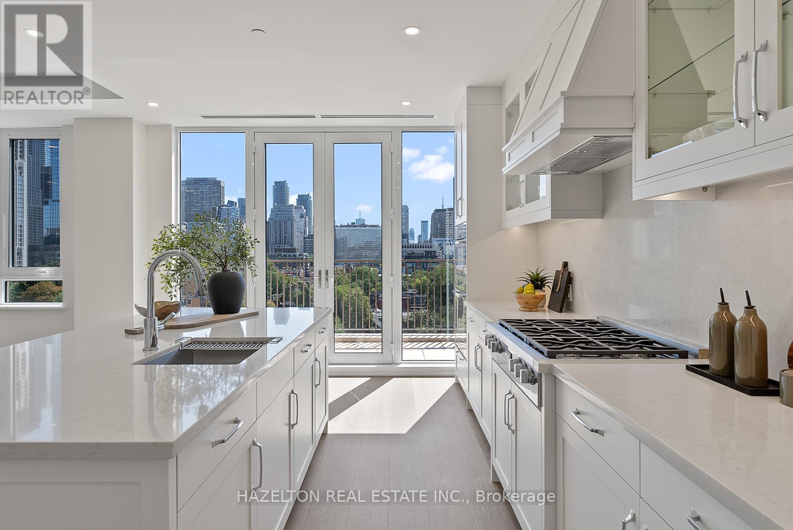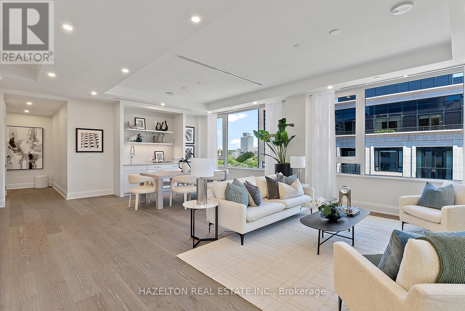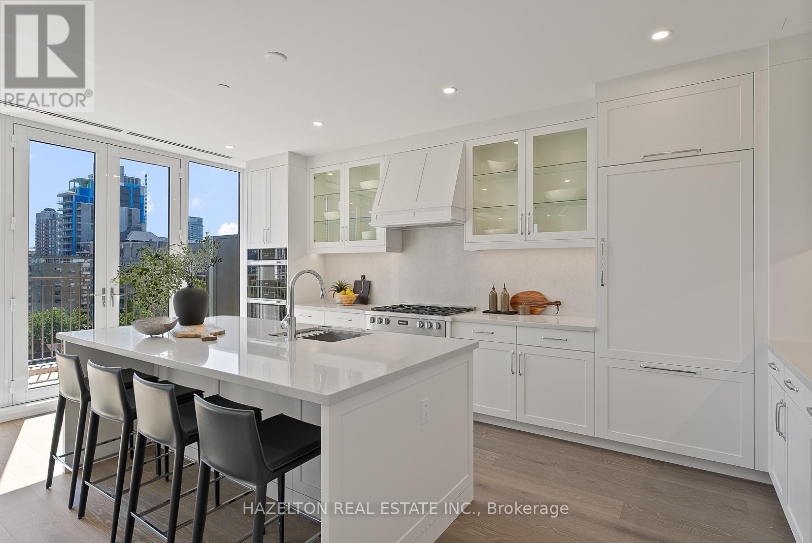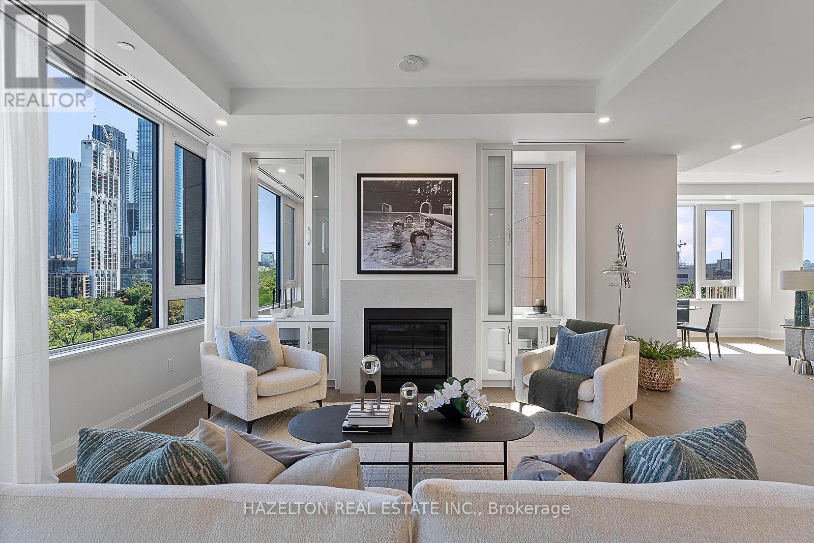 This incredibly spacious and bright three-bedroom residence is in the brand-new boutique building at 128 Hazelton. Wrapping around the south, east and north sides of the building, this suite occupies approximately half a floor, offering divine light and breathtaking views. With tall 10-foot ceilings and an abundance of windows, the space is bathed in natural sunlight. The generously sized south-facing balcony provides a perfect spot to soak in the sun and enjoy the scenic treetop views over the city. Open living and dining rooms are expansive and inviting, featuring a wet bar for entertaining and a romantic gas fireplace that adds warmth and charm. The kitchen, breakfast room, and family room, combined into an open space on the south side are designed for casual dining and relaxation, creating a cozy atmosphere for curling up with a good movie or enjoying a leisurely breakfast. The three bedrooms, each with its own ensuite bathroom, are thoughtfully positioned on the north side of the building. This layout ensures privacy and quiet enjoyment, with entertaining space in one wing and bedrooms in another wing, making it an ideal retreat to call home. 2865 sq ft plus a south facing balcony . (id:65552)
