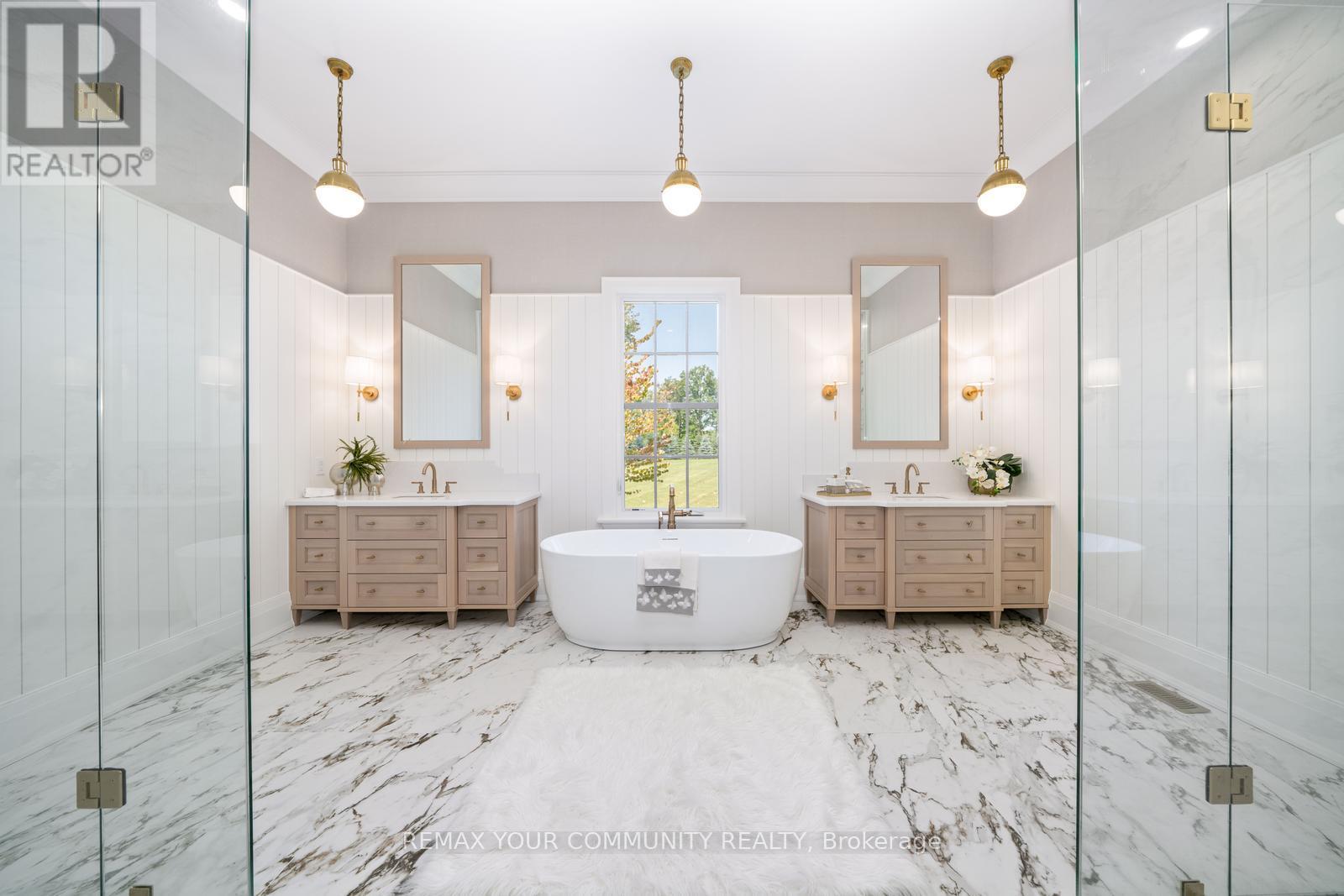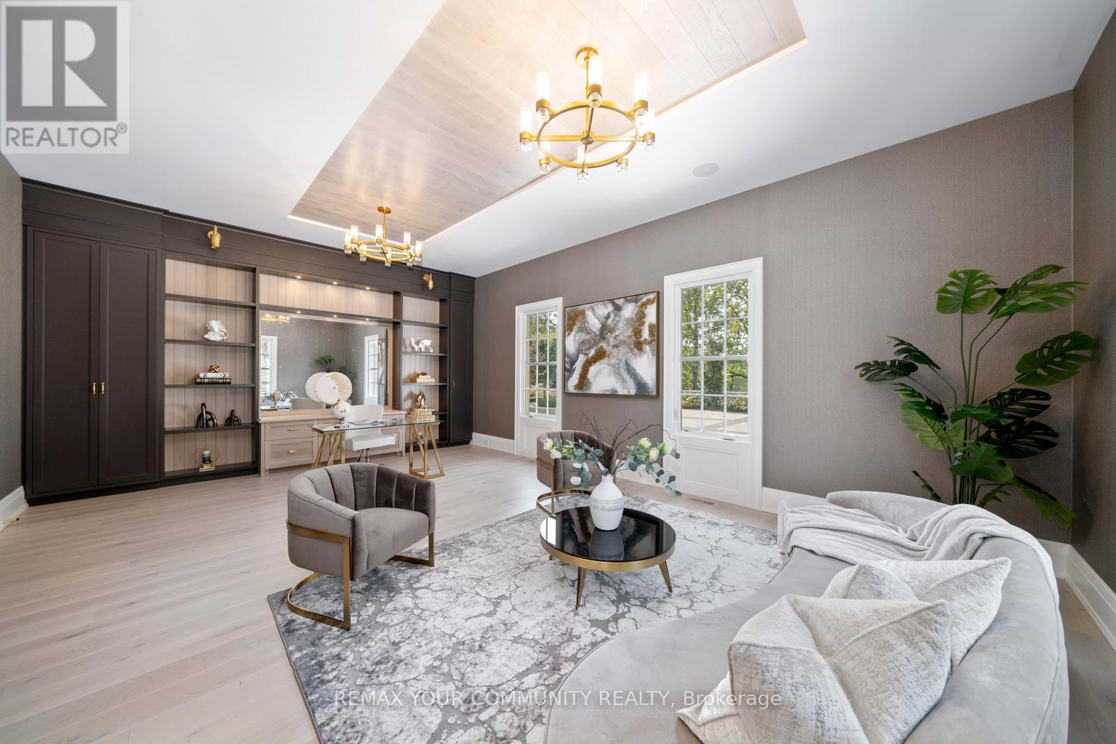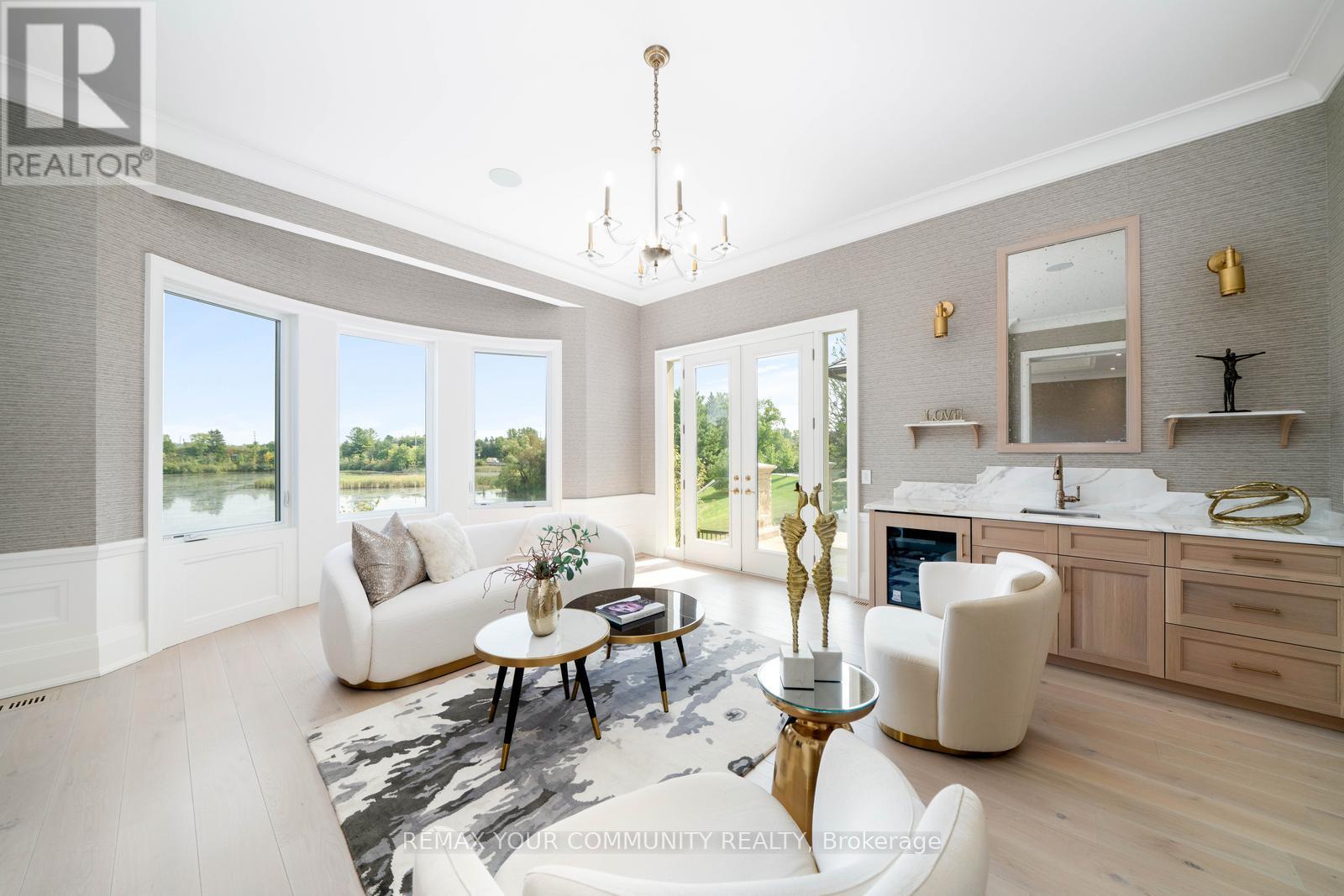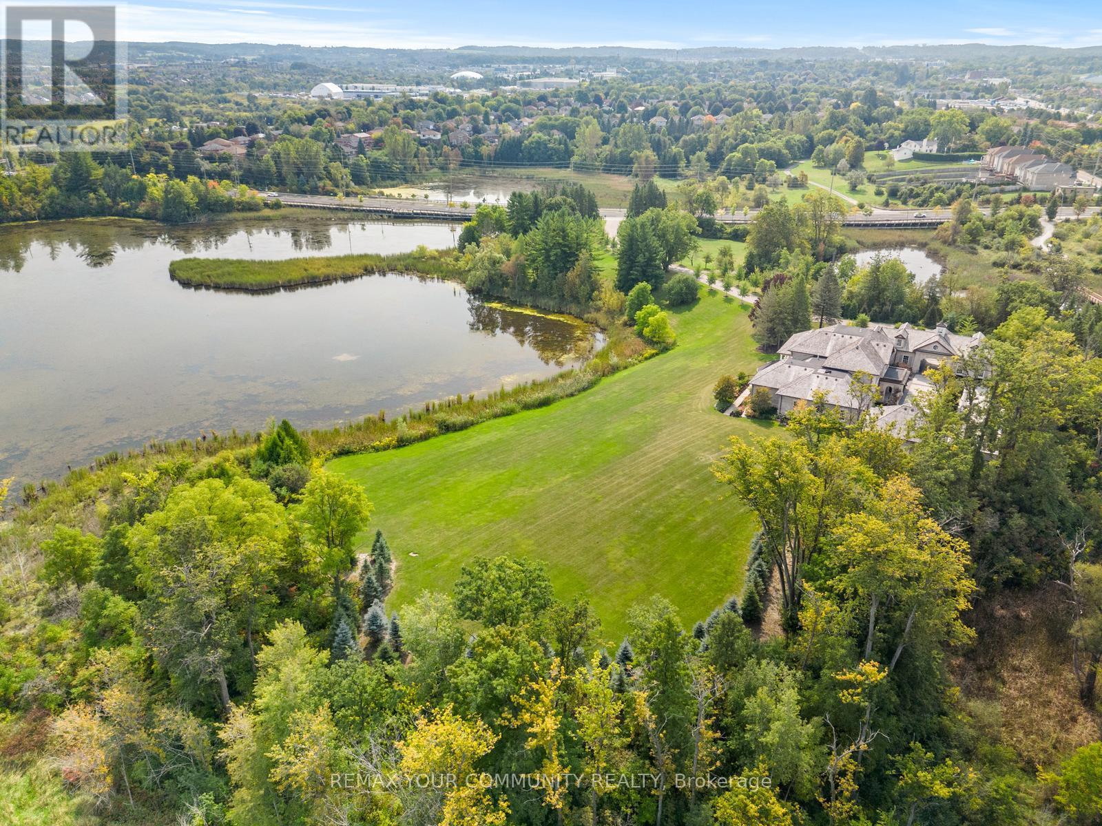 The Sanctuary! Spectacular family compound and entertainers estate on 35+ acres with private 15-acre spring-fed pond. Gated entrance, winding drive, circular motor court, and porte-cochere create an impressive welcome. Over 13,000 square feet of meticulously crafted living space with the finest materials and exceptional attention to detail. Main floor principal suite features grand entrance, his & hers dressing rooms, private office, and bar. Gourmet kitchen with top-of-the-line appliances, large windows, and terrace/pond views. Great room with marble fireplace and walk-out to terrace. Dining room with glass-encased wine storage and courtyard view. All bedrooms with ensuites' and walk-in closets. Finished walk-out basement with in-law suite potential. Hard surface floors throughout. 7-car garage, 27 parking spaces. Fully landscaped, magnificent water views, and the privacy. Walking distance to St. Andrews College & St. Anne's School. Close to Aurora Village amenities. A rare offering in a prestigious location! (id:65552)