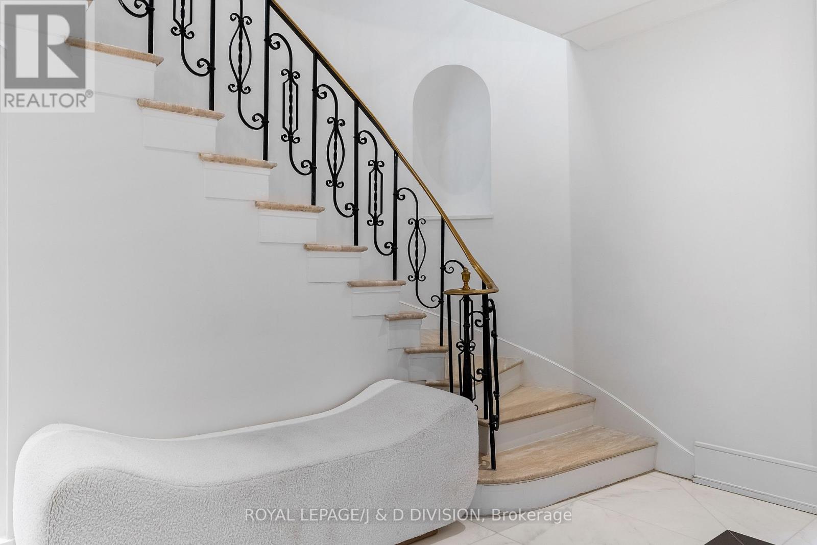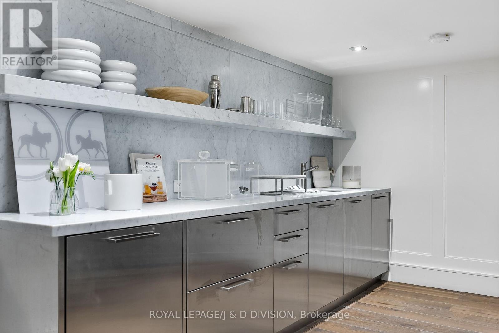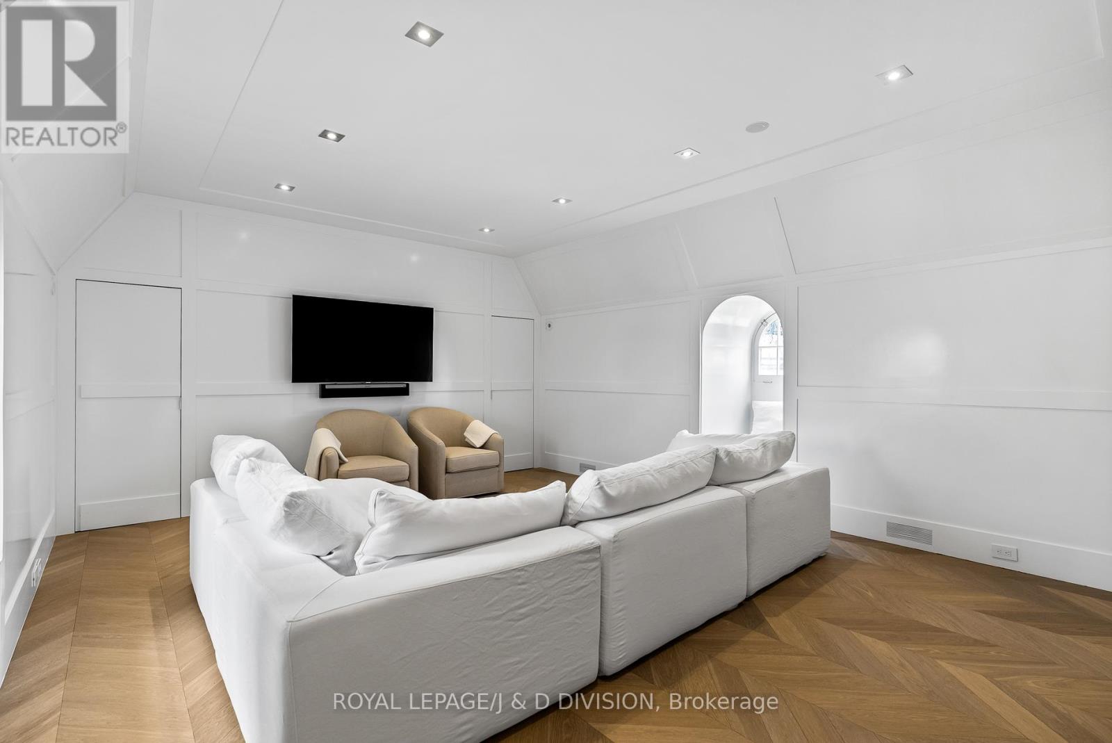 One of the most epic Georgians in the city. Completely and elegantly renovated; seamlessly marrying character and fine contemporary finishes with over 6500 sq ft of living space. A custom Downsview kitchen features stunning floor to ceiling cabinetry, Staturietto marble, and Wolf and Miele appliances. Exceptional millwork and craftsmanship blend with European white oak flooring and under floor heating. Outstanding marble foyer with elegant staircase leads to large light filled rooms with modern curated fixtures. Fresh, relevant design flows through all spaces, including a primary suite with two expansive dressing rooms and ensuite spa-like bath. Every bedroom is similarly appointed with custom cabinetry and classic marble. Chic and sophisticated lower level with Downsview stainless steel bar and every essential appliance - perfect for effortless entertaining. Cool, crisp, lower level bathroom includes a wet steam room and spa shower. Additional living spaces are a fourth floor movie room complete with surround sound. An oversized lot surrounded by mature trees offers a private sanctuary in the center of the city. A gated two car garage allows for added security. There is no more perfect location in the city, steps to UCC, blocks from BSS, a short drive to Bloor St and under 30 minutes to the airport. This prestigious Georgian, renovated to perfection, offers luxury and brilliant design in the center of the city. (id:65552)
