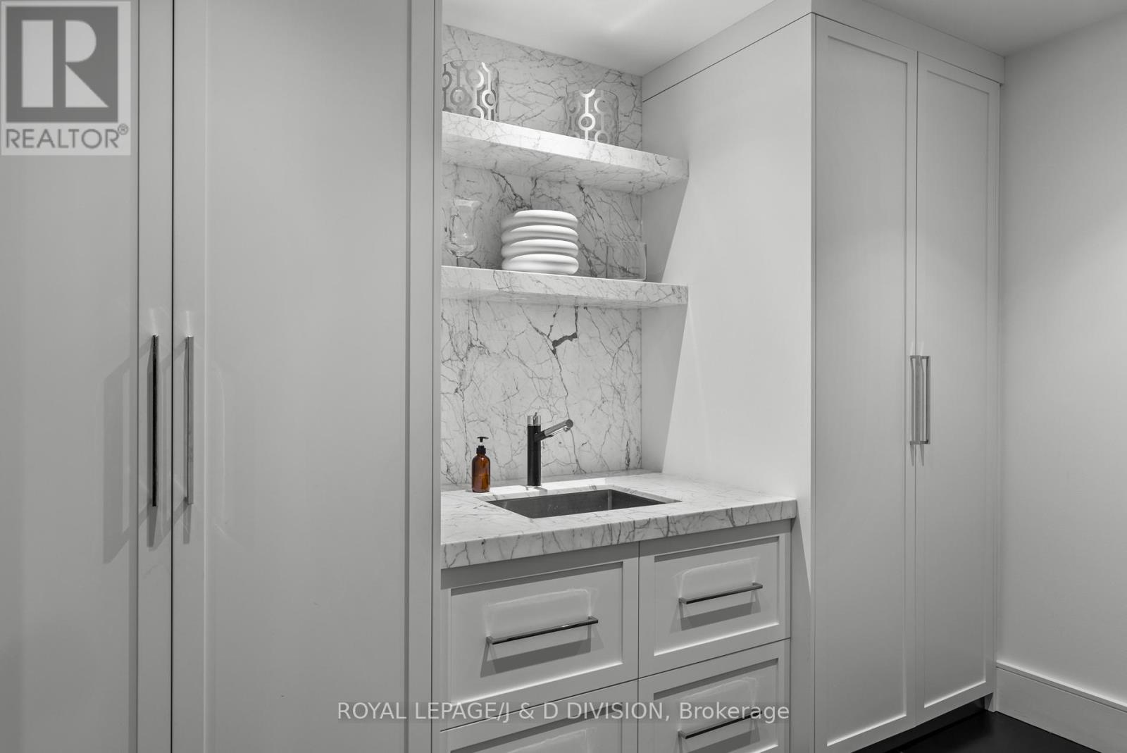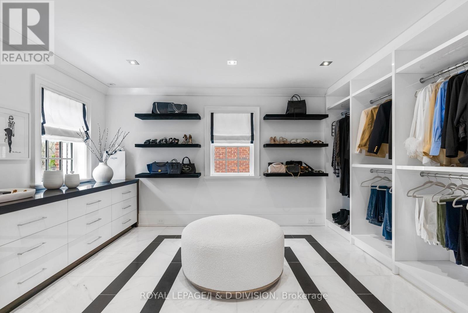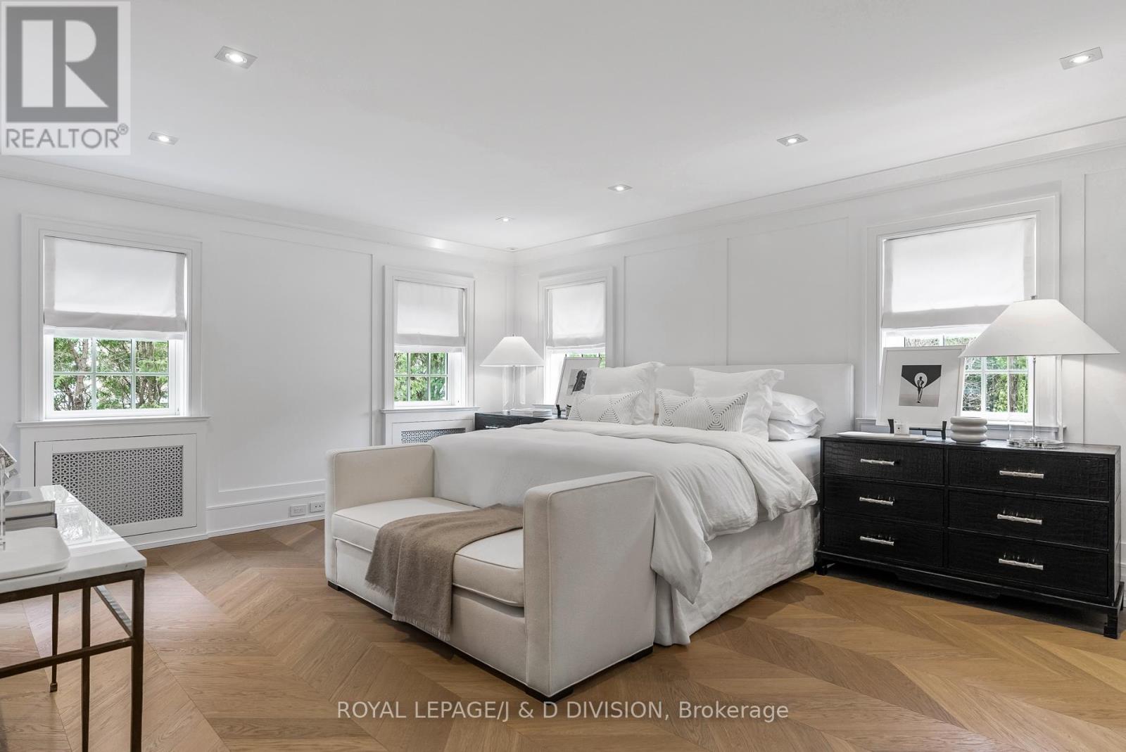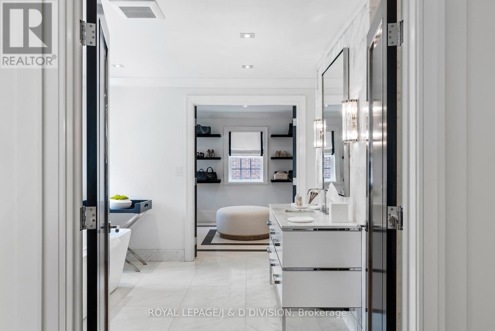 One of the most epic Georgians in the city. Completely and elegantly renovated; seamlessly marrying character and fine contemporary finishes with over 6500 sq ft of living space. A custom Downsview kitchen features stunning floor to ceiling cabinetry, Staturietto marble, and Wolf and Miele appliances. Exceptional millwork and craftsmanship blend with European white oak flooring and under floor heating. Outstanding marble foyer with elegant staircase leads to large light filled rooms with modern curated fixtures. Fresh, relevant design flows through all spaces, including a primary suite with two expansive dressing rooms and ensuite spa-like bath. Every bedroom is similarly appointed with custom cabinetry and classic marble. Chic and sophisticated lower level with Downsview stainless steel bar and every essential appliance - perfect for effortless entertaining. Cool, crisp, lower level bathroom includes a wet steam room and spa shower. Additional living spaces are a fourth floor movie room complete with surround sound. An oversized lot surrounded by mature trees offers a private sanctuary in the center of the city. A gated two car garage allows for added security. There is no more perfect location in the city, steps to UCC, blocks from BSS, a short drive to Bloor St and under 30 minutes to the airport. This prestigious Georgian, renovated to perfection, offers luxury and brilliant design in the center of the city. (id:65552)