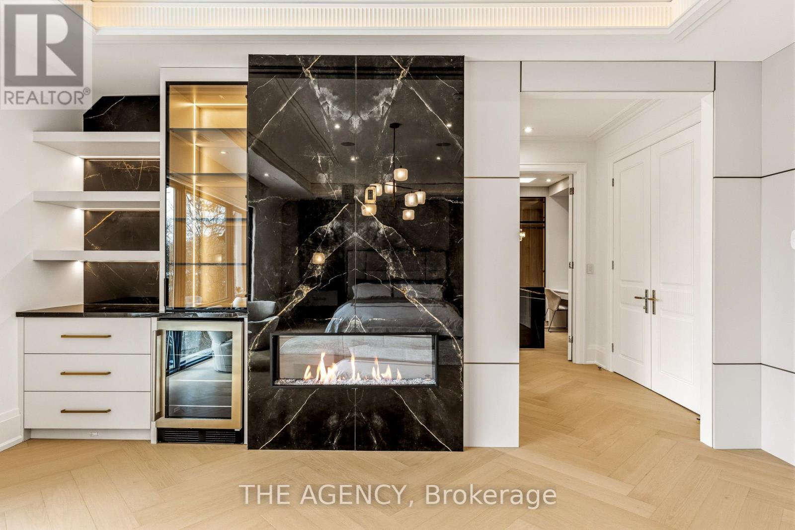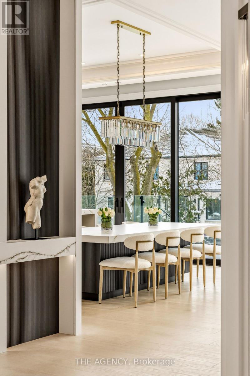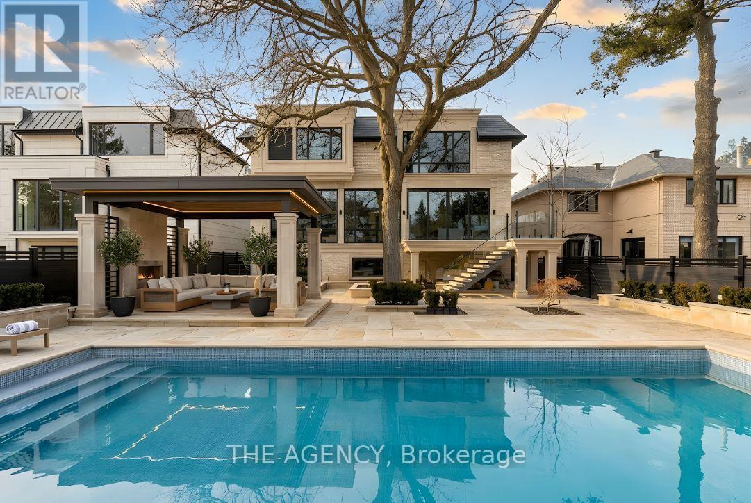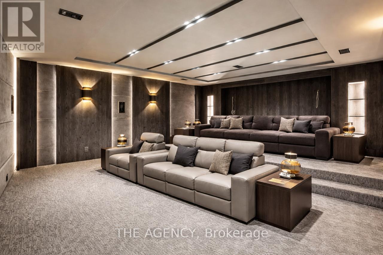 Truly A Must See Home!Welcome to 149 Highland Crescent, a true statement of luxury in the heart of the prestigious Bridle Path. Situated on one of the area's most coveted streets, this brand-new custom residence blends refined design, exceptional craftsmanship, and timeless elegance.Offering approximately 7,500 sq. ft. of thoughtfully curated living space, the home makes a striking first impression with its elegant façade, heated driveway, and heated front porch. Inside, exquisite millwork and designer finishes elevate every room, complemented by elegant fireplaces with 14K gold-vein accents.Designed for both entertaining and everyday living, the main level features a spectacular double-island kitchen by Luxeme, complete with Miele appliances, a Wolf cooktop, and a walk-in pantry, seamlessly open to a bright and expansive family room. A stunning library office with 15-foot ceilings and a dramatic second foyer with 23-foot ceilings, grand staircase, and skylight add architectural distinction.Fully integrated with Lutron automation, the home offers seamless control of lighting and ambiance throughout. The private backyard is a true retreat, showcasing an oversized saltwater pool, gazebo lounge, and beautifully landscaped grounds.Upstairs, five spacious bedrooms provide ideal family living. The primary suite offers a serene escape with custom millwork and a refined makeup area. A private four-stop elevator ensures effortless access to all levels.The lower level is designed for ultimate lifestyle and entertainment, featuring a recreation area, minibar, glass-enclosed gym, home theatre, and nanny suite. A rare offering, this residence defines elevated living in one of Toronto's most exclusive neighbourhoods. (id:65552)