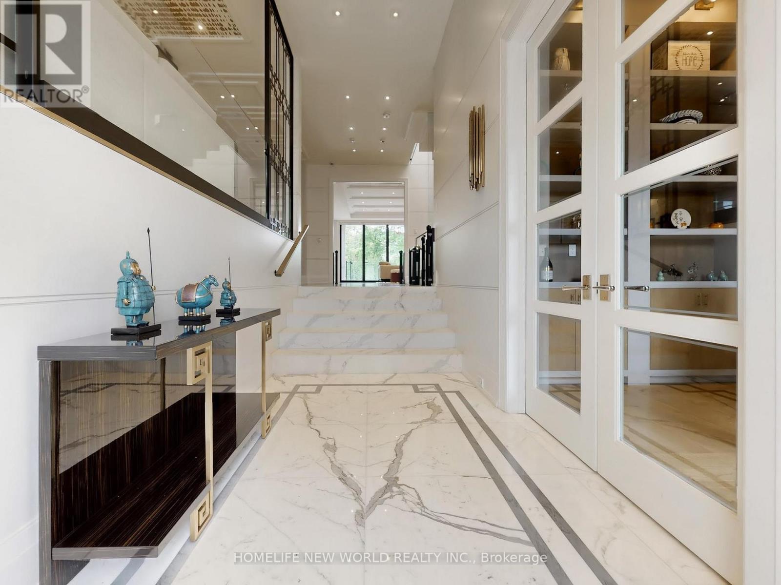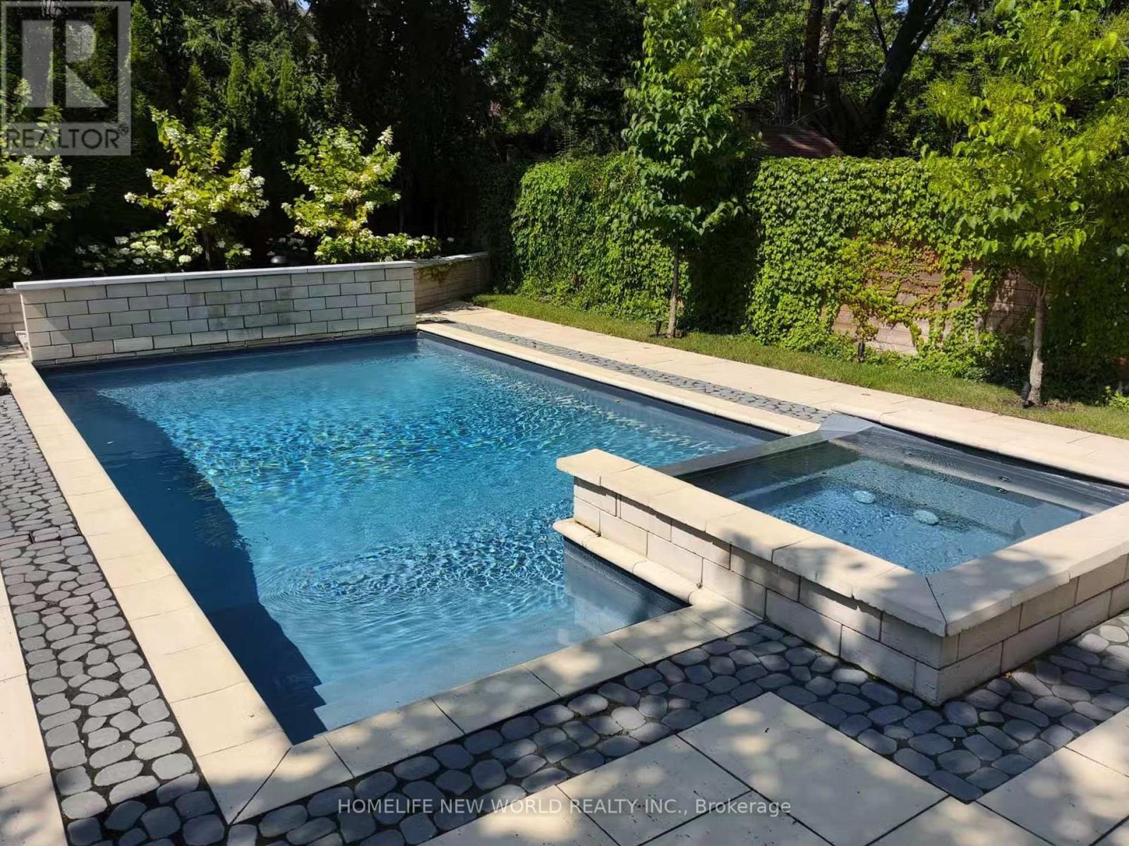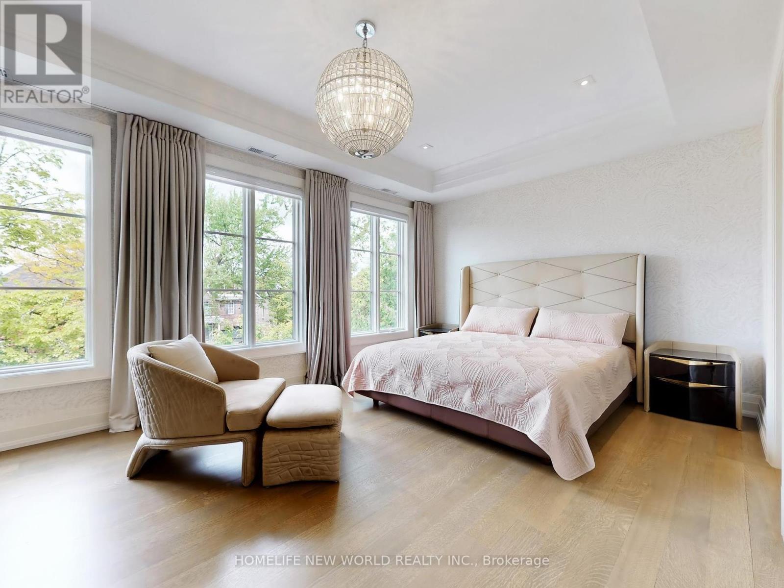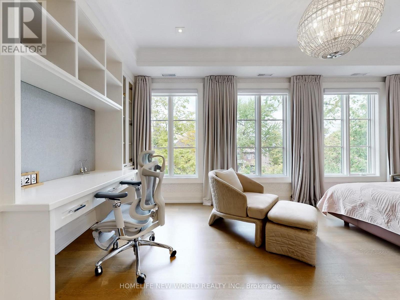 Welcome to 154 Yonge Blvd, a rare opportunity to own a custom-built luxury home! This residence offers over 7,200 sq.ft. of flawless design and craftsmanship in one of Toronto's most prestigious neighbourhoods, Bedford Park-Nortown. Meticulously built by Saaze with interiors by renowned designer Robin Nadel, the home combines timeless architecture with modern living. From the soaring 14-ft ceilings, oak rift-cut hardwood floors, and elegant panel detailing, every finish speaks sophistication.The main floor boasts a grand living and dining space and an executive office. An open-concept family room flows seamlessly into a designer kitchen featuring a La Cornue stove, a marble waterfall island, and a full suite of integrated Wolf/Sub-Zero appliances. These elegant spaces are perfect for both entertaining guests and comfortable everyday living. Upstairs, the primary retreat includes a spa-inspired 6-piece ensuite, walk-in closets, and a private balcony. All additional bedrooms offer their own ensuites and custom cabinetry. Each room is designed to provide privacy and comfort for family or guests. The walkout basement is an entertainment haven, featuring a full theatre, gym, recreation room, wet bar, and wine cellar. It opens out to a resort-style backyard with a saltwater pool, an outdoor kitchen, and lush greenery. This lower level seamlessly blends indoor and outdoor living, making it ideal for hosting gatherings or enjoying family time. A true statement of custom perfection complete with elevator access to all levels, a heated driveway, and built-in smart systems throughout. (id:65552)