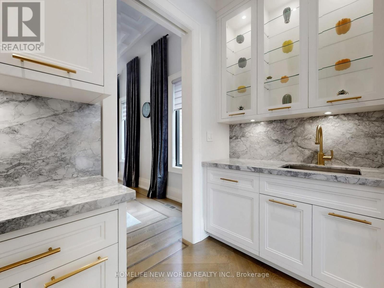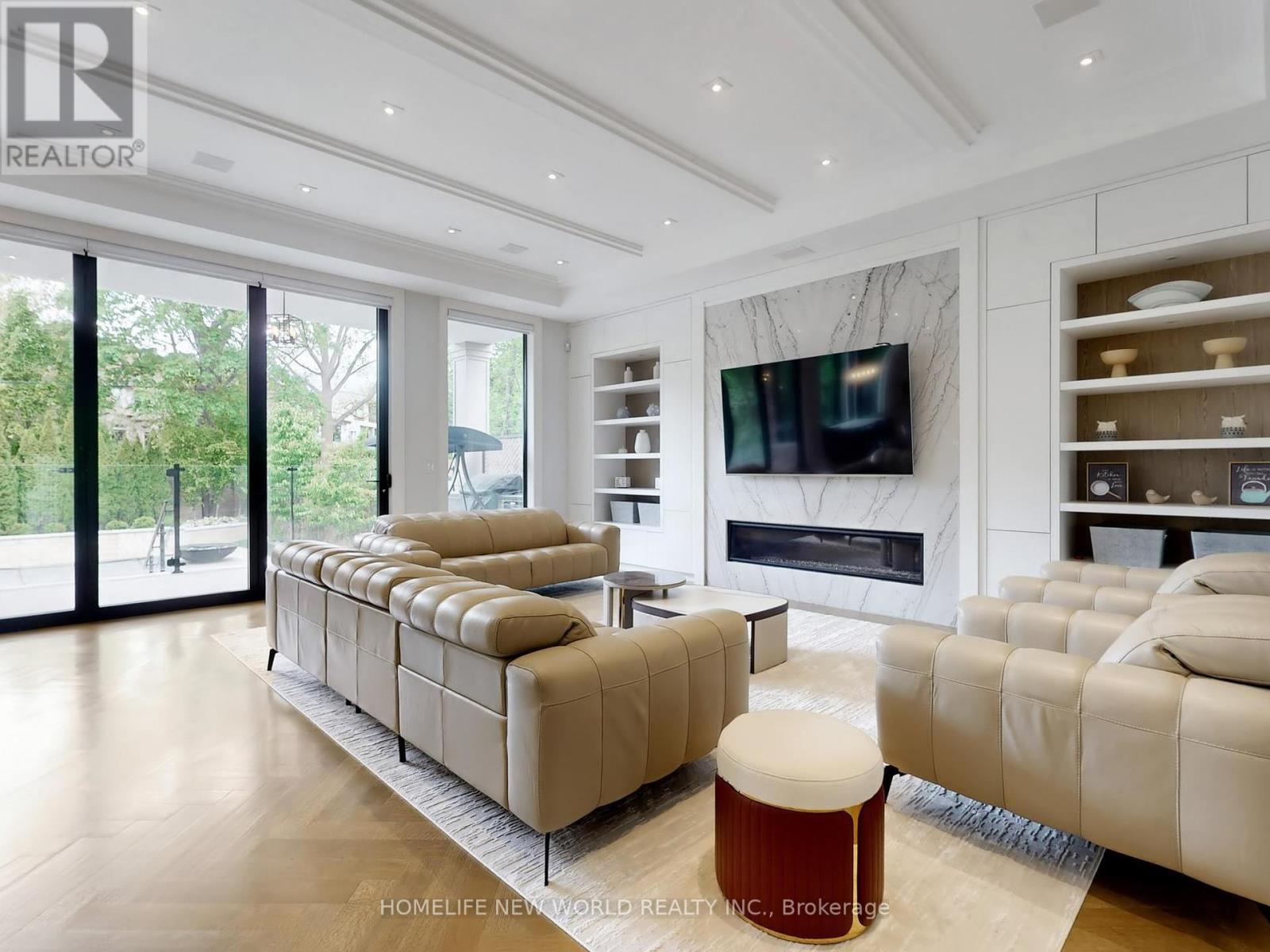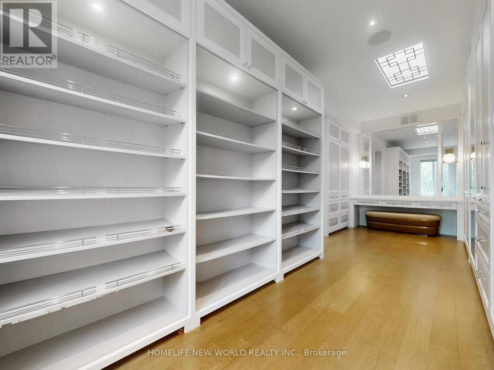 Welcome to 154 Yonge Blvd, a rare opportunity to own a custom-built luxury home! This residence offers over 7,200 sq.ft. of flawless design and craftsmanship in one of Toronto's most prestigious neighbourhoods, Bedford Park-Nortown. Meticulously built by Saaze with interiors by renowned designer Robin Nadel, the home combines timeless architecture with modern living. From the soaring 14-ft ceilings, oak rift-cut hardwood floors, and elegant panel detailing, every finish speaks sophistication.The main floor boasts a grand living and dining space and an executive office. An open-concept family room flows seamlessly into a designer kitchen featuring a La Cornue stove, a marble waterfall island, and a full suite of integrated Wolf/Sub-Zero appliances. These elegant spaces are perfect for both entertaining guests and comfortable everyday living. Upstairs, the primary retreat includes a spa-inspired 6-piece ensuite, walk-in closets, and a private balcony. All additional bedrooms offer their own ensuites and custom cabinetry. Each room is designed to provide privacy and comfort for family or guests. The walkout basement is an entertainment haven, featuring a full theatre, gym, recreation room, wet bar, and wine cellar. It opens out to a resort-style backyard with a saltwater pool, an outdoor kitchen, and lush greenery. This lower level seamlessly blends indoor and outdoor living, making it ideal for hosting gatherings or enjoying family time. A true statement of custom perfection complete with elevator access to all levels, a heated driveway, and built-in smart systems throughout. (id:65552)
