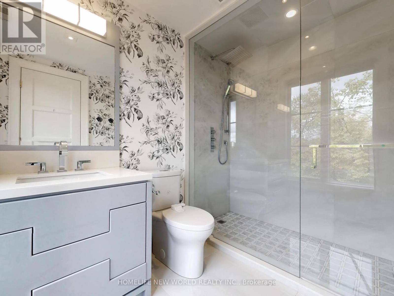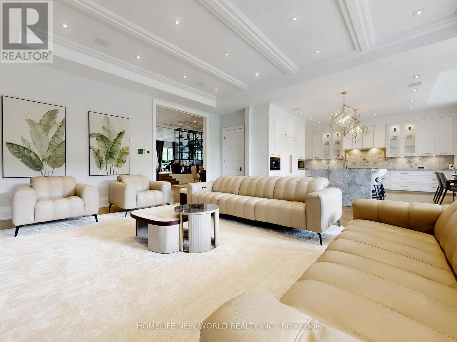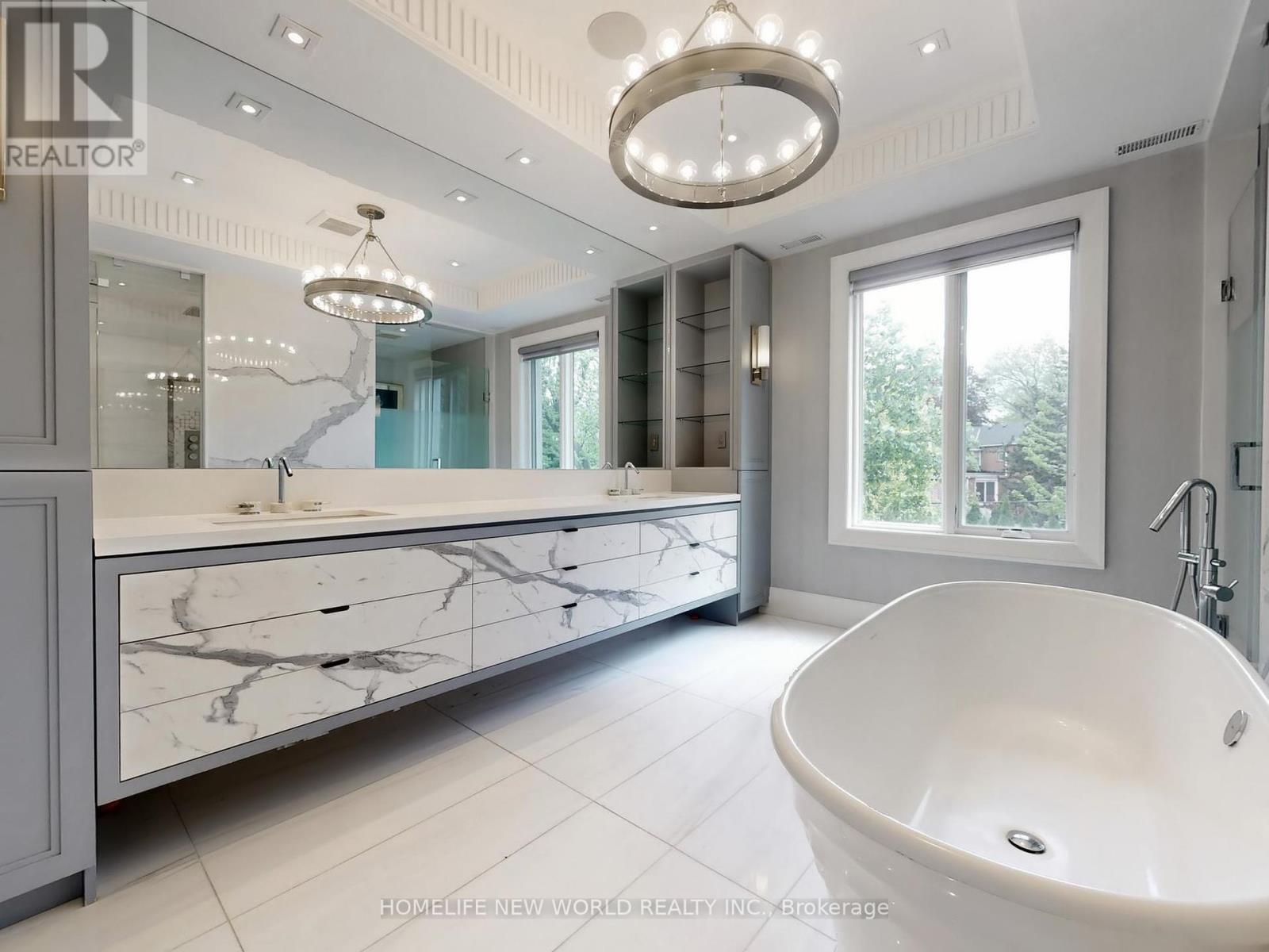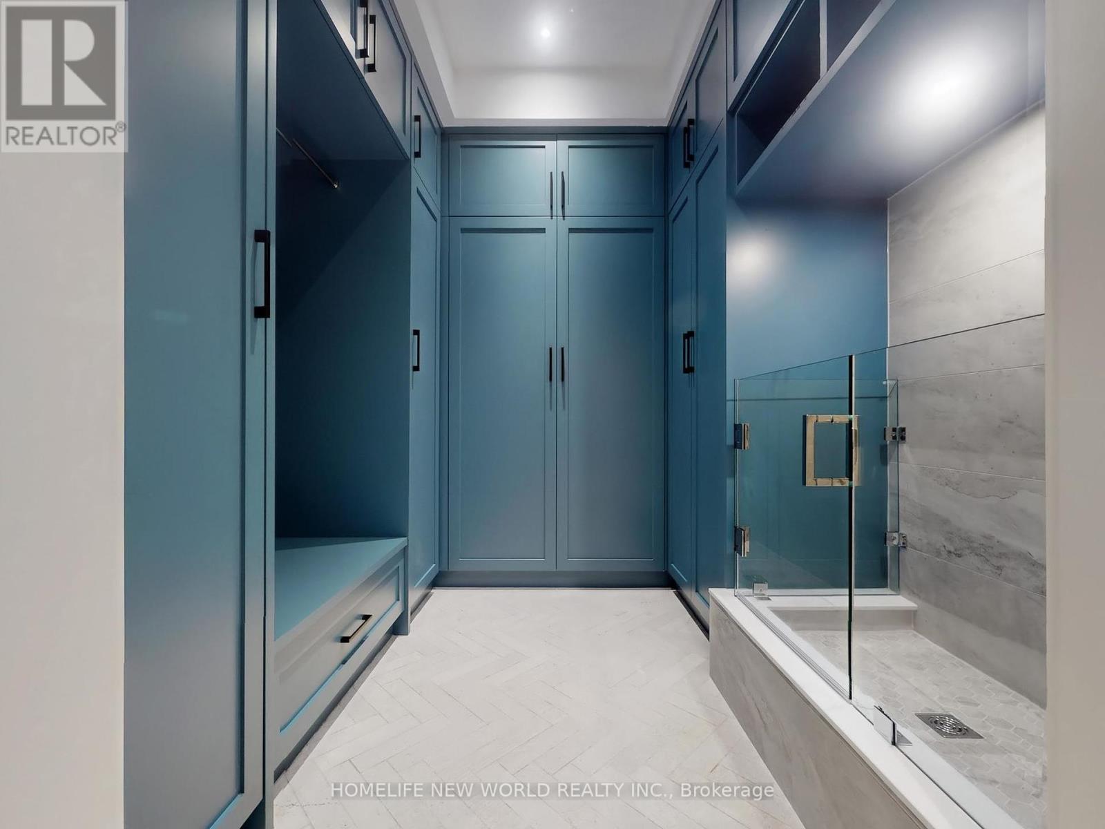 Welcome to 154 Yonge Blvd, a rare opportunity to own a custom-built luxury home! This residence offers over 7,200 sq.ft. of flawless design and craftsmanship in one of Toronto's most prestigious neighbourhoods, Bedford Park-Nortown. Meticulously built by Saaze with interiors by renowned designer Robin Nadel, the home combines timeless architecture with modern living. From the soaring 14-ft ceilings, oak rift-cut hardwood floors, and elegant panel detailing, every finish speaks sophistication.The main floor boasts a grand living and dining space and an executive office. An open-concept family room flows seamlessly into a designer kitchen featuring a La Cornue stove, a marble waterfall island, and a full suite of integrated Wolf/Sub-Zero appliances. These elegant spaces are perfect for both entertaining guests and comfortable everyday living. Upstairs, the primary retreat includes a spa-inspired 6-piece ensuite, walk-in closets, and a private balcony. All additional bedrooms offer their own ensuites and custom cabinetry. Each room is designed to provide privacy and comfort for family or guests. The walkout basement is an entertainment haven, featuring a full theatre, gym, recreation room, wet bar, and wine cellar. It opens out to a resort-style backyard with a saltwater pool, an outdoor kitchen, and lush greenery. This lower level seamlessly blends indoor and outdoor living, making it ideal for hosting gatherings or enjoying family time. A true statement of custom perfection complete with elevator access to all levels, a heated driveway, and built-in smart systems throughout. (id:65552)