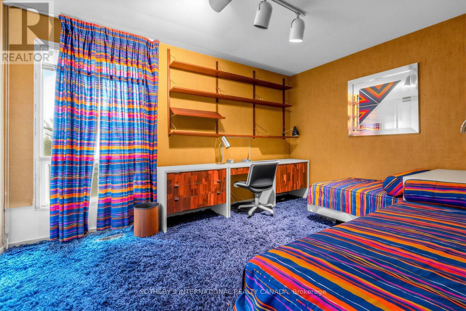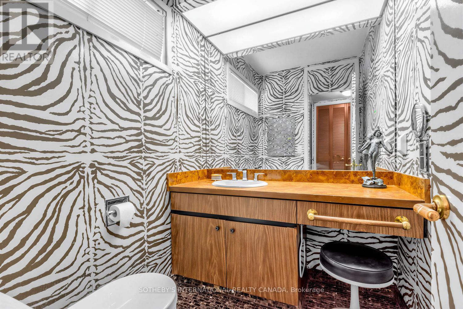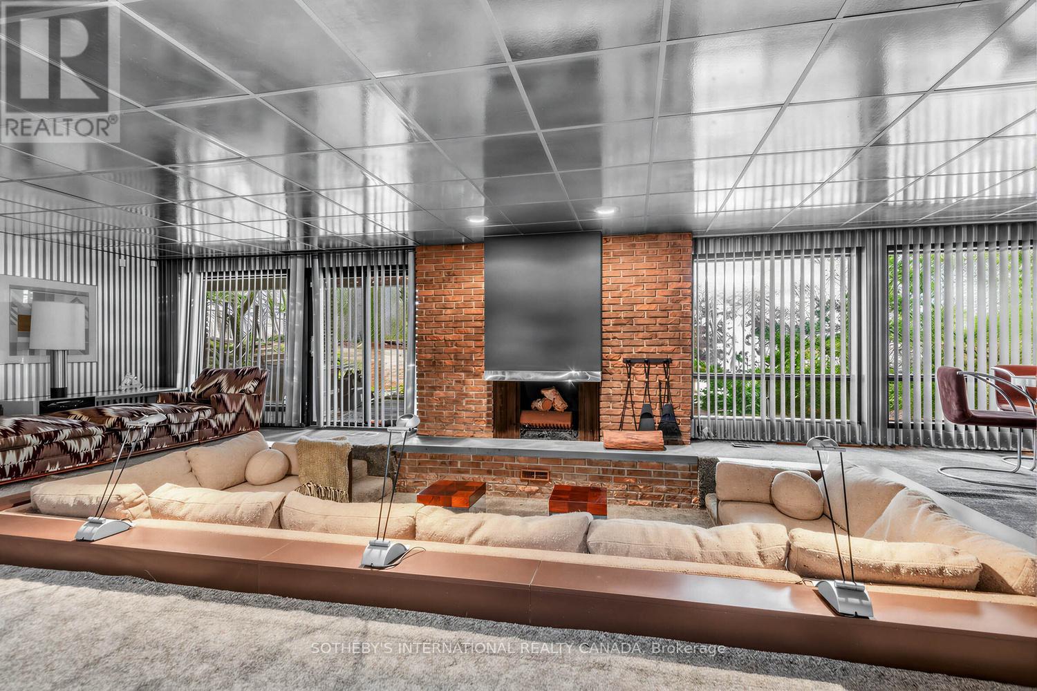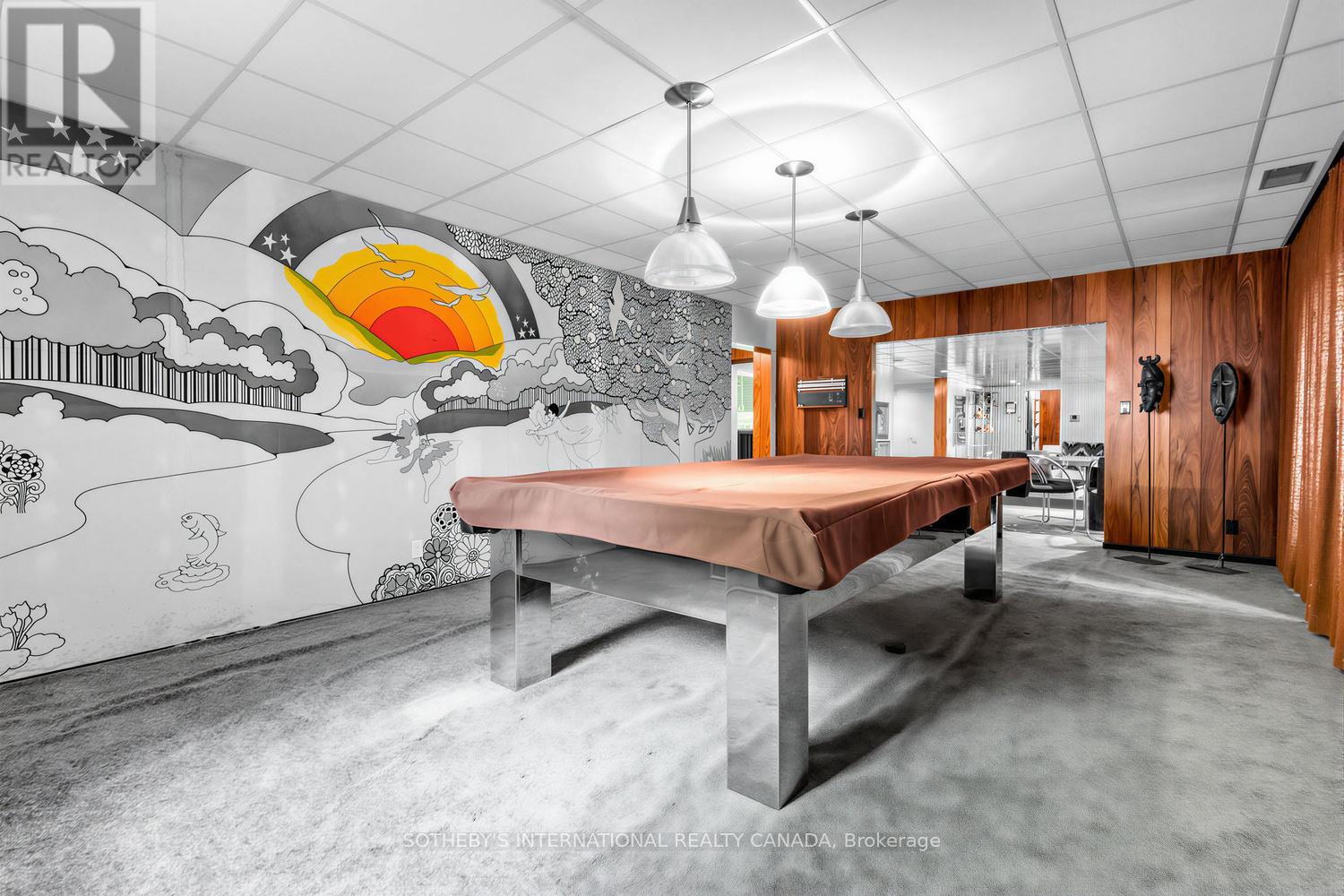 Tucked into a serene, tree-lined setting in prestigious Bridle Path area this architecturally distinctive bungalow offers exceptional scale, privacy, and opportunity customize, renovate, or build new. The home sits on a rare 100 x 133 ft lot and enjoys mature landscaping that creates a peaceful, ravine-like backdrop with beautiful wooded views.The main level spans approximately 2,844 sq. ft. and features a thoughtfully designed layout with 4 bedrooms, including a spacious primary retreat with a 5-piece ensuite. The home showcases generous principal rooms that include a sun-filled living room with floor-to-ceiling windows and a formal dining room that overlooks the living space. The kitchen connects seamlessly to a warm family room that offers a walk-out to an expansive deck and creates ideal indoor-outdoor living.A defining feature highlights the dramatic living area, which boasts soaring ceilings, rich wood detailing, and oversized windows that flood the interior with natural light. The design reflects a striking mid-century modern influence and provides a unique canvas to update, renovate, or enjoy as-is.The fully finished lower level spans approximately 2,844 sq. ft. and expands the living space with a large recreation room that features a fireplace, sunken sitting area and a walk-out to the garden. The lower level also includes a billiards or games room, a separate sitting area, a bar, and extensive storage, which together support both family living and entertaining on a grand scale . The property includes an attached 2-car garage and a private drive that accommodates additional parking. The home sits in a quiet, established neighbourhood that offers a strong sense of community and convenient access to top schools, parks, and amenities .This property presents a rare opportunity to secure a substantial home on a prime lot in one of Toronto's most coveted enclaves.