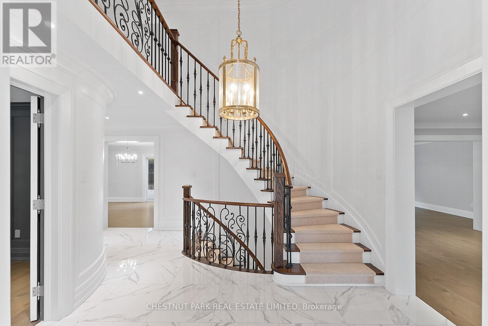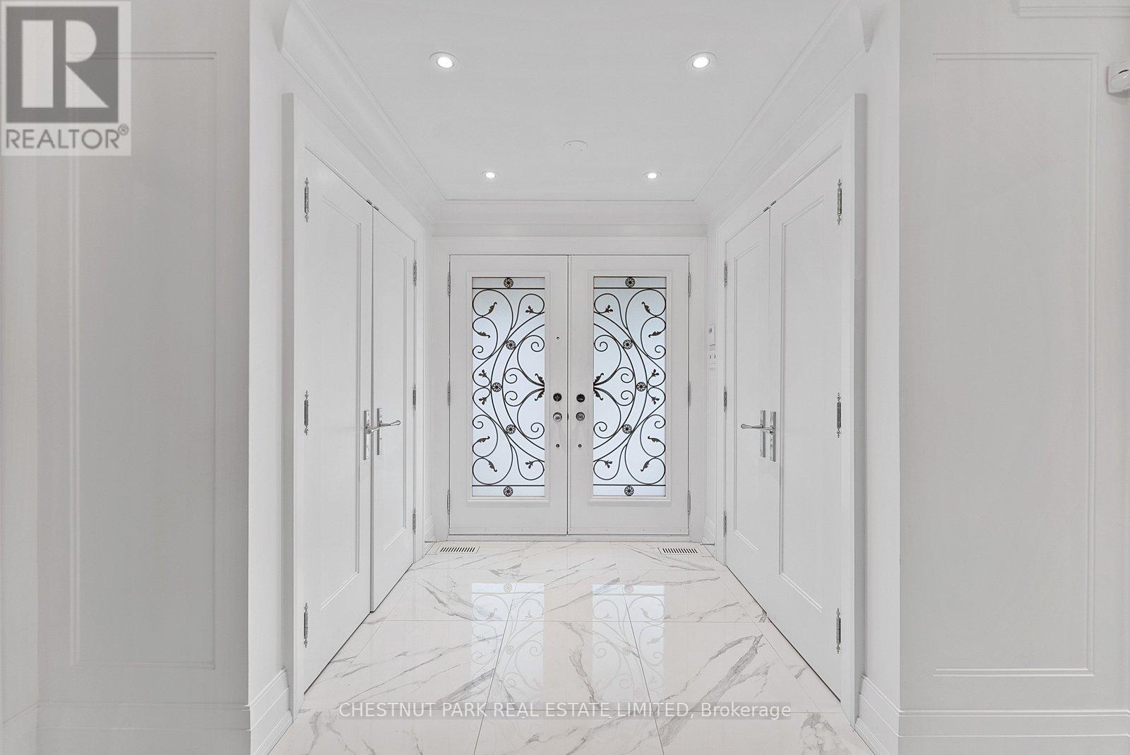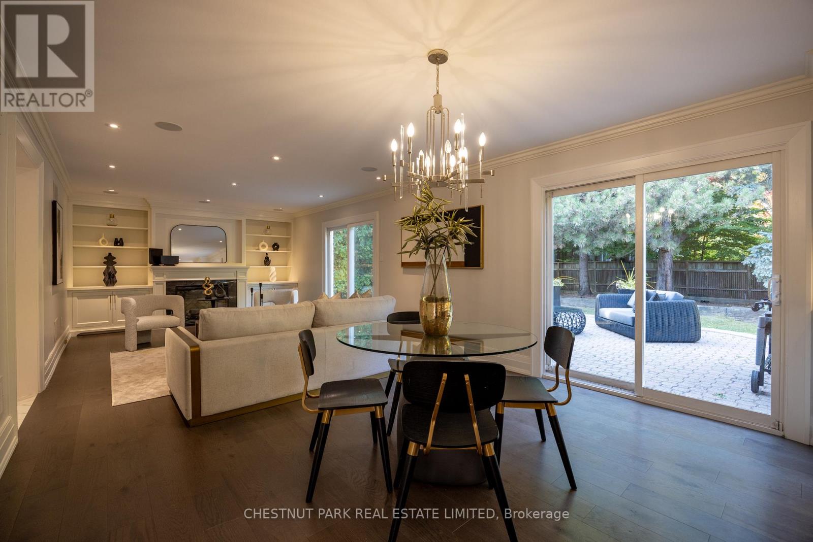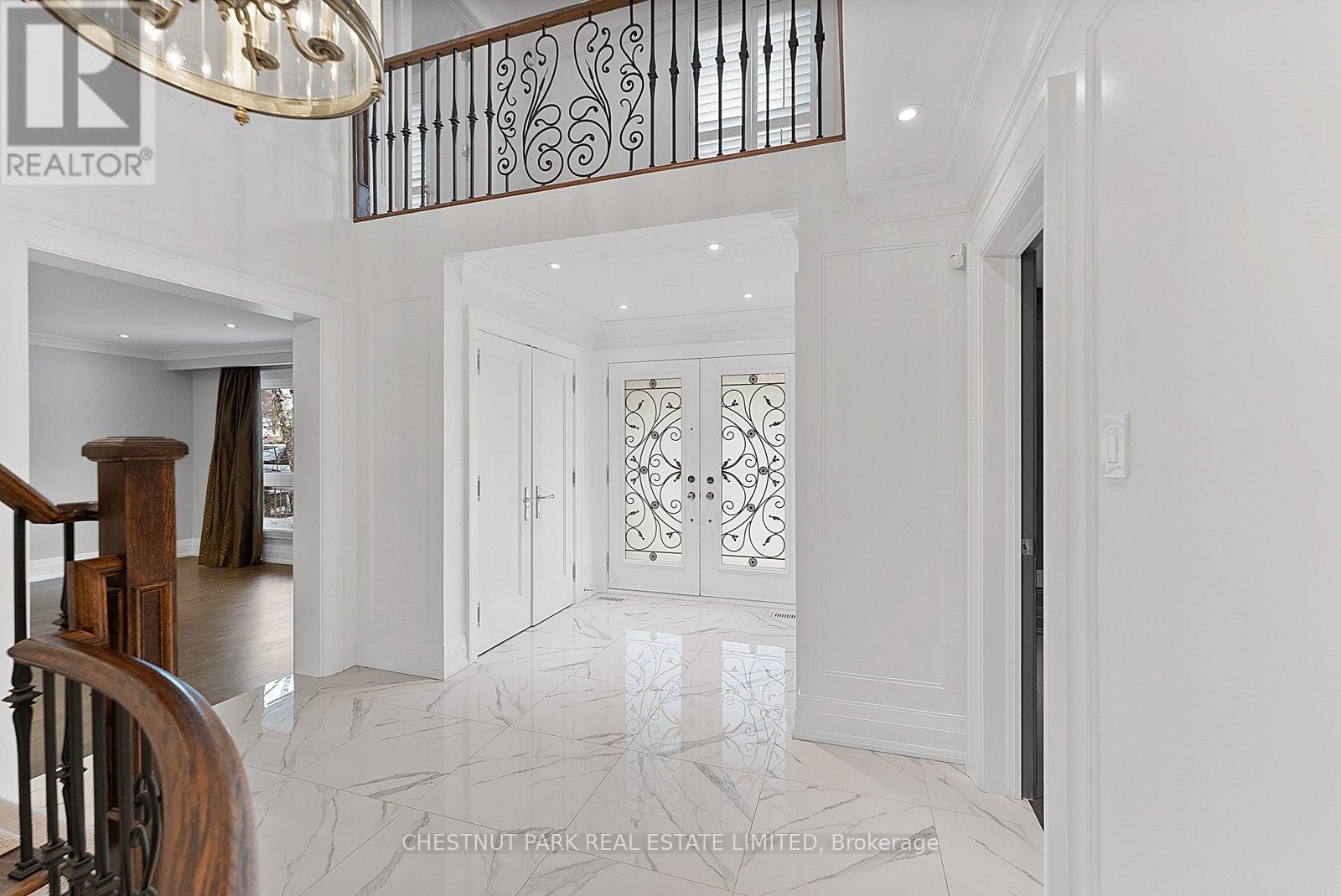 Nestled in the coveted Banbury community, this 5-bedroom, 6-bathroom home offers over 6,000 sq. ft. of beautifully updated living space on an 84 x 125 ft lot, complete with a 3-car garage. Thoughtfully renovated throughout, the home showcases exceptional craftsmanship, custom millwork, pot-lit moulded ceilings, and high-end finishes. A wrought-iron entry opens to a stunning two-storey foyer with floor-to-ceiling wainscoting and a private office. The main floor features spacious living and dining areas, along with an enlarged chef's kitchen with Bloomsbury cabinetry, a custom-paneled Sub-Zero fridge and freezer, a 6-burner Wolf stainless steel gas range, a Miele dishwasher, a centre island, and a generous breakfast area. The adjoining family room and mudroom/laundry with direct garage access complete the space. Custom built-ins by Bloomsbury Fine Cabinetry are found throughout, including in the office, family room, dining room, and laundry. The spacious breakfast area, adjacent to the kitchen and family room, walks out to the backyard and stone patio-perfect for everyday living and entertaining. Upstairs, the primary suite features a beautifully updated ensuite with an RH vanity and linen cabinet. Four additional bedrooms and two full bathrooms complete the upper level. The finished basement offers a large recreation room, wet bar, gas fireplace, and a flexible space that can be used as a games room or an additional bedroom with its own 3-piece ensuite. Ideally located with easy access to highways and TTC routes, and close to top-rated public and private schools, including Crescent School, TFS, Bayview Glen, Crestwood, La Citadelle, Denlow PS (7-minute walk), Winfield MS (15-minute walk), York Mills CI (6-minute walk), and Northern SS.Just steps to Banbury Community Centre, Banbury Tennis Club, Windfields Park, and nearby ravine trails. Minutes to the Shops at Don Mills and Edwards Gardens. (id:65552)