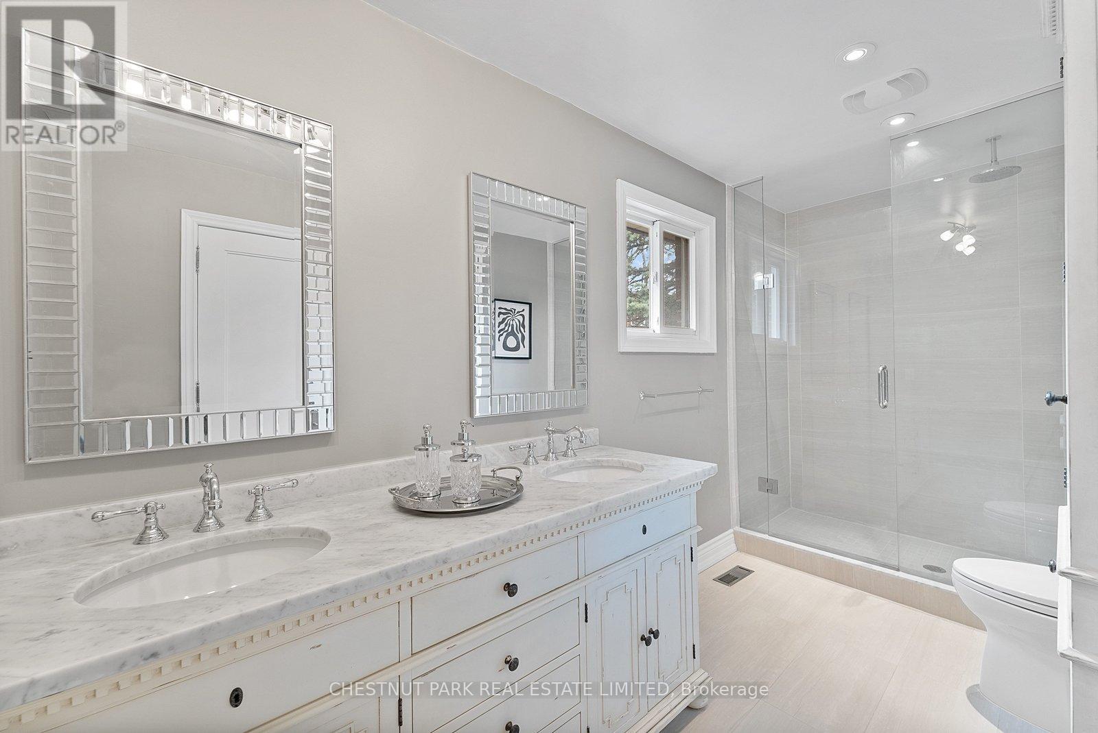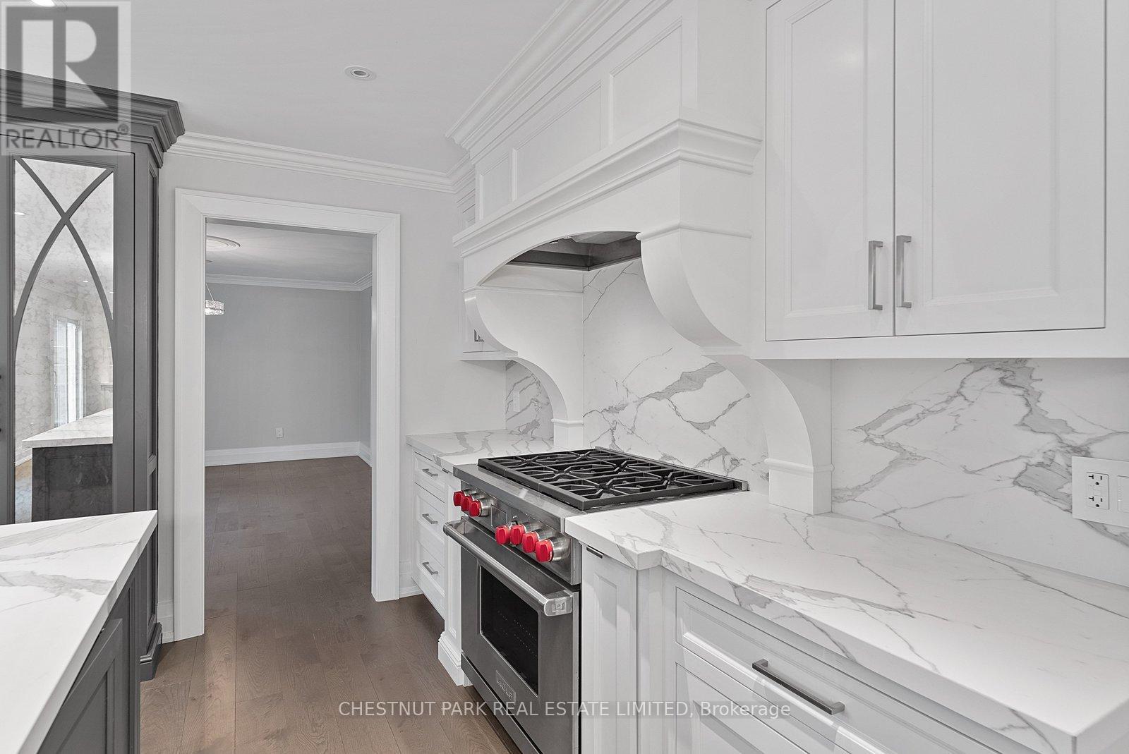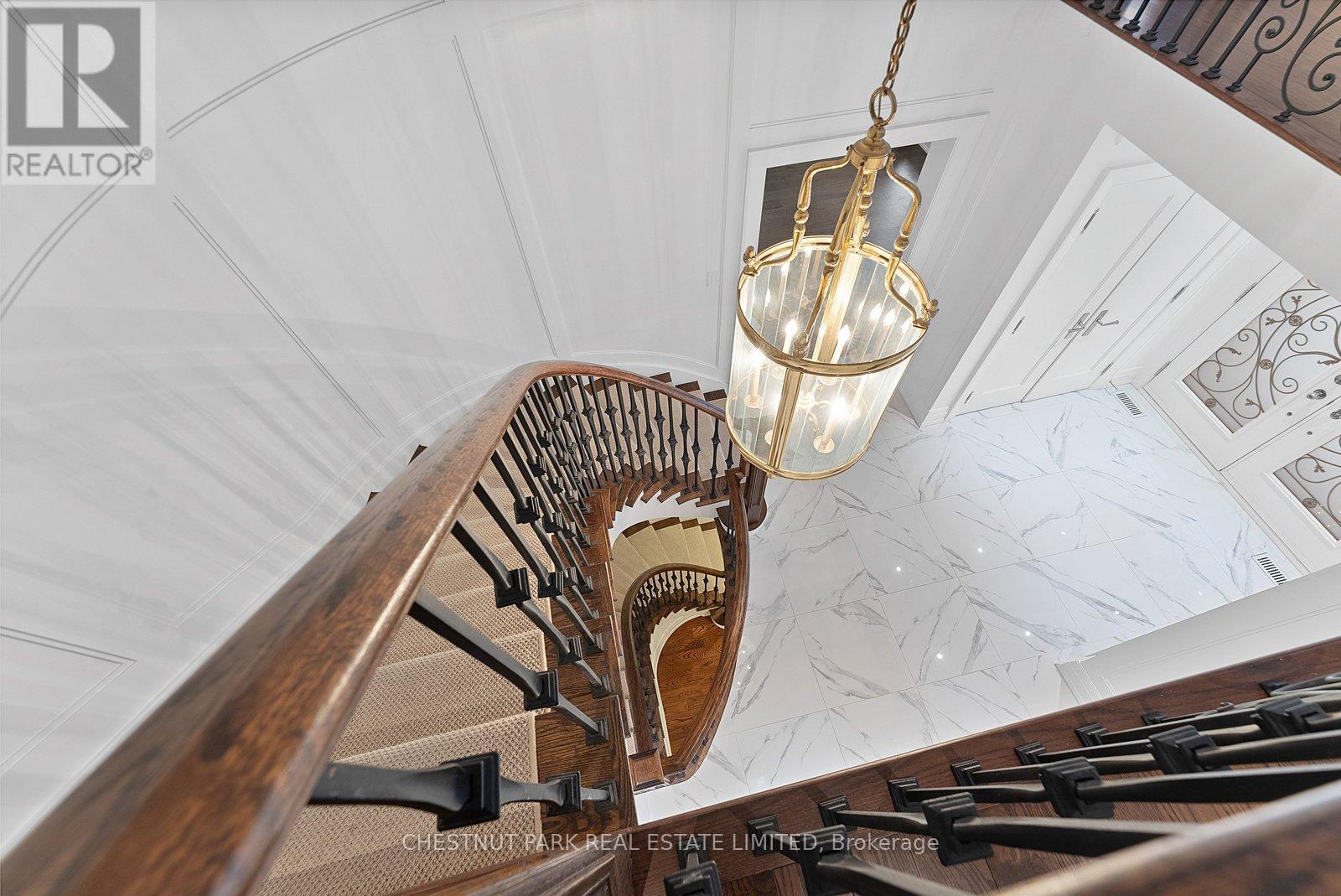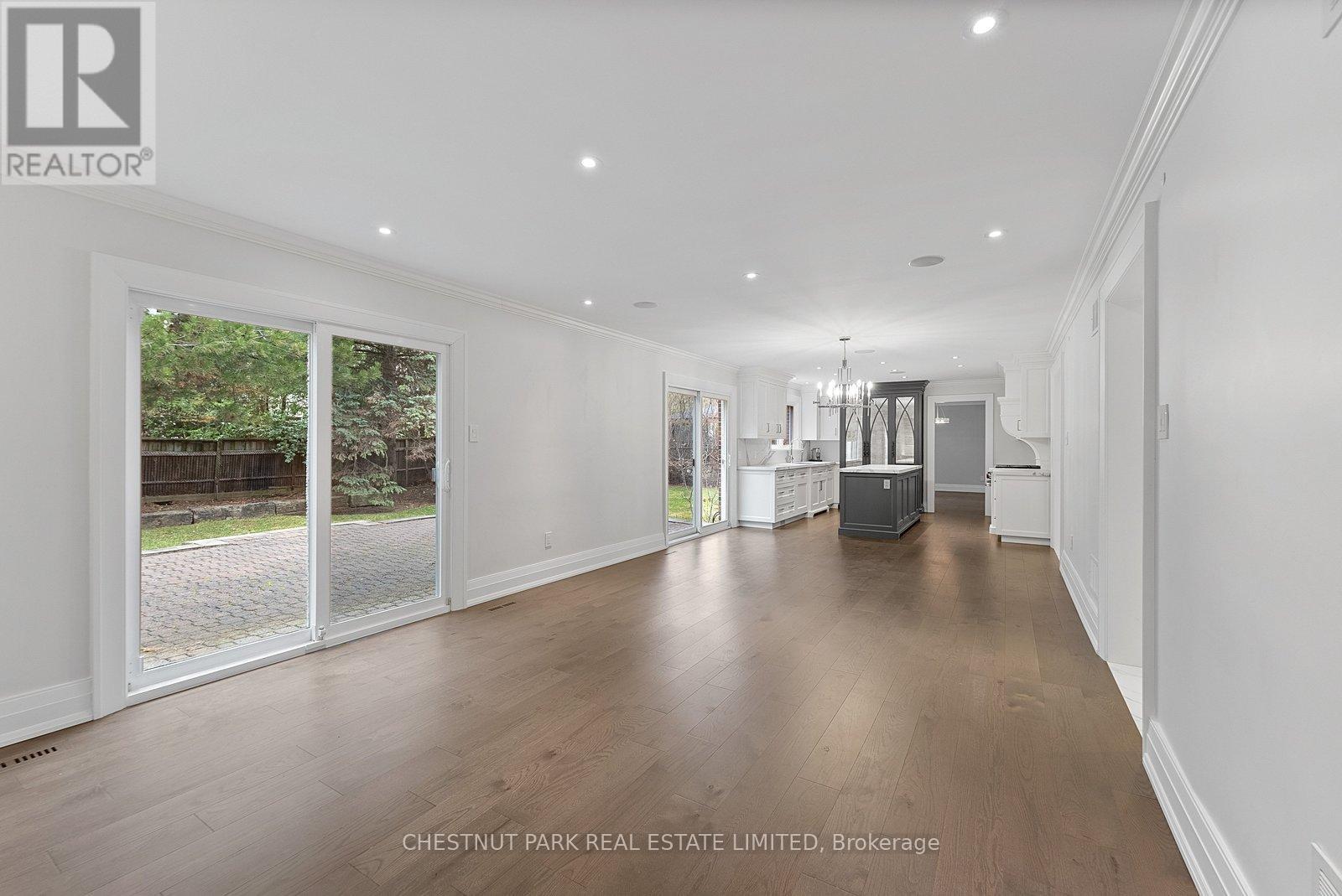 Nestled in the coveted Banbury community, this 5-bedroom, 6-bathroom home offers over 6,000 sq. ft. of beautifully updated living space on an 84 x 125 ft lot, complete with a 3-car garage. Thoughtfully renovated throughout, the home showcases exceptional craftsmanship, custom millwork, pot-lit moulded ceilings, and high-end finishes. A wrought-iron entry opens to a stunning two-storey foyer with floor-to-ceiling wainscoting and a private office. The main floor features spacious living and dining areas, along with an enlarged chef's kitchen with Bloomsbury cabinetry, a custom-paneled Sub-Zero fridge and freezer, a 6-burner Wolf stainless steel gas range, a Miele dishwasher, a centre island, and a generous breakfast area. The adjoining family room and mudroom/laundry with direct garage access complete the space. Custom built-ins by Bloomsbury Fine Cabinetry are found throughout, including in the office, family room, dining room, and laundry. The spacious breakfast area, adjacent to the kitchen and family room, walks out to the backyard and stone patio-perfect for everyday living and entertaining. Upstairs, the primary suite features a beautifully updated ensuite with an RH vanity and linen cabinet. Four additional bedrooms and two full bathrooms complete the upper level. The finished basement offers a large recreation room, wet bar, gas fireplace, and a flexible space that can be used as a games room or an additional bedroom with its own 3-piece ensuite. Ideally located with easy access to highways and TTC routes, and close to top-rated public and private schools, including Crescent School, TFS, Bayview Glen, Crestwood, La Citadelle, Denlow PS (7-minute walk), Winfield MS (15-minute walk), York Mills CI (6-minute walk), and Northern SS.Just steps to Banbury Community Centre, Banbury Tennis Club, Windfields Park, and nearby ravine trails. Minutes to the Shops at Don Mills and Edwards Gardens. (id:65552)