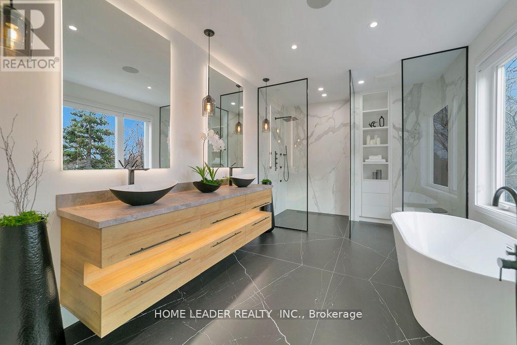 4800 SQF Living Space (3650 SQF above grade) This California Style Custom Home In Heart of Remarkable & Most Accessible Yonge & Sheppard. A Seamless Blend of Modern Design and Timeless Elegance! this stunning residence is just steps from the subway station and Hwy 401. Experience unparalleled comfort and luxury, beginning with a cozy heated driveway, steps, and porch, leading to a warm, heated grand foyers perfect introduction to the thoughtfully designed interiors. The beautifully appointed great room features elegant paneled walls, a cozy gas fireplace, and expansive picture windows, offering seamless indoor-outdoor living. At the heart of the home lies an exquisite chefs kitchen, outfitted with high-end Miele appliances, a striking porcelain-wrapped center island, and custom, premium cabinetry ideal for both entertaining and everyday living. The main floor boasts a soaring 13 office, complete with heated floors and a smart privacy divider, creating an inspiring and private workspace. Upstairs, the luxurious primary suite awaits, featuring a fireplace, an oversized walk-in closet, and a spa-like 6-piece ensuite with a heated curb-less shower and modern standalone tub. Three additional bedrooms, each with its own ensuite, ensure ultimate comfort and privacy for family and guests. The bright, fully-finished basement showcases heated floors throughout, a spacious recreation room, a wet bar, and a walkout to a patio with hot tub rough-in perfect for entertaining or relaxing. A pet wash station adds convenience for families with pets, and the oversized backyard deck is an ideal space for summer gatherings. Every detail has been meticulously curated, with features including a full automation system, extensive custom paneling, and smart toilets. This home offers a flawless combination of luxury, practicality, and location, making it a true masterpiece in the heart of North York!