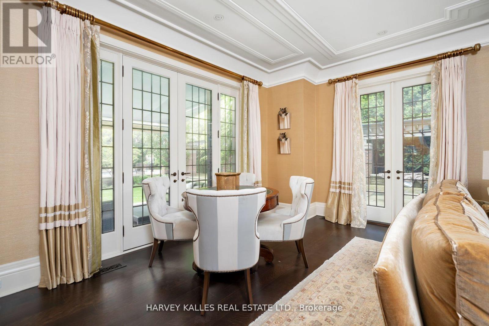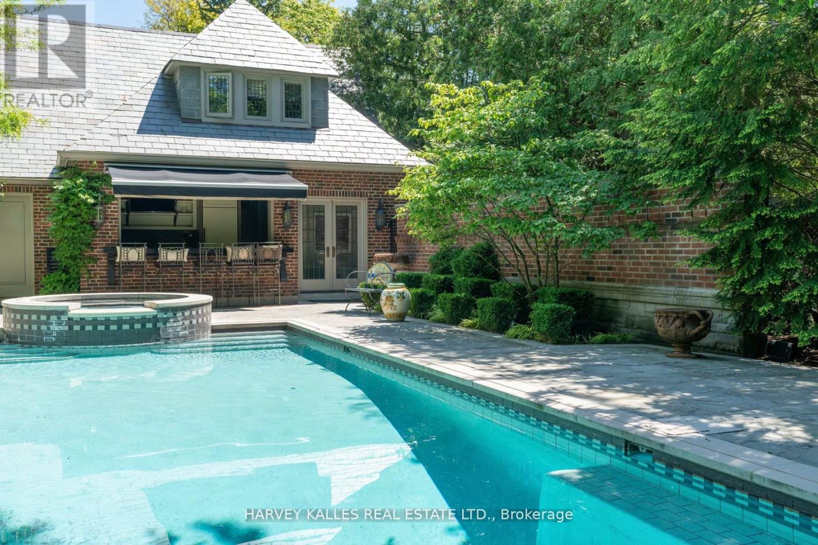 Classic residence sited on an estate-sized 0.54-acre lot on one of the most prestigious streets in Teddington Park, adjacent to Rosedale Golf Club. The home was completely taken back to the studs and restored by Joe Brennan with interior design by Lori Morris, showcasing superb craftsmanship, impeccable finishes, and meticulous attention to the finest materials. Grand principal rooms are ideal for entertaining, complemented by an epicurean kitchen, while the sunroom and family room with walk-out to terraces provide more relaxed living spaces. A richly panelled library offers a quiet retreat. Luxurious primary suite boasts a dressing room with centre island and custom built-in shelves. The third level features a spacious loft with two additional bedrooms and two baths. The lower level includes a wine cellar and a large room suitable for a home theatre. The lovely grounds enchant and delight, framed by a canopy of mature trees, exquisite gardens, a sparkling pool, hot tub, fountain, and an eat-in area shaded by a pergola. At the heart of the garden stands a graceful tiered fountain, where water cascades in delicate streams, creating a tranquil focal point. The charming coach house blends elegance and functionality, featuring a kitchen with an aluminum blind that opens to reveal an outdoor bar, complemented by a retractable awning for shade. Inside , there is an exercise room with walk-out to a basketball court, a loft with vaulted ceiling, a bedroom, and a three-piece bath, ideal for guests. Close to Toronto's top private and public schools, clubs, shopping, transit, and a short drive downtown. This exceptional property offers a rare combination of architectural refinement, expansive outdoor living, and thoughtful design, creating an ideal setting for both grand entertaining and comfortable family living in one of the city's most coveted neighbourhoods. A distinguished offering that seamlessly blends timeless elegance with modern luxury and convenience.