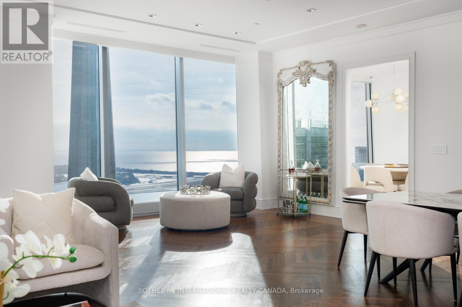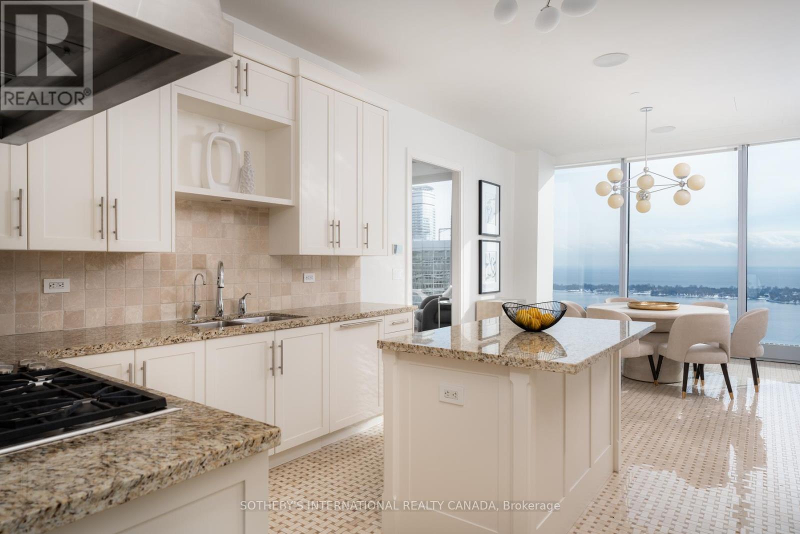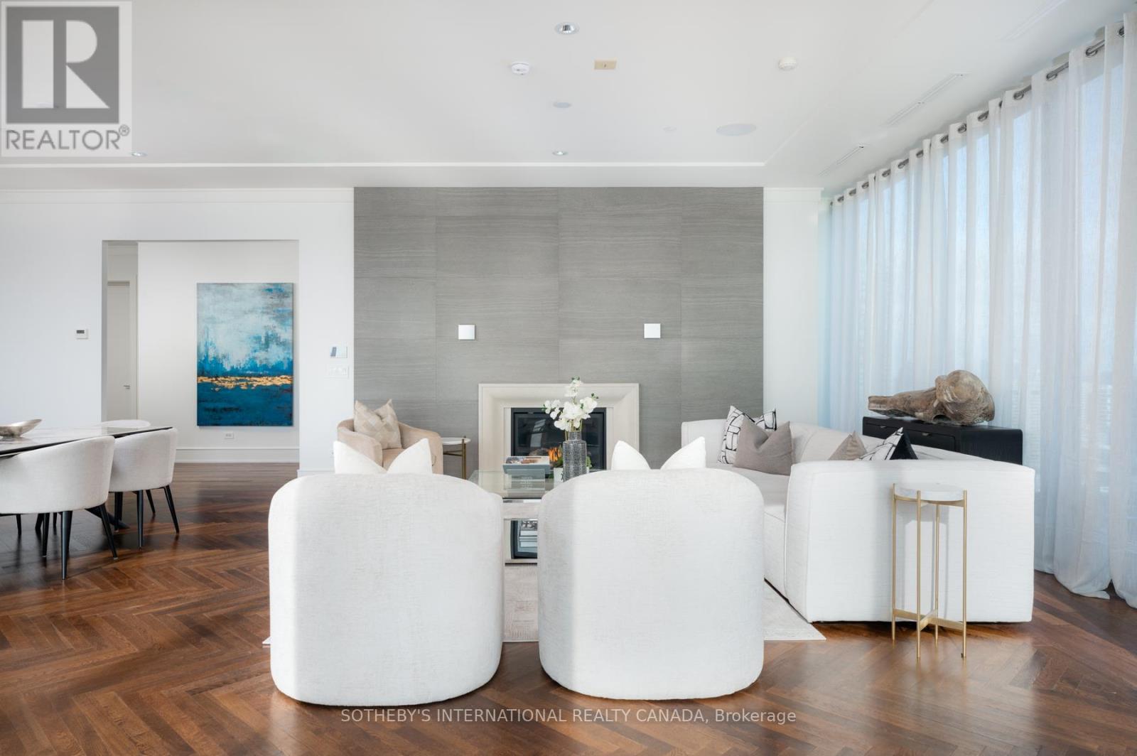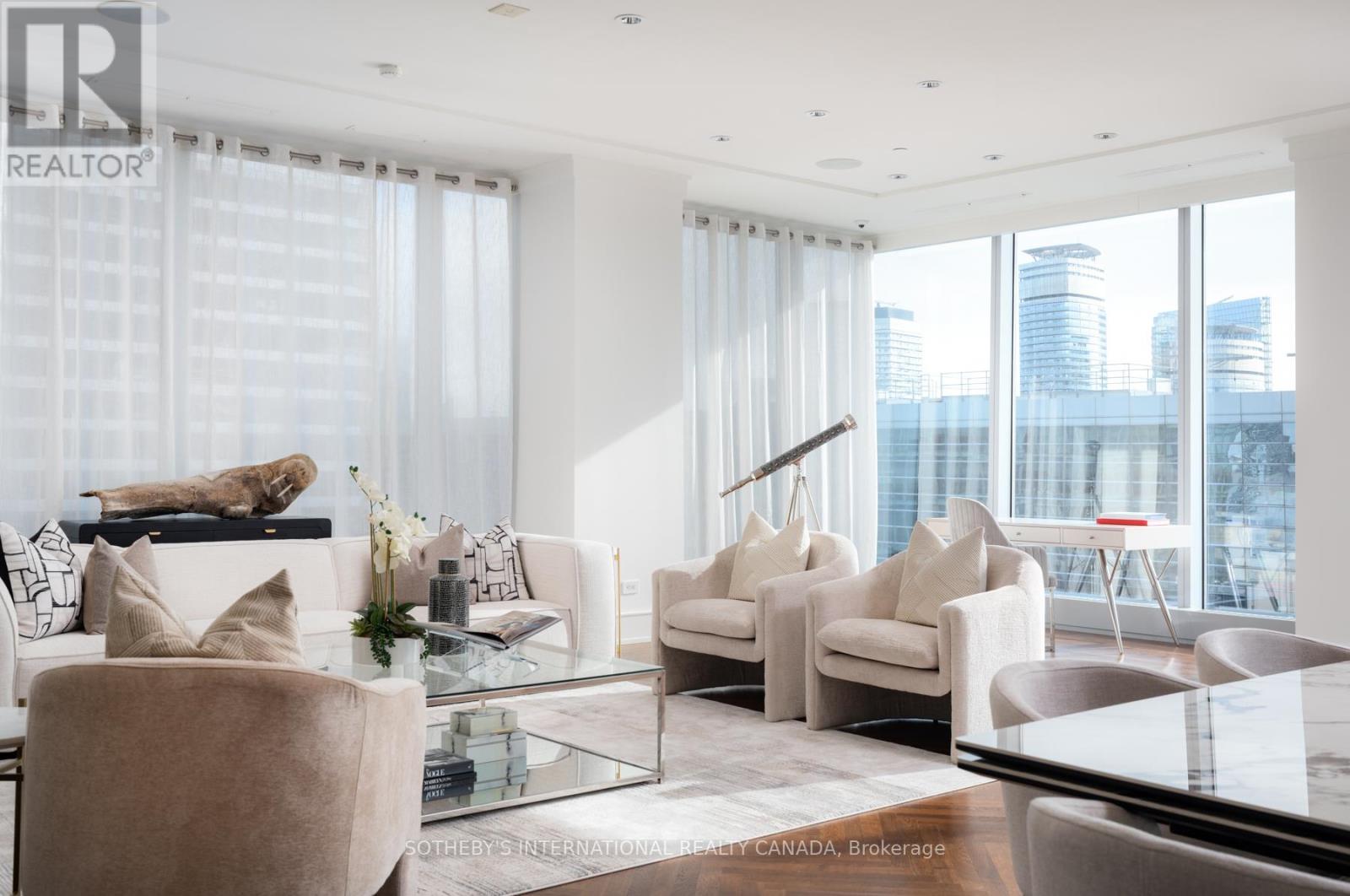 Step into a world of refined elegance at this exclusive 2,500 sq. ft. corner residence in the iconic Ritz-Carlton Toronto. Accessed by your own private elevator, this 2 bedroom, 3 bathroom suite embodies timeless sophistication, with finishes that reflect the heritage and grandeur of one of the worlds most celebrated luxury brands. With breathtaking unobstructed southeast views of Toronto's skyline and Lake Ontario, this suite offers a tranquil retreat high above the city. The living and dining areas feature expansive 10ft floor-to-ceiling windows that bathe the space in natural light, an open-concept design with herringbone engineered hardwood and a bespoke gas fireplace framed by a custom porcelain and limestone mantle. The gourmet kitchen boasts premium stainless steel and paneled appliances, stunning light fixtures, marble flooring, centre island with breakfast bar, granite countertops, tile backsplash, undermount lighting and a spacious breakfast area with spectacular south facing views. The primary bedroom offers engineered oak hardwood, a spacious walk-in closet with custom cabinetry and a lavish 5-piece ensuite that includes heated limestone floors, heated towel rack, and granite countertops. The second bedroom provides stunning south-facing views, his-and-her closets, and a private 4-piece ensuite with marble countertops and limestone floors. Living at The Ritz-Carlton means experiencing unparalleled service and amenities through the buildings state-of-the-art fitness center, rejuvenating spa, indoor saltwater pool, hot tub, steam room, sauna, media rooms, party facilities, rooftop terraces, guest suite, private boardroom, on-site restaurants, 24-hour concierge, valet parking, and private elevator access. Nestled in the heart of Toronto's vibrant Entertainment District, just steps from world-class dining, luxury shopping, cultural landmarks, and seamless connectivity through Union Station and PATH system. Schedule a private tour today. (id:65552)