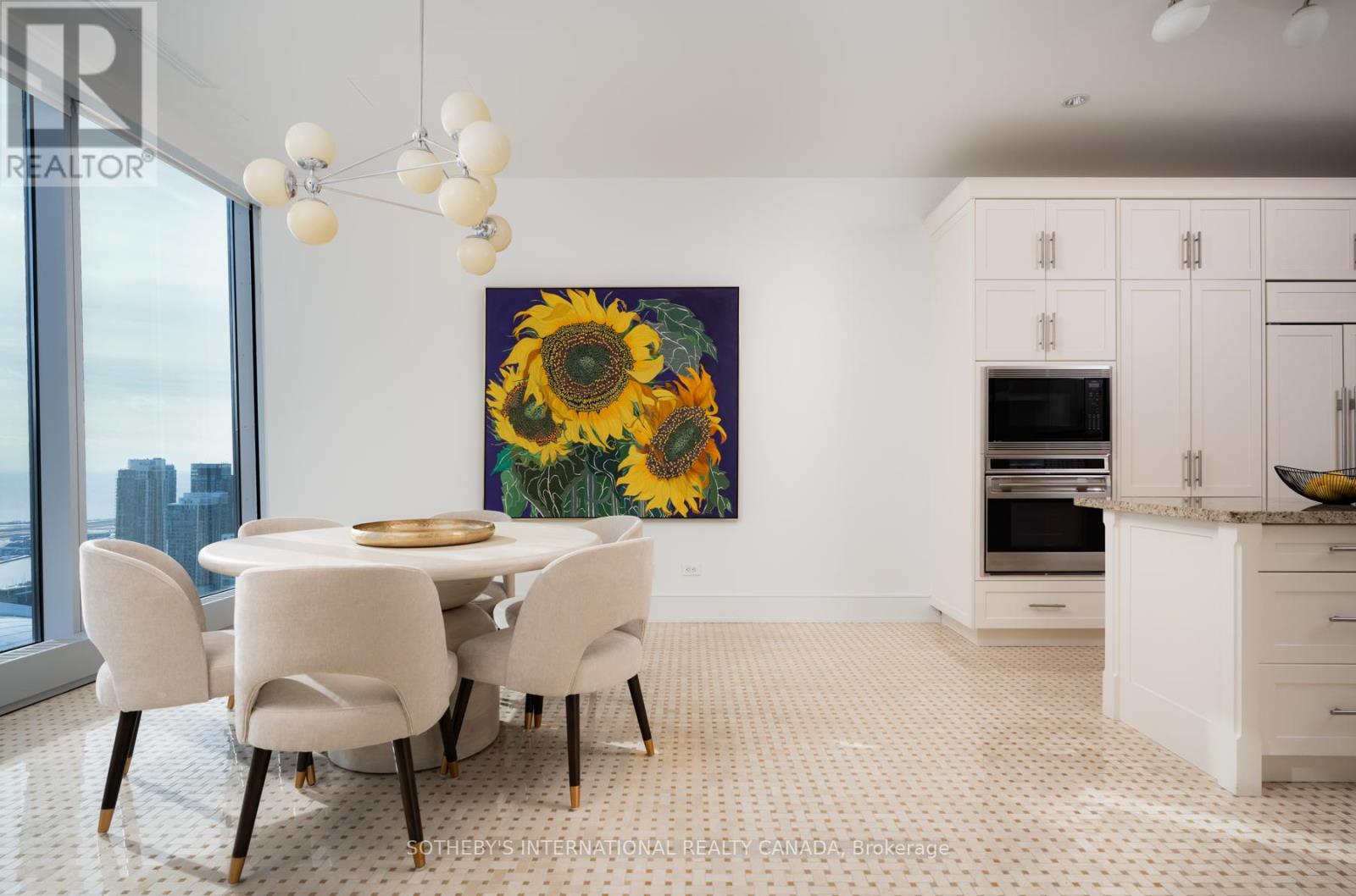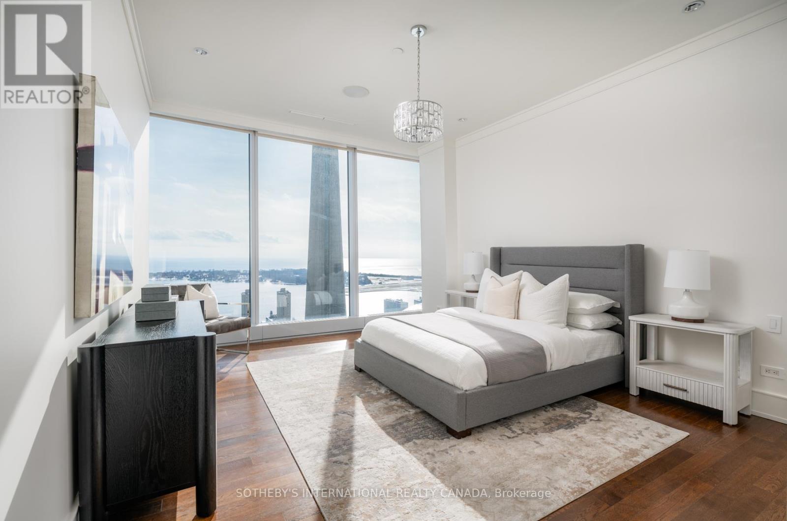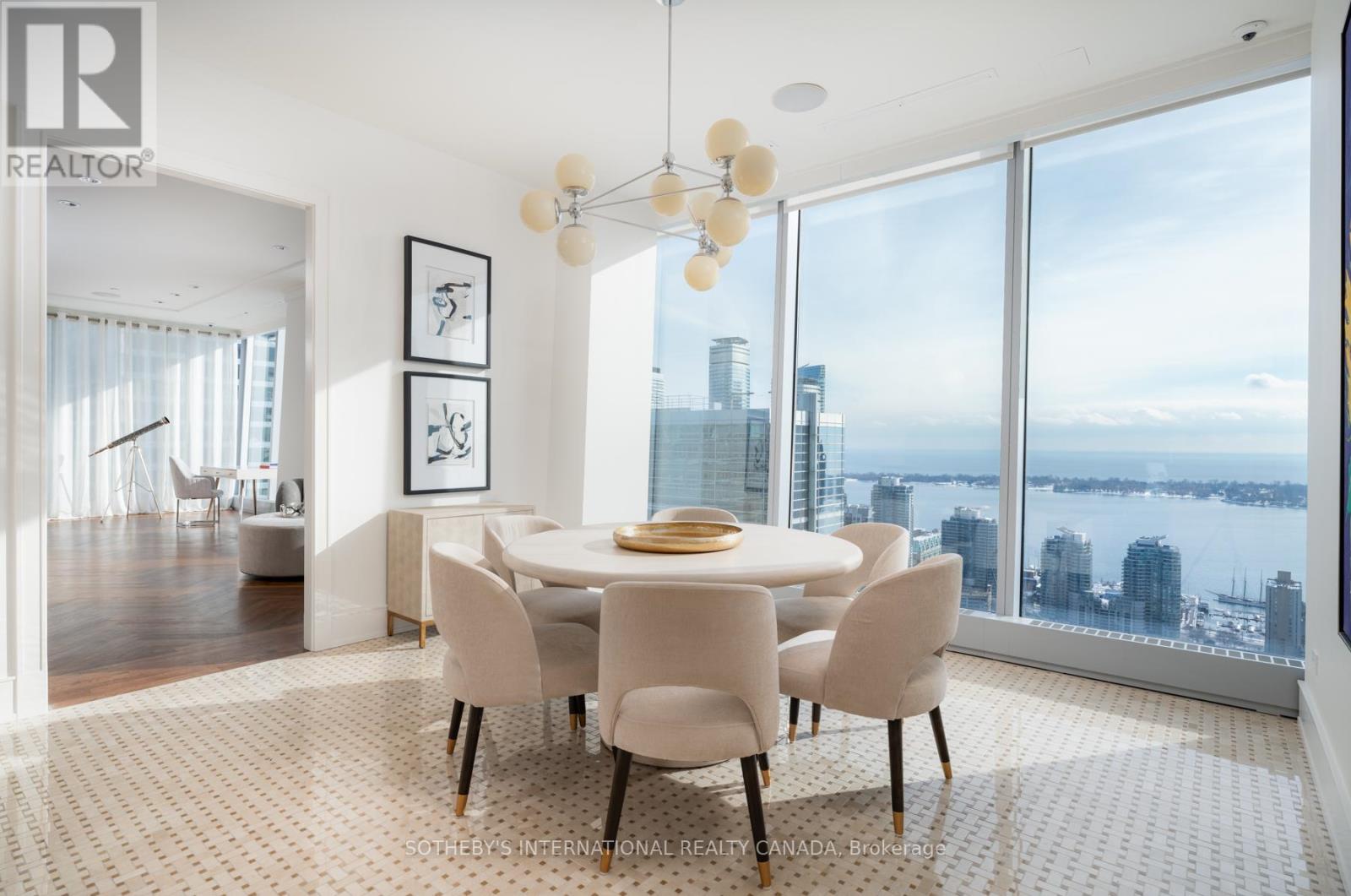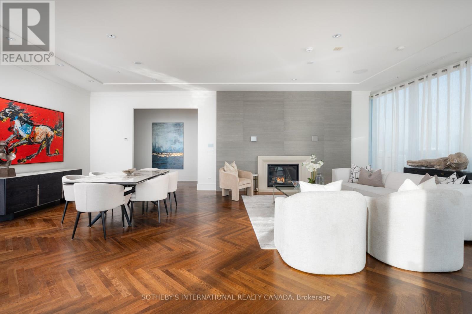 Step into a world of refined elegance at this exclusive 2,500 sq. ft. corner residence in the iconic Ritz-Carlton Toronto. Accessed by your own private elevator, this 2 bedroom, 3 bathroom suite embodies timeless sophistication, with finishes that reflect the heritage and grandeur of one of the worlds most celebrated luxury brands. With breathtaking unobstructed southeast views of Toronto's skyline and Lake Ontario, this suite offers a tranquil retreat high above the city. The living and dining areas feature expansive 10ft floor-to-ceiling windows that bathe the space in natural light, an open-concept design with herringbone engineered hardwood and a bespoke gas fireplace framed by a custom porcelain and limestone mantle. The gourmet kitchen boasts premium stainless steel and paneled appliances, stunning light fixtures, marble flooring, centre island with breakfast bar, granite countertops, tile backsplash, undermount lighting and a spacious breakfast area with spectacular south facing views. The primary bedroom offers engineered oak hardwood, a spacious walk-in closet with custom cabinetry and a lavish 5-piece ensuite that includes heated limestone floors, heated towel rack, and granite countertops. The second bedroom provides stunning south-facing views, his-and-her closets, and a private 4-piece ensuite with marble countertops and limestone floors. Living at The Ritz-Carlton means experiencing unparalleled service and amenities through the buildings state-of-the-art fitness center, rejuvenating spa, indoor saltwater pool, hot tub, steam room, sauna, media rooms, party facilities, rooftop terraces, guest suite, private boardroom, on-site restaurants, 24-hour concierge, valet parking, and private elevator access. Nestled in the heart of Toronto's vibrant Entertainment District, just steps from world-class dining, luxury shopping, cultural landmarks, and seamless connectivity through Union Station and PATH system. Schedule a private tour today. (id:65552)