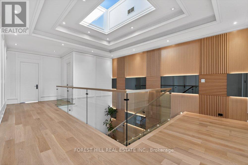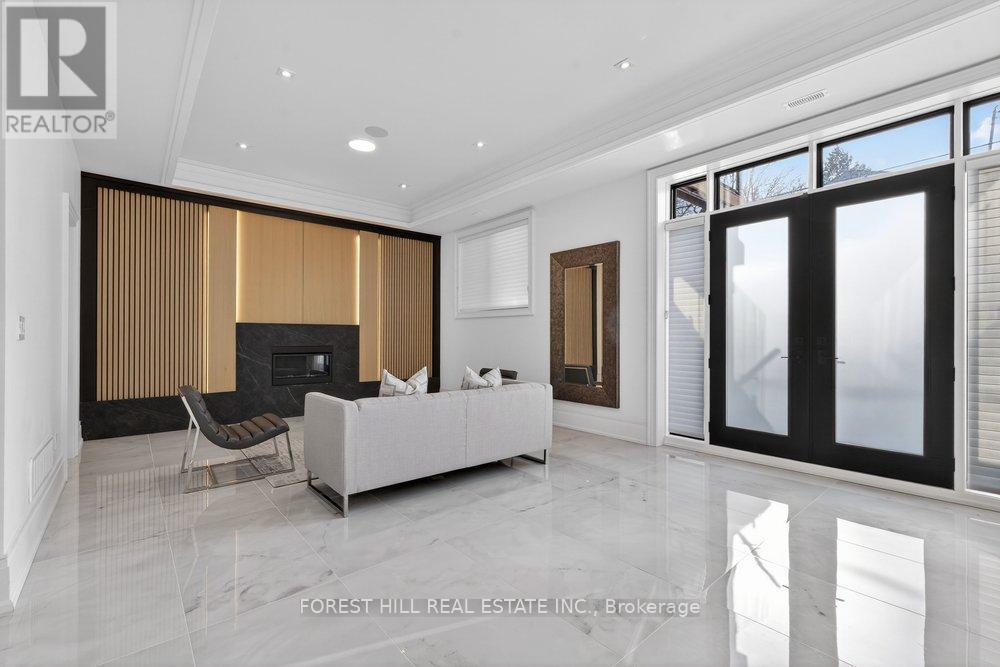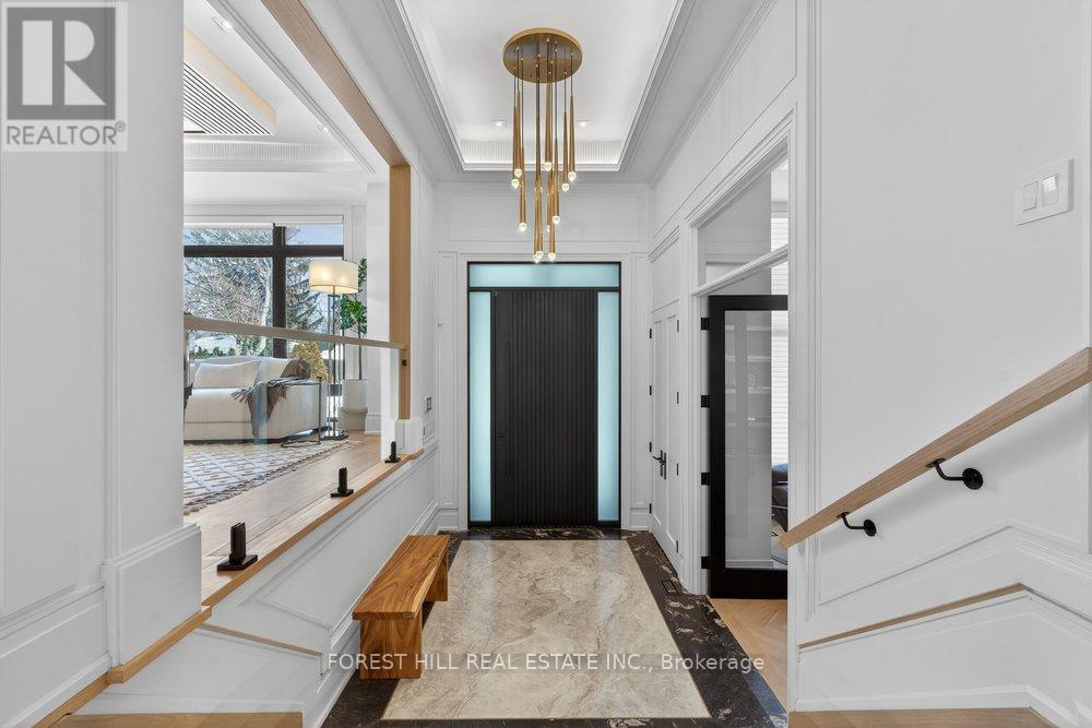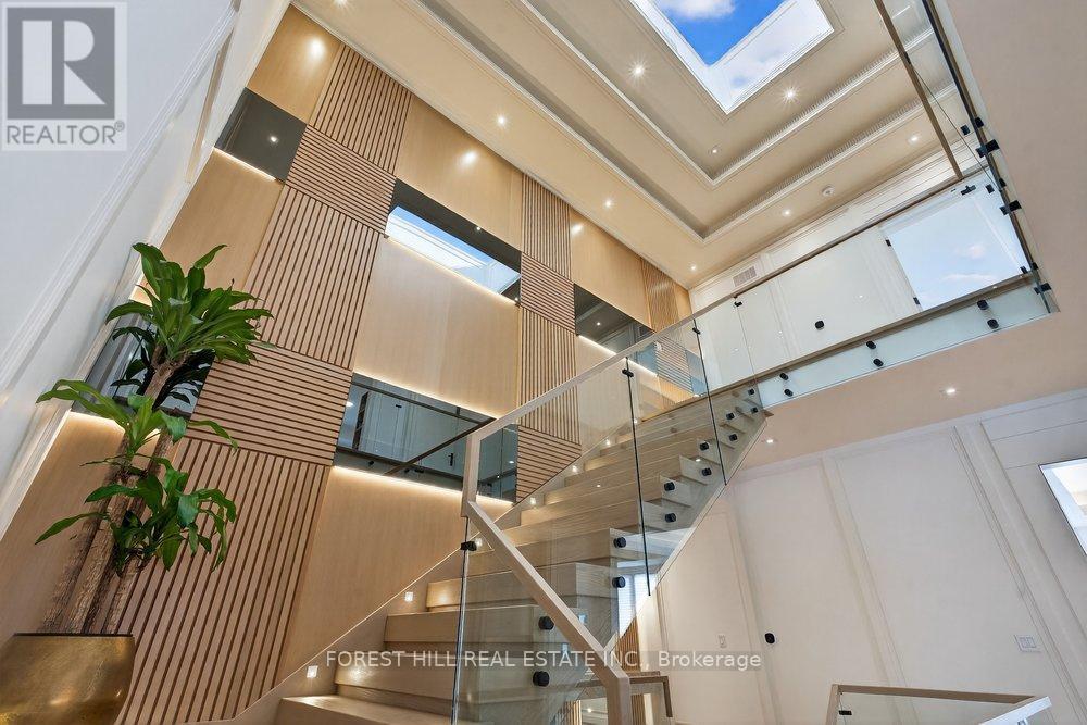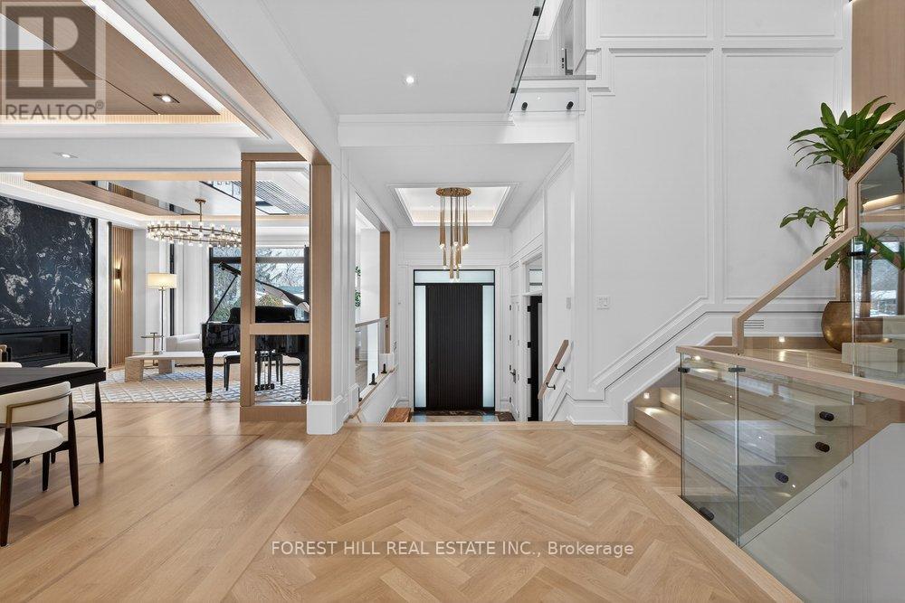 An architecturally elegant luxury transitional residence defined by exceptional craftsmanship, premium materials, and refined detailing throughout. This custom-built home offers approximately 4,831 sq. ft. above grade, plus a professionally finished walk-out lower level.(Total Appox 7000sq ft) Featuring extensive use of natural stone, Italian porcelain slabs, and bespoke tilework, the residence is further elevated by high-end finishes rarely seen in BV Striking exterior with solid mahogany front door, contemporary glass-panel garage door, and clean transitional façade. Grand foyer with quartzite slab flooring, granite borders, and brass inlay. Main level features site-finished white oak flooring, custom millwork, upgraded mouldings, and herringbone flooring in office and hallway. Dramatic extra-wide staircase with thick treads and full-height feature wall with white oak millwork, mirror accents, and integrated lighting. Chef's kitchen with La Cornue range, Wolf wall oven and microwave, plus separate prep kitchen with Wolf cooktop and Italian porcelain slab finishes. Principal rooms with feature walls, including family room fireplace clad in Italian porcelain and living room fireplace framed in granite and quartzite with custom white oak fluted millwork. Luxury finishes throughout including TOTO fixtures, Italian plumbing, designer lighting primary suite with two walk-in closets, balcony, water-vapour fireplace, and spa-like ensuite with Italian porcelain, natural stone, and Victoria&Albert soaker tub. Finished walk-out lower level with recreation room, wet bar, wine display wall, home theatre, additional bedroom/nanny suite, and second laundry. Additional features include 3-level elevator, smart home system, built-in speakers, security system, central vacuum, in-ground sprinklers, 2furnaces&2AC. Located in the Earl Haig Secondary School district.***Pls See*****3% Commission to Cooperating Brokerage(FIRM SOLD By April 15, 2026****) (id:65552)
