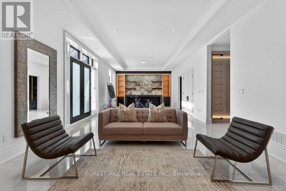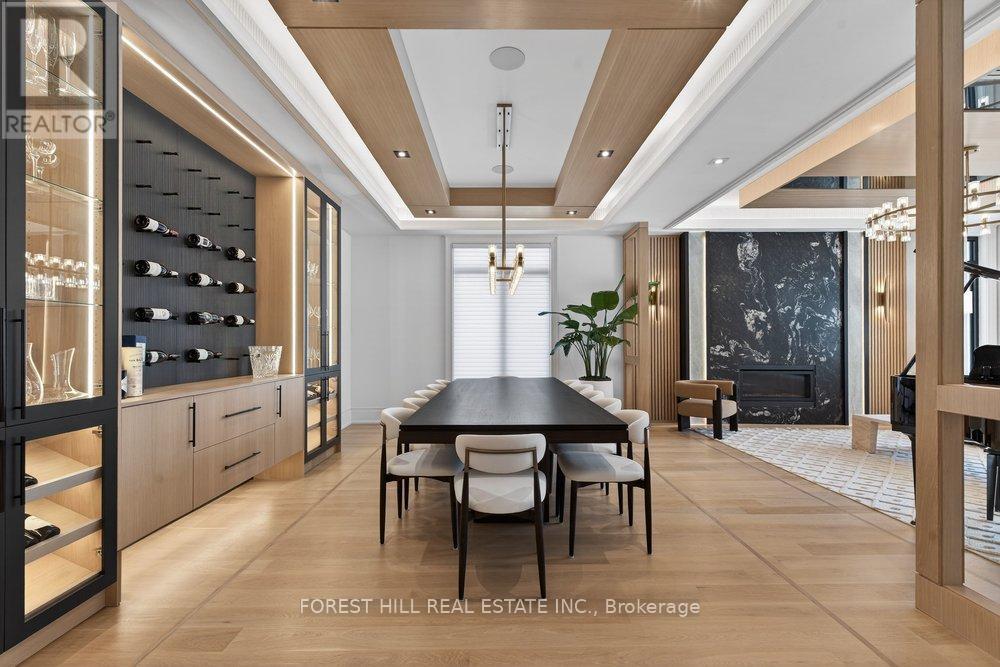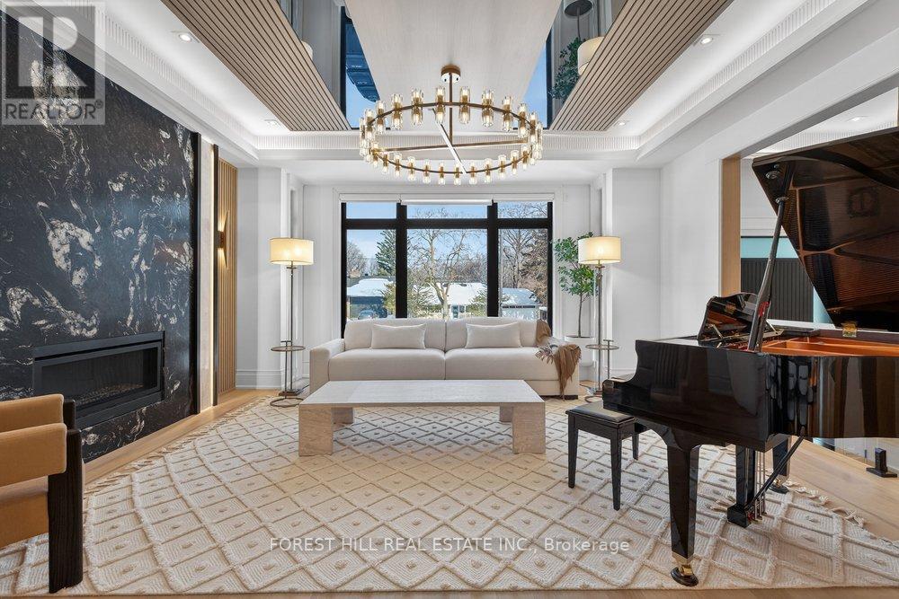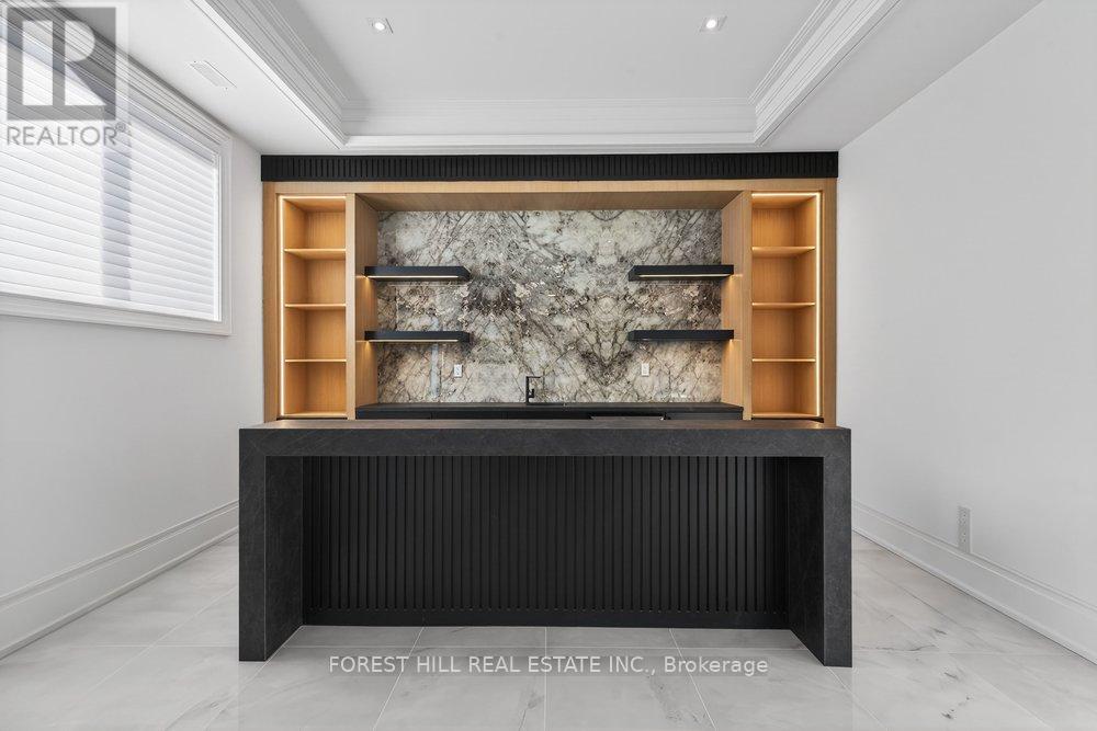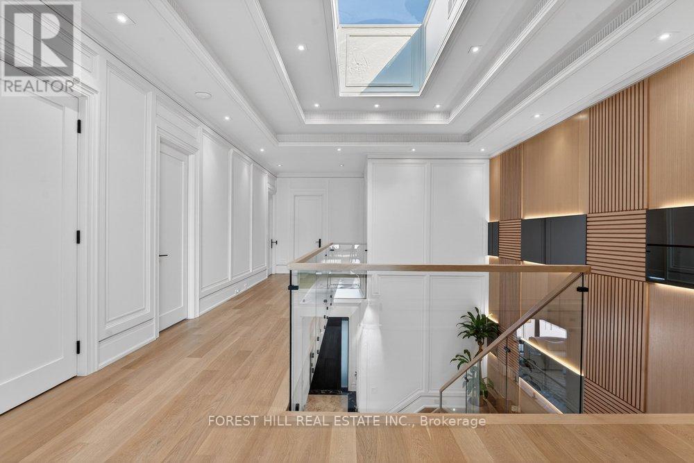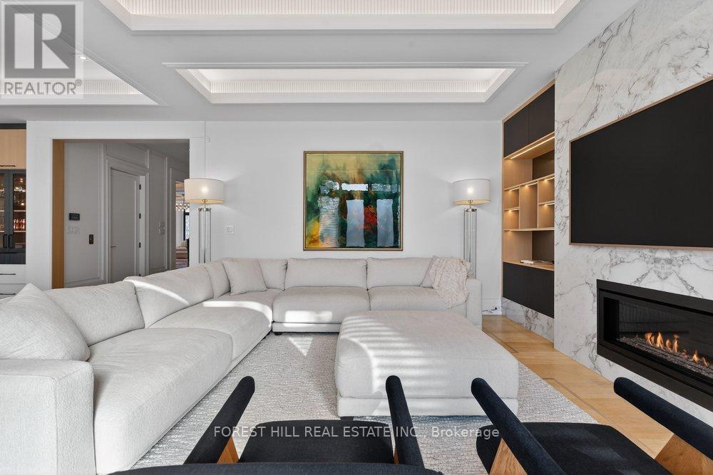 An architecturally elegant luxury transitional residence defined by exceptional craftsmanship, premium materials, and refined detailing throughout. This custom-built home offers approximately 4,831 sq. ft. above grade, plus a professionally finished walk-out lower level.(Total Appox 7000sq ft) Featuring extensive use of natural stone, Italian porcelain slabs, and bespoke tilework, the residence is further elevated by high-end finishes rarely seen in BV Striking exterior with solid mahogany front door, contemporary glass-panel garage door, and clean transitional façade. Grand foyer with quartzite slab flooring, granite borders, and brass inlay. Main level features site-finished white oak flooring, custom millwork, upgraded mouldings, and herringbone flooring in office and hallway. Dramatic extra-wide staircase with thick treads and full-height feature wall with white oak millwork, mirror accents, and integrated lighting. Chef's kitchen with La Cornue range, Wolf wall oven and microwave, plus separate prep kitchen with Wolf cooktop and Italian porcelain slab finishes. Principal rooms with feature walls, including family room fireplace clad in Italian porcelain and living room fireplace framed in granite and quartzite with custom white oak fluted millwork. Luxury finishes throughout including TOTO fixtures, Italian plumbing, designer lighting primary suite with two walk-in closets, balcony, water-vapour fireplace, and spa-like ensuite with Italian porcelain, natural stone, and Victoria&Albert soaker tub. Finished walk-out lower level with recreation room, wet bar, wine display wall, home theatre, additional bedroom/nanny suite, and second laundry. Additional features include 3-level elevator, smart home system, built-in speakers, security system, central vacuum, in-ground sprinklers, 2furnaces&2AC. Located in the Earl Haig Secondary School district.***Pls See*****3% Commission to Cooperating Brokerage(FIRM SOLD By April 15, 2026****) (id:65552)