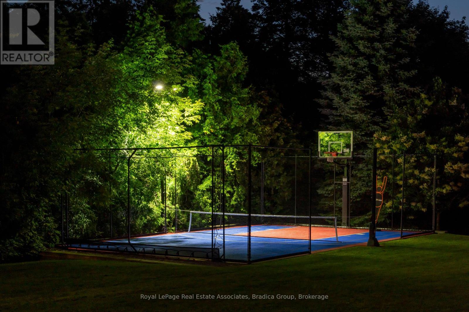 19 Lorraine Gardens is a rare estate offering the perfect blend of luxury, privacy, and resort-style living. Set on 1.676 acres, this 6-bedroom home is one of the largest remaining estate lots in all of Etobicoke. Backing onto protected green space with 60 feet of frontage on Mimico Creek, this property offers complete seclusion and an unmatched outdoor experience. The backyard is the true showpiece. A 42x22-foot heated salt water pool, outdoor kitchen, fire pit, sports court, in ground trampoline, shuffleboard, and multiple entertaining patios are surrounded by mature trees and manicured gardens. With no visible neighbours, deeded creek access, and extensive landscaping, it feels like a private resort in the city.Inside, the home offers 7,640 sq ft of beautifully designed living space plus 1,316 sq ft of internal storage. Vaulted ceilings, skylights, and oversized windows flood the main floor with natural light. The chef's kitchen with premium appliances and a large granite island flows into the great room with a two-sided fireplace and backyard views. A sun-filled four-season sunroom, formal living and dining rooms, home office, laundry room, and second kitchen add comfort and flexibility. A separate wing with two bedrooms and a full bath perfect for extended family or a teen retreat completes the main level. Upstairs, the primary suite features vaulted ceilings, a walk-in closet, a second adjacent walk-in, and a well-appointed ensuite. Two additional large bedrooms offer bright, comfortable spaces with ample storage. The finished lower level includes a gym, a recreation room with walk-up to the backyard, and a private bedroom suite ideal for guests or live-in support. Located minutes from Sherway Gardens, Pearson Airport, and top-rated schools, this home offers a one-of-a-kind lifestyle. (id:65552)