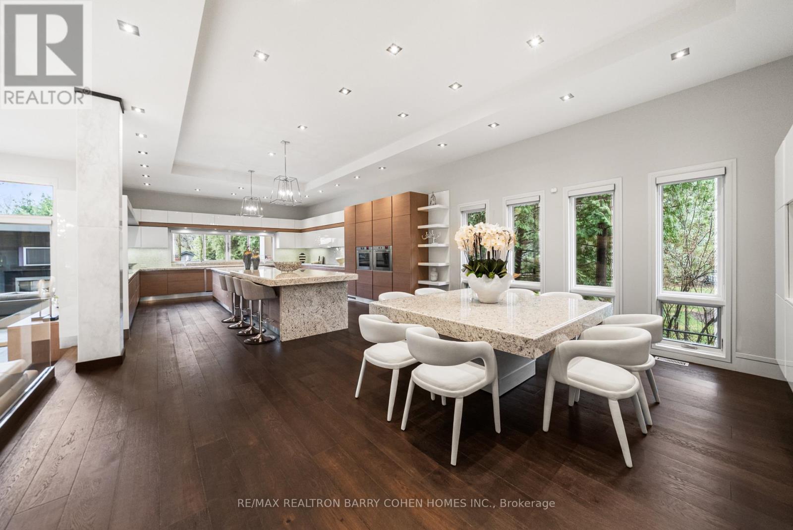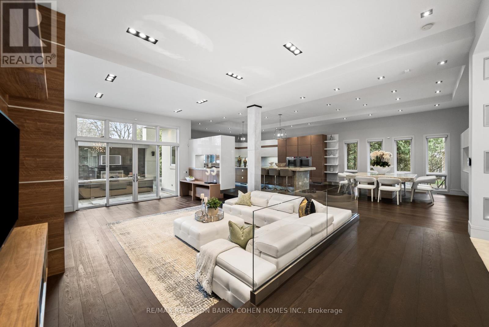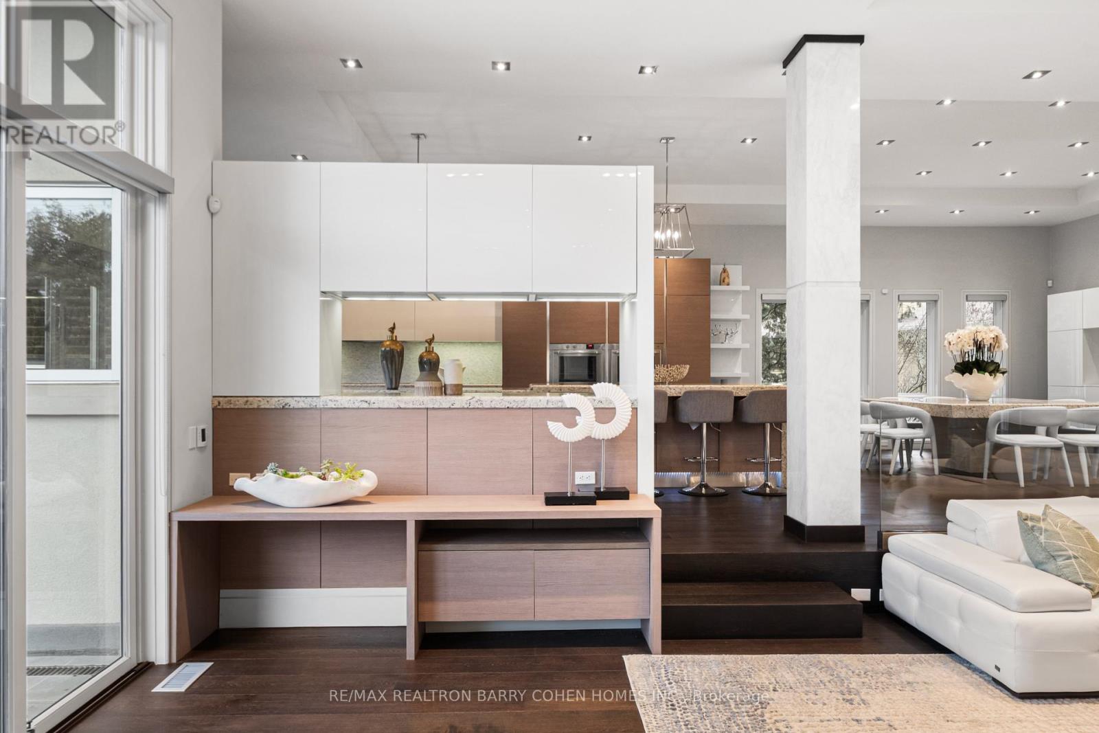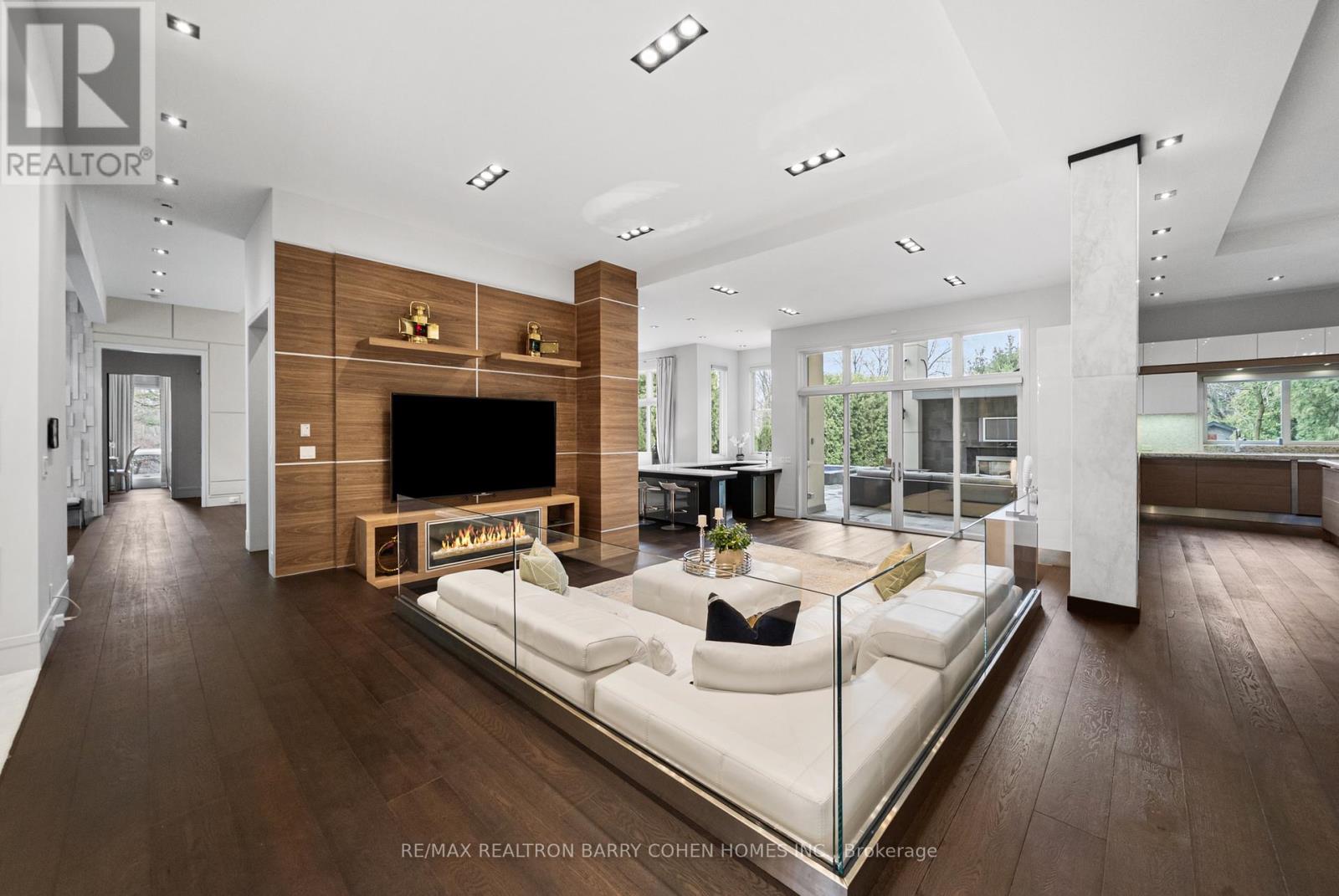 "Maison Lumière" - Bathed In Light. Defined By Design.Tucked Behind Mature Trees In Prestigious South Richvale, 19 Maryvale Crescent Is A Gated Estate Set On An Extraordinary 115 X 255 Ft Premium Lot, Offering Nearly 10,000 Sq Ft Of Refined Living Space. Designed With Intention, The Home Blends Architectural Presence With Everyday Functionality.A Dramatic Foyer Reveals A Full-Height Glass Water Wall, Setting A Tone Of Calm Sophistication. Floor-To-Ceiling Windows Fill The Interiors With Natural Light, Highlighting Chestnut Oak Floors, Rich Walnut Accents, And Sculptural Architectural Elements Throughout, Creating A Seamless Connection Between Interior And Landscape.The Main Level Features Expansive Principal Rooms, Including A Sunken Family Room With A Double-Sided Fireplace, An Elegant Dining Room With 12-Ft Ceilings, Bespoke Wall Detailing, A Custom-Built Bar, And A Chef-Inspired Kitchen Anchored By An 18-Ft Waterfall Island, Integrated Appliances, And Exceptional Flow For Both Everyday Living And Large-Scale Entertaining. A Dedicated Main Floor Office With Custom Millwork Offers A Refined And Private Workspace.The Upper Level Presents A Gallery-Style Landing, A Private Library With Terrace Access, And A Luxurious Primary Suite With A Boutique-Inspired Dressing Room And Spa-Like Ensuite Designed For Comfort And Retreat. All Secondary Bedrooms Feature Private Ensuites And Custom Built-Ins.The Lower Level Is Designed For Complete Lifestyle Living, Featuring Heated Floors, A Home Theatre, Custom Bar, Gym, Recreation Areas, And A Fully Equipped Secondary Kitchen.Outdoors, The Resort-Style Grounds Include An In-Ground Pool, Jacuzzi, Covered Terraces, And A Fireplace, All Surrounded By Mature Landscaping. A Gated Entrance With A 23-Camera System Ensures Ultimate Privacy And Security.A Rare Offering Of Scale, Design, Lifestyle, And Prestige In One Of Richmond Hill's Most Coveted Enclaves. This Is The One.