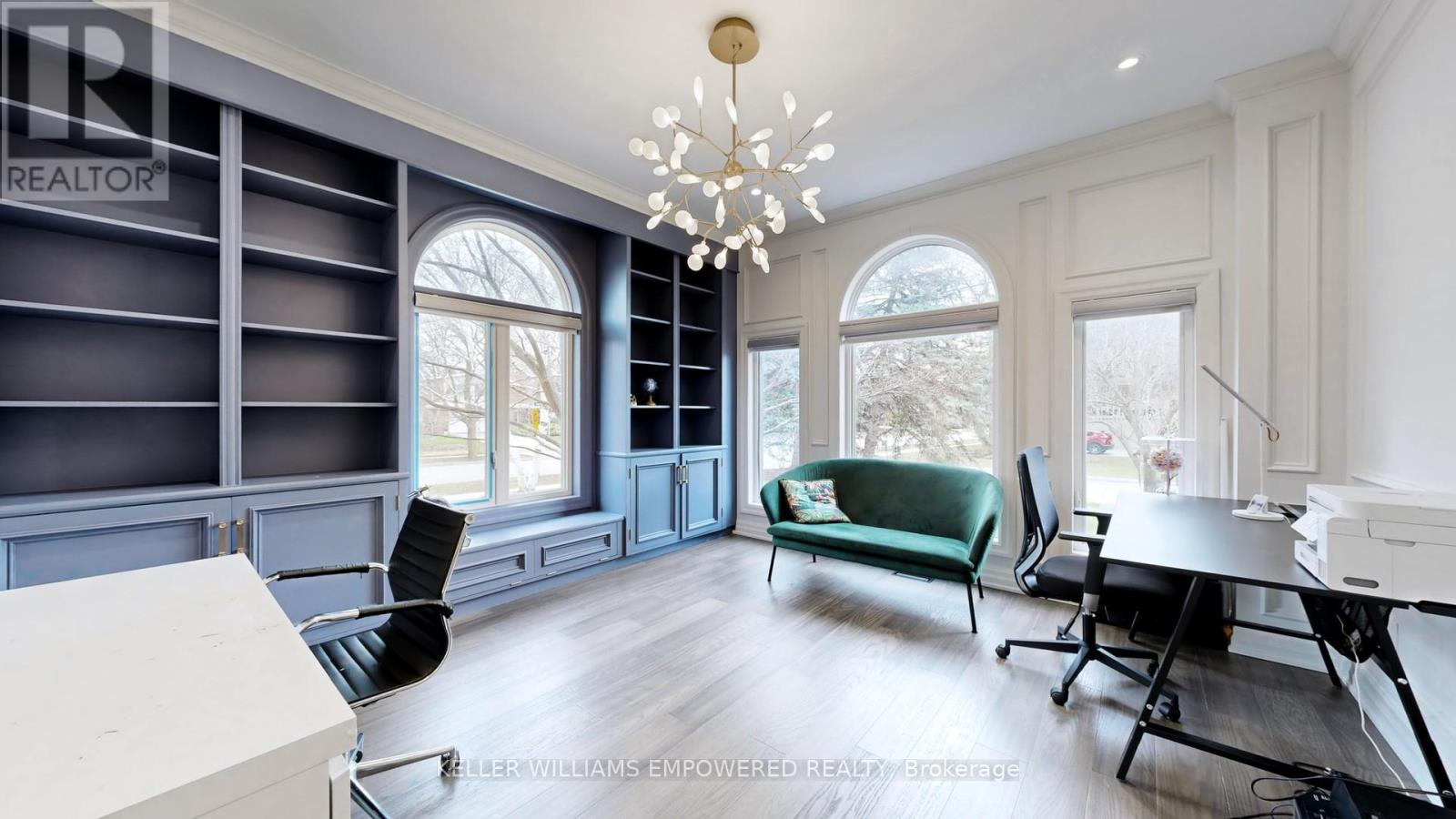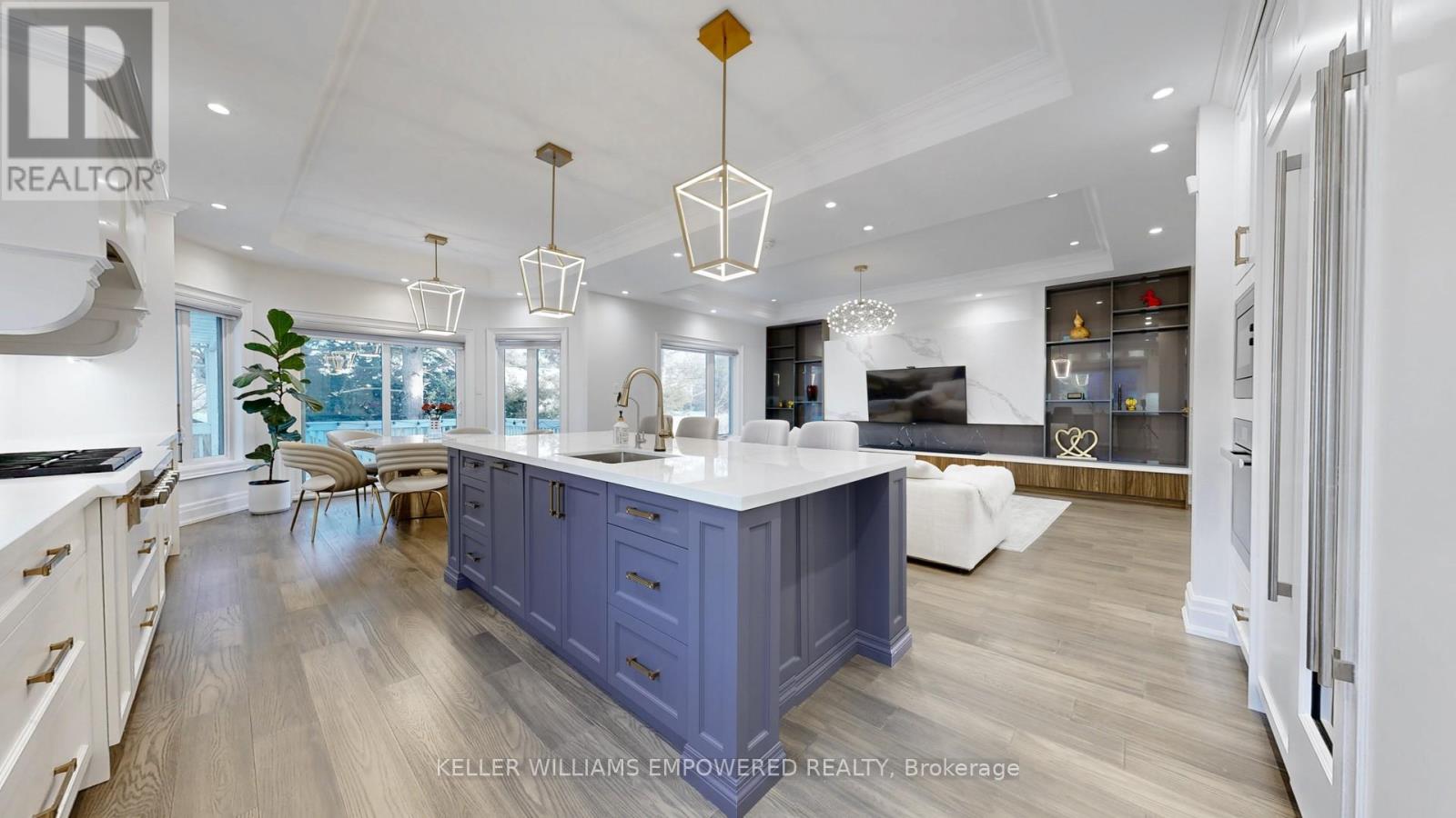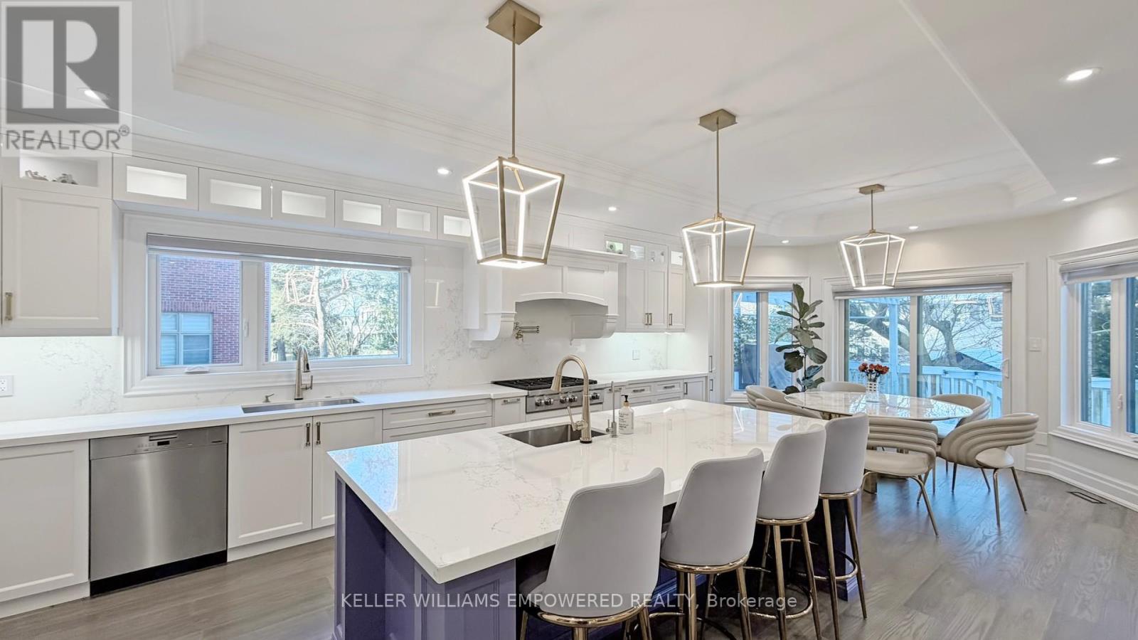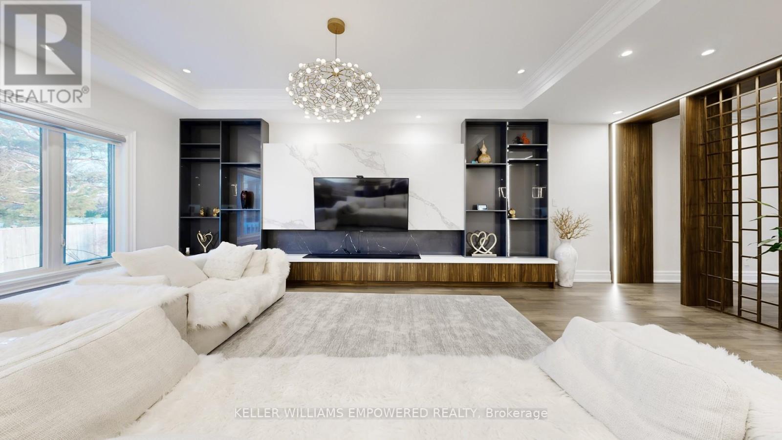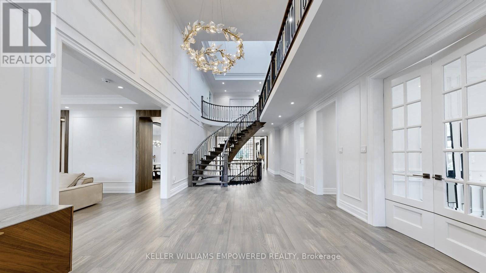 Exceptional fully renovated luxury home in prestigious Banbury-Don Mills on a prime 62 x 140 ft corner lot. Offering over 7,000 sq. ft. of finished living space, this grand detached 2-storey residence was renovated top to bottom in 2022 and features 5 bedrooms, 7 full bathrooms, an open-to-above foyer, elegant spiral staircase, expansive principal rooms, large windows, and skylights. The gourmet eat-in kitchen includes a pantry, breakfast area with walk-out to deck that leads to the side garden, and premium appliances including Wolf, Sub-Zero, Vent-A-Hood, and Miele. Main floor office/library with French doors and built-in shelves. Luxurious primary retreat with sitting area, custom dressing room, and spa-like 5-piece ensuite. Fully finished basement with home theatre, gym, sauna, second kitchen, and walk-up. Includes 2 laundry areas, 2 furnaces, 2 A/Cs, 3-car garage, circular driveway, and parking for up to 15 cars. Close to Edwards Gardens, Granite Club, and top private schools including Crescent, Crestwood, and TFS. (id:65552)
