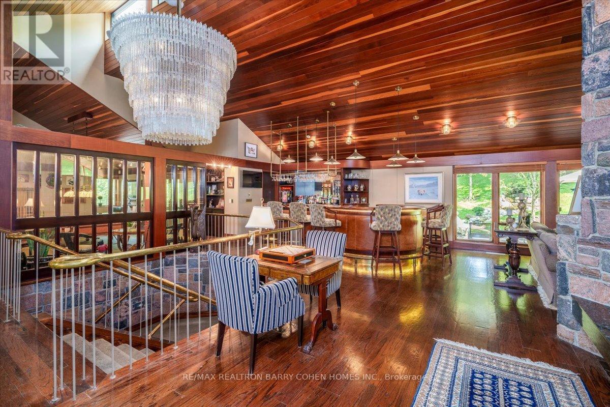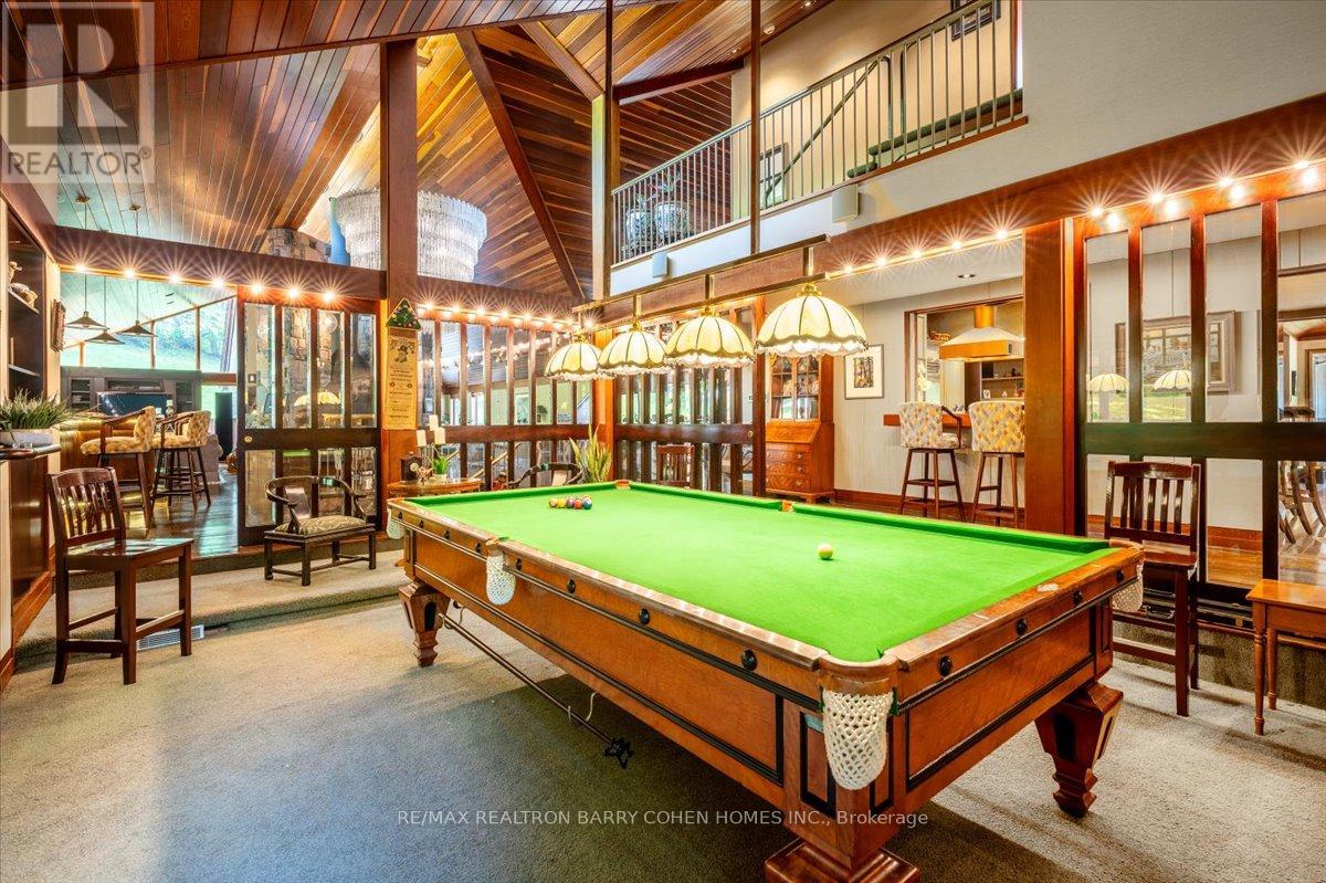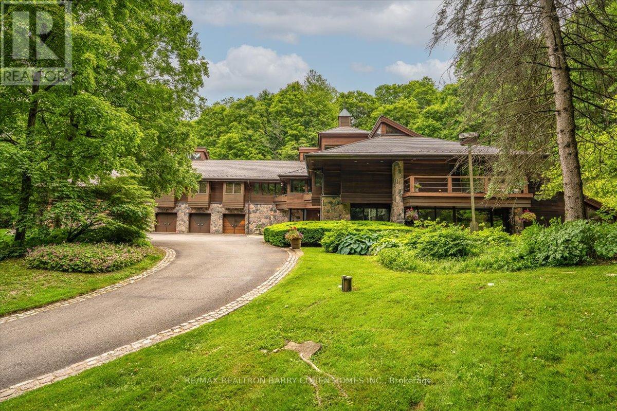 A Rarely Offered 15,000SqFt Prestigious Estate On An Exclusive Cul-De-Sac Bordering Aurora's Exclusive Beacon Hall Golf Club. Nestled Amid A Premium 4-Acre Lot! The Property's Severance Potential Provides An Added Investment Opportunity. The Existing Estate Is An Architectural Marvel. Designed By Famed Architectural Firm Laszlo Nemeth Associates & Features Outstanding Indoor & Outdoor Entertaining Spaces Including Covered Outdoor Kitchen W/Multiple Terraces, Majestic Lawns & Forests, Plus A Bridge Leading To The Tennis Court & Tennis Pavillion. An Additional Outdoor Hot Tub Sits Beside The Swimming Pool, Highlighted By A Cascading Waterfall Feature. The Great Rm Centres Around A Striking 20ft+ 4-Sided Floor-to-Ceiling Stone Fireplace Crowned By Vaulted Ceilings & Surrounded By Wall-To-Wall Windows W/Multiple. A Large Bar, Sunken Billiard Rm, Family Rm, Grand Dining Rm & Gourmet Kitchen Complete The Main Floor Entertaining Spaces. Main Floor Primary Suite Boasts His & Hers Dressing Rooms, Spacious 9-Piece Ensuite & Private Stair To The Indoor Pool Complex Complete W/ Grotto Hot Tub W/Waterfall, Walkout To Rear Gardens, Full Service Bar & Spa Zone Featuring Marble Steam Room, Sauna, Shower Rm & Exercise Room. The Main Floor Bedrm Wing Features 2 Additional Bedrooms W/Ensuites, Spacious Office W/ Wet Bar & Powder Rm, Games Rm, Laundry, Guest Wing W/2 Bedrms Plus Ensuites. The Top-Floor Office, Complete W/An Adjacent Washroom, Presents An Idyllic Workspace Filled W/ Natural Light While Also Offering Excellent Potential To Be Converted Into An Additional Bedrm. Included Is A 1-Bedrm Self-Contained Apartment W/Separate Entrance For In-Laws Or Staff Including Kitchen, Bathrm & Living Rm. A Rare Offering W/Unmatched Amenities, Luxurious Privacy, Investment & Development Potential, Conveniently Located Close To St. Andrew's College, St Anne's School, The Country Day School, & Villanova. Steps to Beacon Hall Golf Course, Close To Magna Golf Club & Several Club Link Courses. (id:65552)