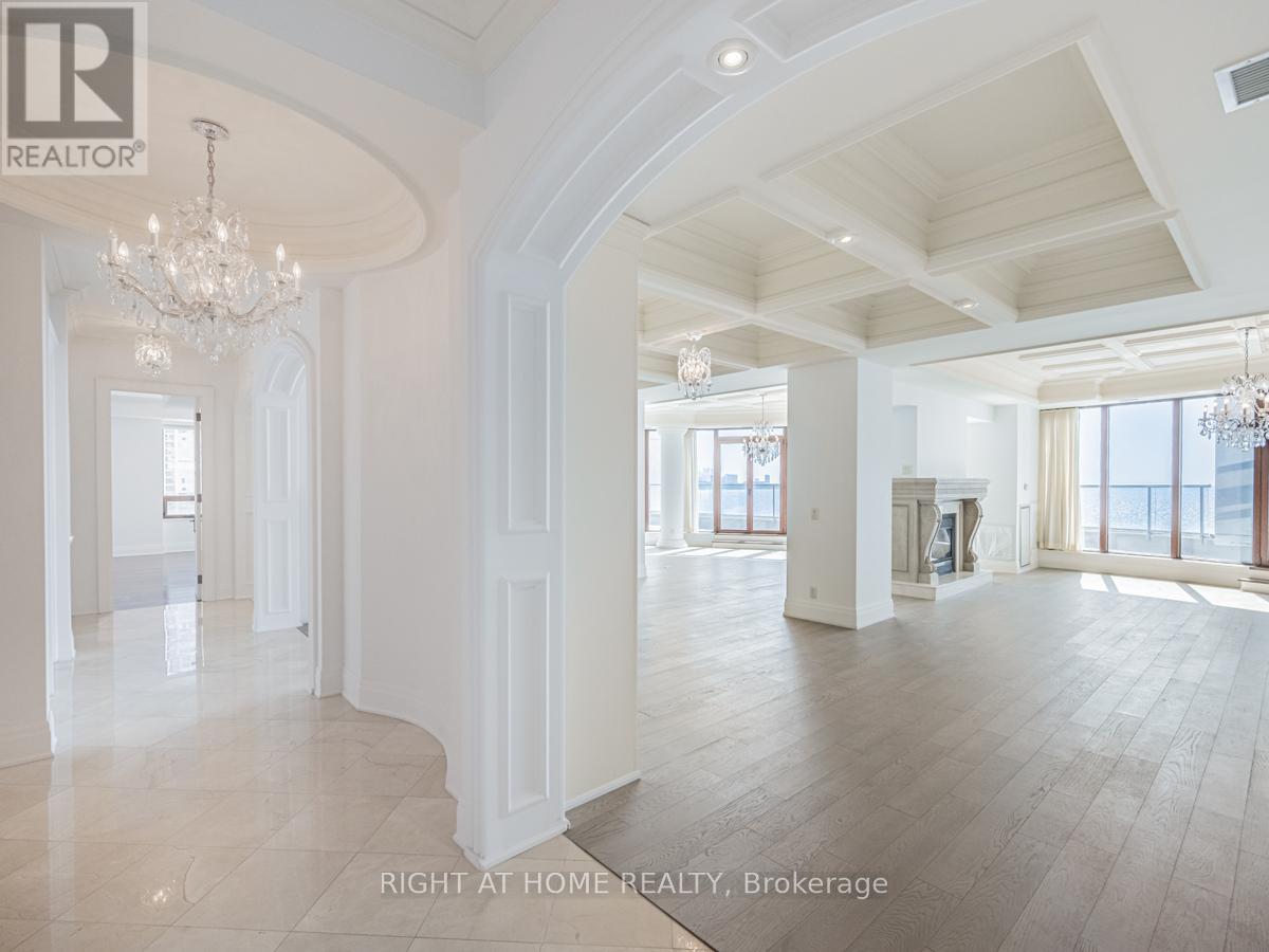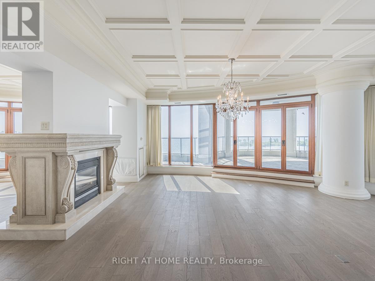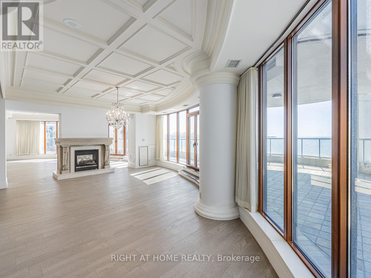 Discover the epitome of luxury at Waterford Boutique Condo. This extraordinary penthouse is a rare gem, featuring over 4,500 sqft of lavish living space, 10' high ceilings adorned with intricate crown molding. 2 elevators leading directly to your door. Gourmet kitchen w/ top-of-the-line appliances. Grand marble entranceway, 3 cozy gas fireplaces, Custom-built closets and a spectacular 1,331 sqft terrace with 4 walkouts, BBQ connection and water hookup.The penthouse offers Breathtaking Panoramic view of Lake Ontario and the Toronto skyline. Don't let this exclusive opportunity to experience true luxury living slip away. **EXTRAS** Cedar wine cellar that accommodates up to 1,000 bottles; 4 Prime Parking (2 W/Linear garage door closure for extra privacy & protection), 2 private Locker Rooms right behind the parking spots, purchase price includes all Crystal Chandeliers (id:65552)