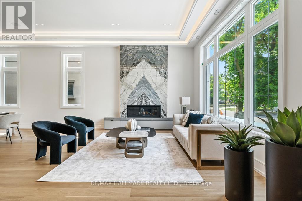 Exceptional Custom Home in Willowdale. A true masterpiece of design, quality, and craftsmanship. Featuring soaring 12-ft ceilings on the main floor, 10 ft on the second, and 9 ft in the basement, this sun-filled home boasts a perfect balance of grandeur and warmth. The elegant main floor welcomes you with a heated foyer, formal living and dining rooms with a feature marble fireplace, and a private office ideal for working from home. The chef-inspired kitchen is equipped with premium Thermador appliances, including a built-in coffee machine, oversized fridge/freezer, gas cooktop, and a walk-in pantry with a built-in beverage cooler. The open-concept family room and breakfast area walk out to an extra-large deck with glass railing and a professionally landscaped backyard with built-in outdoor speakers, perfect for indoor-outdoor living. State-of-the-art home automation includes built-in audio in the family room, kitchen, dining room, primary bedroom, ensuite bathroom, basement rec room, and backyard. Additional features include a video surveillance system with 4 exterior cameras, an intercom system on both levels, and two zoned HVAC systems with smart thermostats. Upstairs, the luxurious primary suite features a spa-like 5-piece ensuite with a heated floor and an oversized walk-in closet. The second and third bedrooms each enjoy their own 4-piece ensuite bathrooms and walk-in closets. A central skylight brings natural light into the upper hall. The fully finished basement with radiant heated floors includes a guest bedroom, full 3-piece bathroom, bar with island and wine rack, and a spacious recreation area ideal for a home gym, theater, or in-law suite. Additional highlights include: Heated front porch and front steps for winter safety, Two independent HVAC systems, Smart lighting control throughout main areas and exterior, Premium finishes and materials throughout, and masterpiece lighting design. An unmatched offering--this home must be seen to be truly appreciated