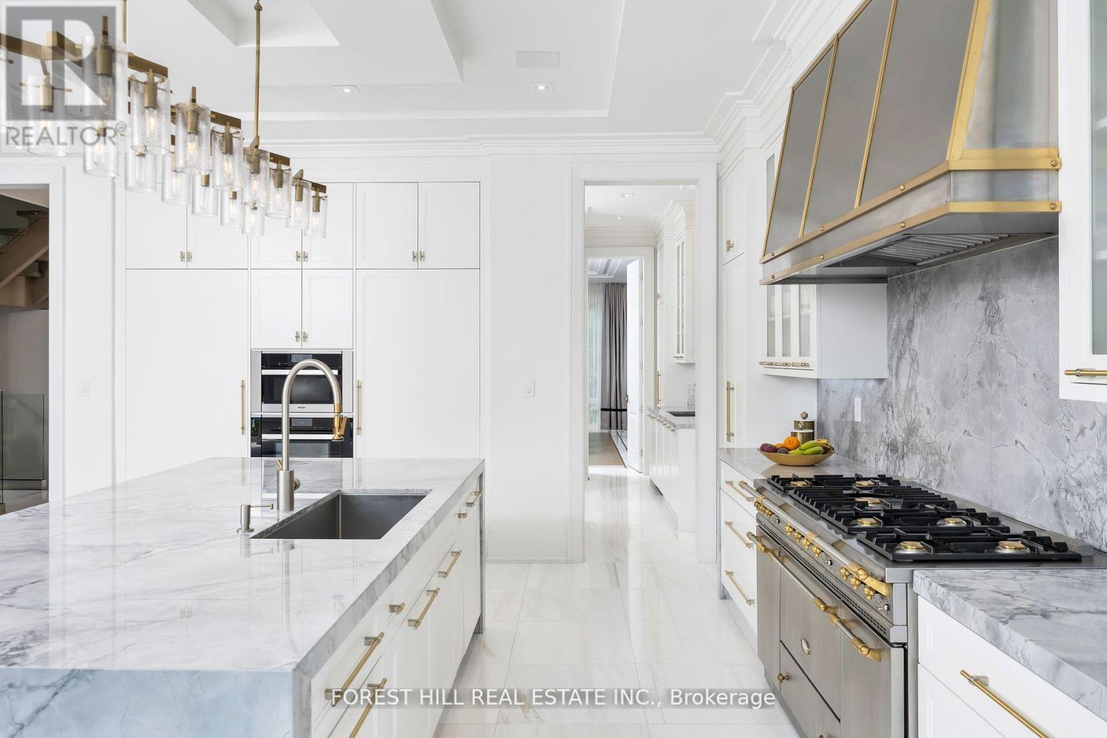 Welcome to an exceptional residence of unparalleled craftsmanship in the heart of prestigiousLytton Park. Masterfully designed by architect Lorne Rose, 239 Cortleigh Boulevard is a 5 bed, 7 bath home with a seamless blend of artistry and the finest of materials across all 8,285 sqft of living space. Upon arrival, a heated limestone walkway leads to an opulent entrance framed by a limestone facade, where a grand foyer captivates with heated white marble flooring in laid with metal accents. Custom stone, velvet paneling, mirrored surfaces, and brass fixtures set a tone of luxury. The formal dining room features a striking marble fireplace and a built-in marble wine wall. The kitchen is a culinary showpiece with a large marble island, matching countertops and backsplash, a Lacanche gas range, Sub-Zero paneled fridge and freezer, Miele appliances and a butlers pantry. The adjoining family room has a custom marble feature wall with gas fireplace and 12-foot sliding glass doors opening to a heated covered terrace with an outdoor kitchen. The backyard is a private oasis featuring a limestone patio, irrigated landscaping, and a custom concrete pool with waterfall and hot tub. The opulent second floor primary retreat features bespoke millwork, marble gas fireplace and a wet bar. The spa- inspired suite features a white marble heated floor and a walk-in spa shower. Dual walk-in closets, complete with a backlit onyx stone island, custom cabinetry, and an Onyx makeup station are dazzling. The four additional bedrooms are impeccably appointed featuring ensuite baths, heated floors, and designer finishes. The lower level is an entertainers paradise, boasting a home theatre, a sleek marble bar, and a full-size gym. A cabana-style change room allows for direct pool access, plus a nanny suite and secondary laundry. Every detail in this stunning residence has been meticulously curated to deliver an unparalleled living experience just moments to extraordinary amenities. (id:65552)