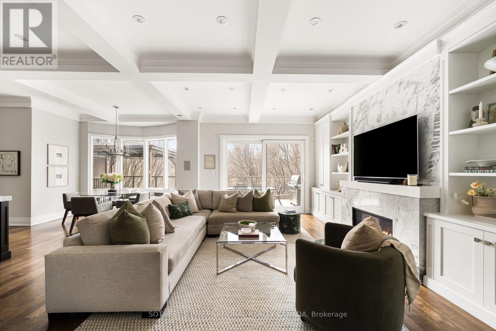Positioned on one of Governor's Bridge's most coveted lots, 24 True Davidson Drive is a home of rare distinction- where thoughtful design, impeccable craftsmanship & a breathtaking natural setting come together in perfect balance.This 5,500sf residence offers an elevated living experience defined by scale, light & seamless indoor-outdoor flow, all set against the serenity of a private ravine backdrop. A classic arched door opens to a grand foyer with 10-ft ceilings & refined architectural details. At the front of the home, formal living & dining rooms provide elegant, generously scaled spaces suited to both intimate gatherings & large-scale entertaining. The custom kitchen, with coffered ceilings, a large island, & high-end appliances, connects to a bright breakfast area with floor-to-ceiling windows overlooking the outdoors. The adjacent family room features custom built-ins, a granite-wrapped gas fireplace & a walkout to an expansive terrace with dedicated dining & lounge areas. Upstairs, a curved staircase leads to a private retreat. The primary suite features a gas fireplace, 2 walk-in closets, a private balcony with seasonal skyline views, & a marble-appointed 5-piece ensuite. Three additional bedrooms are spacious & bright, complemented by a 5-piece bath & a convenient laundry room. The 3rd floor adds flexibility, currently configured as a large bedroom with a 4-piece bath- easily converted to 2 bedrooms or a gym. The walkout lower level is designed for entertaining, with a built-in bar, gas fireplace, large rec space, mudroom with garage access & a 3-piece bath. The professionally landscaped backyard offers a private, resort-like setting backing onto a lush ravine with an impressive saltwater pool & hot tub surrounded by mature trees. The home also features a heated private drive & 2-car garage. Located in one of the city's most sought-after school districts & surrounded by the area's most beloved amenities, including Evergreen Brickworks & Summerhill Market. (id:65552)