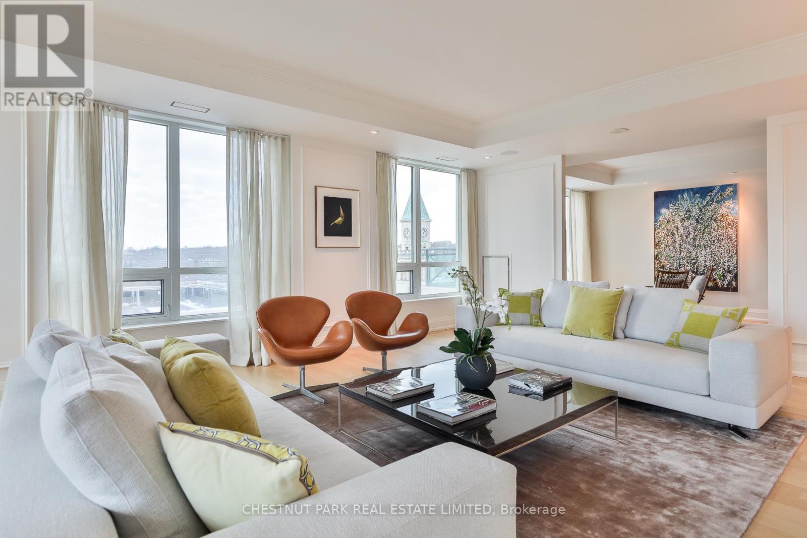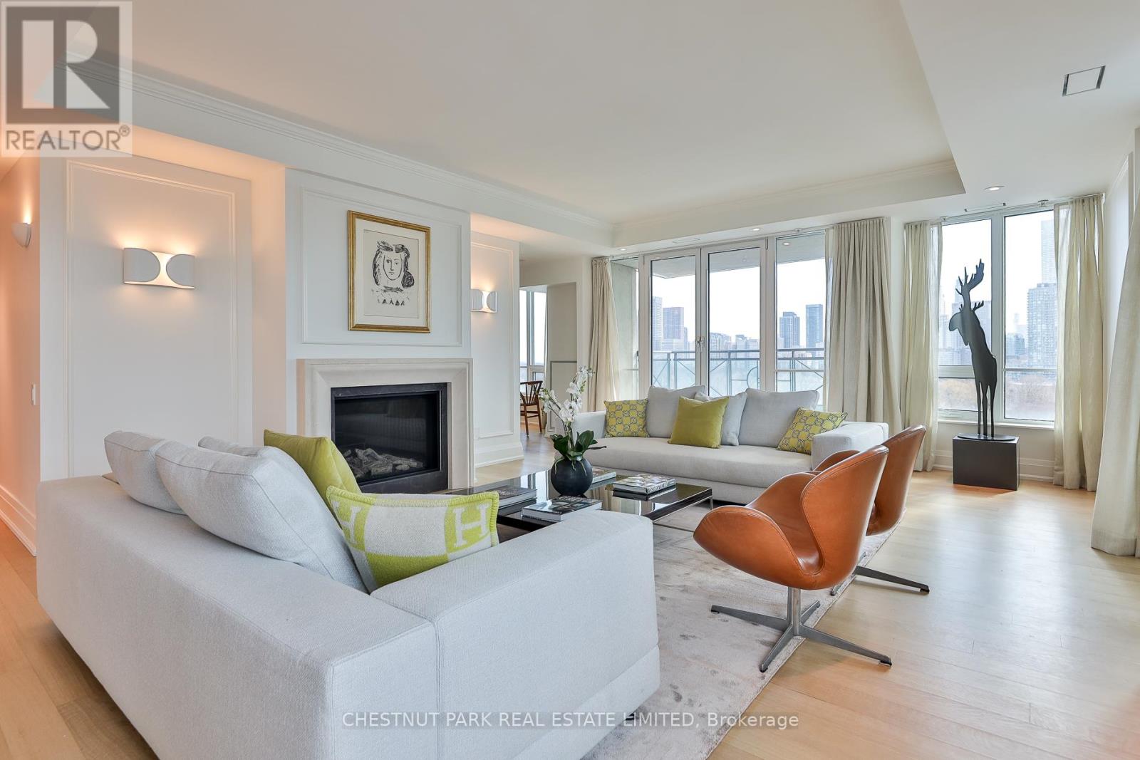 This superbly styled luxury residence awaits you! Rarely available, this 2+1 bedroom suite has been transformed through a complete high-end renovation. This sophisticated, sun-filled southwest corner unit in Thornwood 2 offers the space you've been dreaming of in one of Toronto's finest boutique condominium buildings, complete with its own dedicated elevator. Classically designed with beautiful modern finishes, the suite features premium fixtures and European appliances, solid white rift-cut oak flooring throughout, and curated designer lighting. The living, dining, and kitchen areas are ideal for entertaining. The living room is a palatial space, complete with a new gas fireplace, built-in speakers, and a walk-out to a private balcony. The expansive gallery-style dining room, located off the generous new foyer, showcases sweeping west-facing views and a full library with gallery-inspired art walls and lighting. The large eat-in kitchen features wall-to-wall oak cabinetry, top-of-the-line built-in appliances, and marble countertops overlooking the breakfast area and city views of the lake. The superb primary south-facing bedroom retreat offers exceptional comfort and tranquility, with two new walk-in closets and a luxurious five-piece ensuite. Thornwood 2 is renowned for its prime Central Rosedale/Summerhill location. Enjoy fabulous views and first-class amenities, including 24-hour concierge, valet parking, and guest suites, all designed to cater to your every need and create a true oasis in the heart of the city. Steps to exquisite shops, fine dining, and the Yonge Street subway. Don't miss this opportunity to experience luxury living in one of Toronto's finest condominium residences.