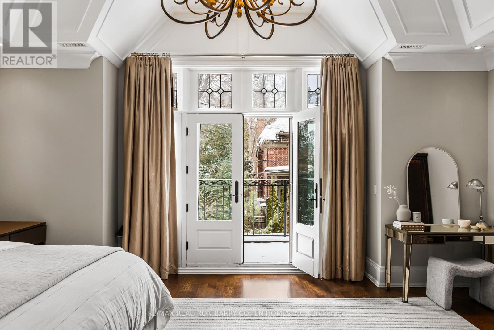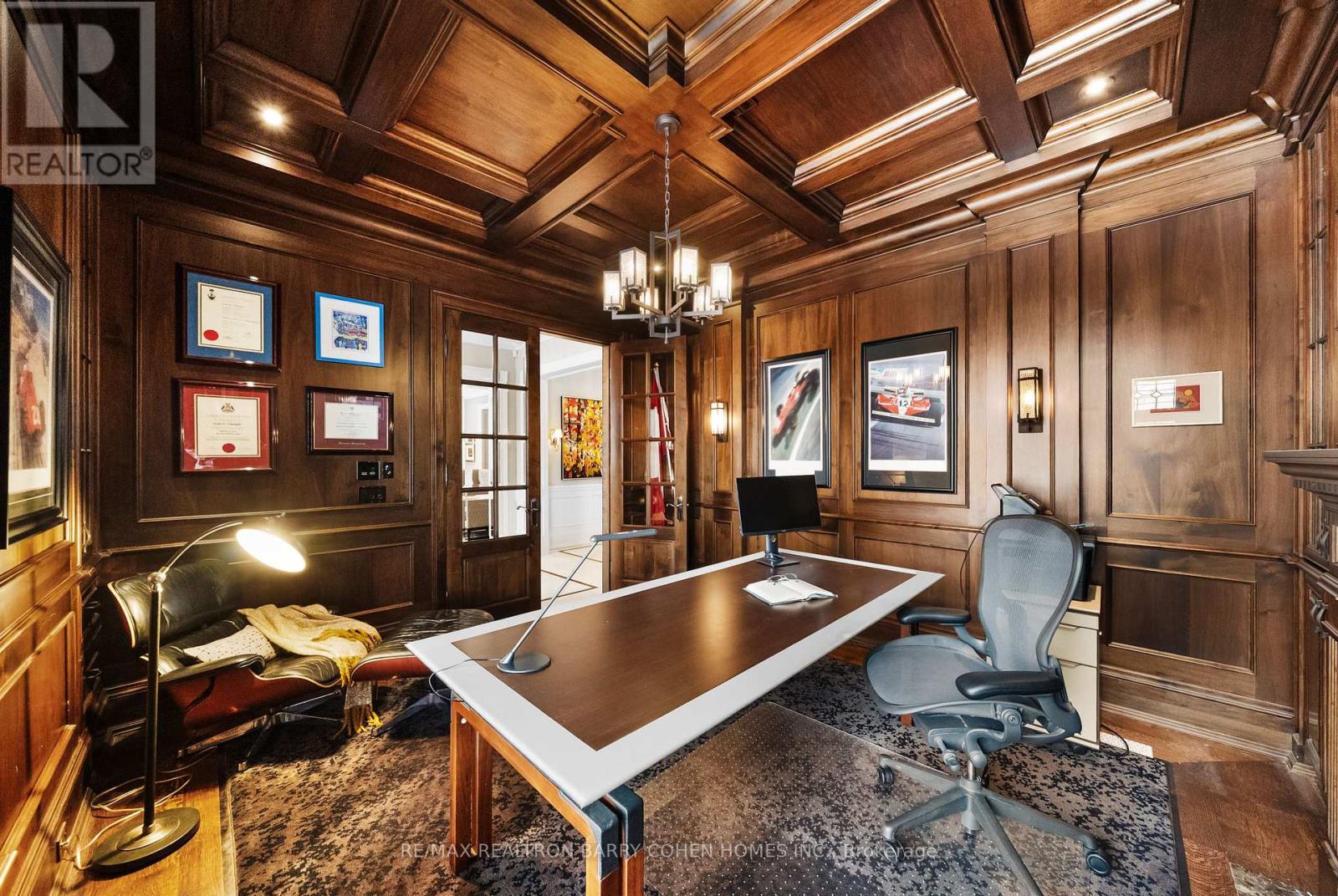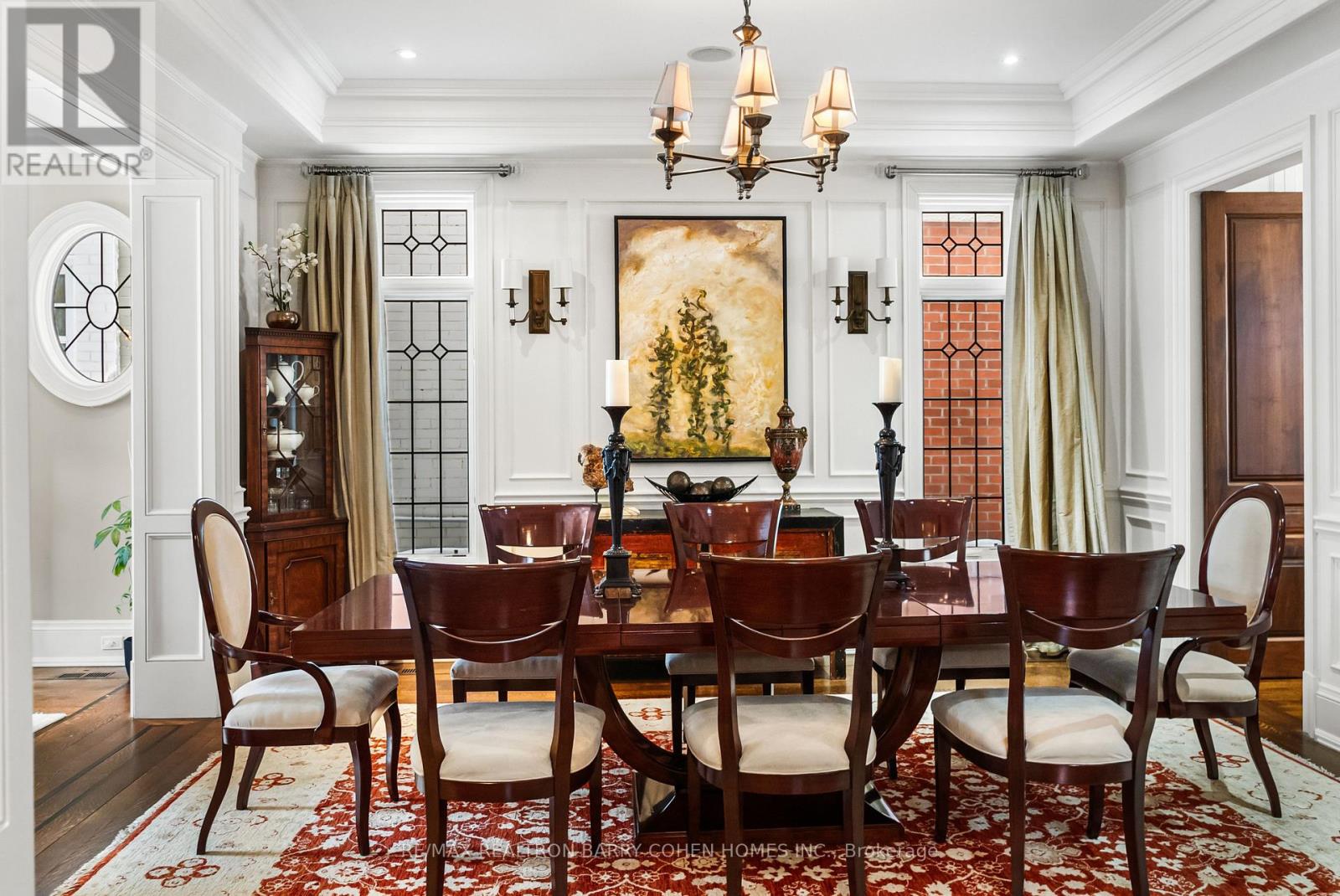 A rare offering in prestigious Lawrence Park, this exceptional residence showcases unparalleled craftsmanship, architectural pedigree, and enduring value, offered for the first time since 2012. Designed by renowned architect Lorne Rose, this distinguished Tudor-inspired home sits on a prime 50 x 150 ft lot. Built with superior materials including Indiana limestone, solid brick, cedar shingle roofing, copper detailing, and leaded glass windows, the home reflects a rare level of quality and permanence. A grand hand-crafted stone portico, mahogany entry, and fully heated driveway, steps, and walkways provide both prestige and year-round convenience, complemented by mature landscaping, irrigation, lighting, and integrated security. Inside, refined detailing defines every space, including 10 ft ceilings on the main level, 9 ft ceilings above and below, heated marble floors, custom millwork, coffered ceilings, rich hardwood flooring, copper plumbing, and sound-insulated construction. Principal rooms are elegantly proportioned for both entertaining and family living. The chef's kitchen features premium appliances and bespoke cabinetry, opening to an oversized family room with coffered ceilings, fireplace, and walk-out to a private stone terrace. The upper level offers five full bedrooms, a rare and highly desirable layout, each with soaring 11+ ft ceilings, custom detailing, and spa-inspired ensuites. The primary retreat features vaulted ceilings, marble finishes, steam shower, and private outdoor access. The fully finished lower level with radiant heated floors includes a large recreation room with walk-out, wet bar, wine cellar, guest or nanny suite, and ample storage. Complete with a rare three-car garage, this home offers timeless design and long-term value. Ideally located steps to Toronto's most prestigious private schools, the Granite Club, Bayview Avenue, Highway 401, and surrounding parks. (id:65552)