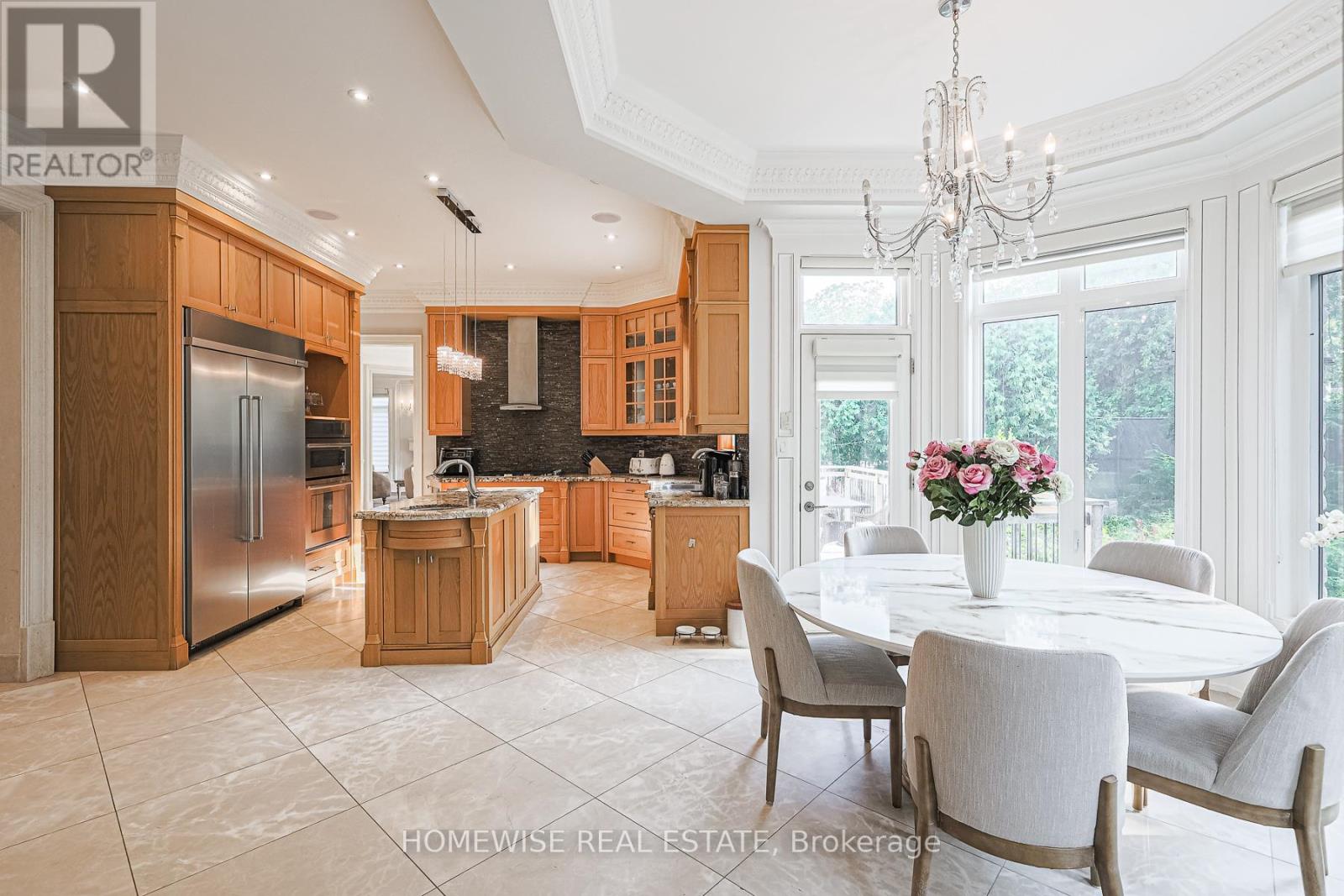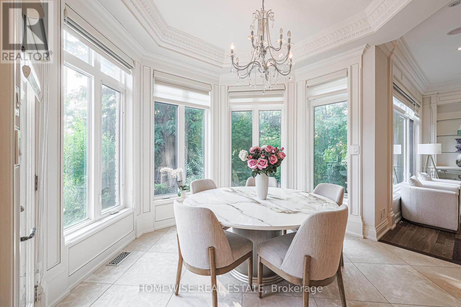 Welcome to this exquisite custom-built luxury residence, a true masterpiece offering timeless elegance and modern convenience. Set on a rare 100-foot wide by 220-foot deep lot, this stunning home features over 5,586 sq. ft. of refined living space, plus an additional 2,636 sq. ft. finished walk-out basement that opens to a private Outdoor Oasis. Beyond the dramatic curb appeal and auto-gated entry, you'll find an impeccably designed home showcasing top-tier luxury finishes throughout. The grand two-storey foyer with skylight sets the tone for soaring ceilings, rich Brazilian cherry hardwood, and heated marble floors. The gourmet chefs kitchen is open to the breakfast area with walkout and overlooks the spacious family room complete with fireplace and custom built-ins. Additional highlights include an elevator, a main floor library, and five fireplaces throughout. Enjoy two lavish primary retreats, each with gas fireplaces, walk-in closets, and luxurious 5-piece ensuites. The lower level is ideal for entertaining and relaxation with a recreation room, gym, nanny or guest suite, roughed-in home theatre, and direct walkout to the expansive garden and pool. Additional features include two furnaces, A/C, and close proximity to top-rated schools, Bayview Village, York Mills Plaza, and Highway 401. (id:65552)