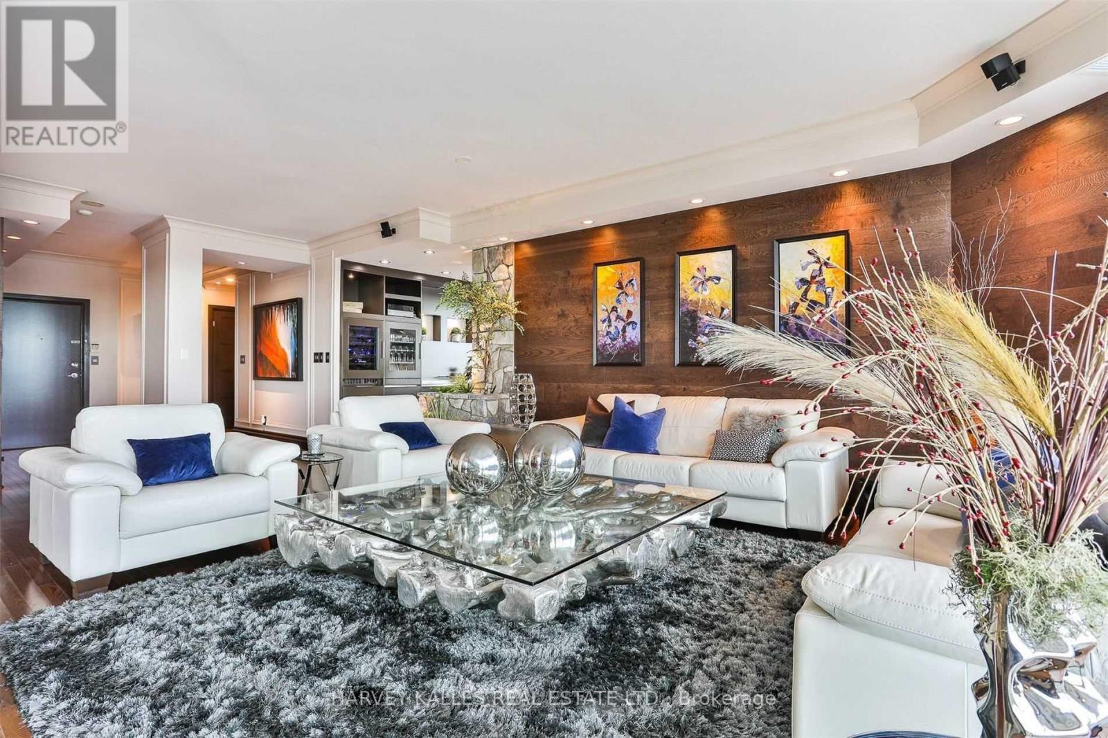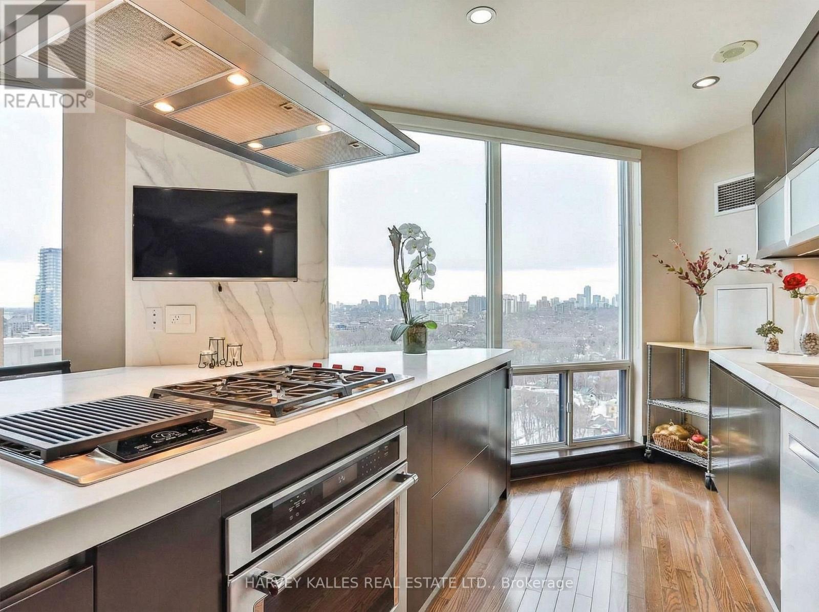 Framed by the endless green canopy of the Rosedale Ravine, this residence commands one of the most coveted vantage points in Toronto. Spanning over 3,000 Sq.ft., it is designed with both elegance and ease in mind. Floor-to-ceiling windows flood the space with natural light, framing uninterrupted majestic views of the Ravine and beyond, while travertine and custom wood-accent walls add warmth and timeless sophistication. The thoughtful split-level layout strikes the perfect balance between connection and privacy, featuring expansive principal rooms, a cozy family room with fireplace, and a chefs kitchen appointed with a Wolf Gas Cooktop, Stainless Steel Appliances, Wine and Beverage Fridges, and a splendid Centre Island with integrated storage making meal prep effortless. A custom-designed servery enhances both everyday living and grand entertaining, while the surround-sound system and independent temperature control zones elevate comfort and convenience. New Hardwood Flooring throughout main living areas. The primary suite is a private retreat, with a sitting area and fireplace, a resort-worthy five-piece ensuite with jacuzzi, a walk-in closet with custom organizers, and a walkout to a private balcony. Two Parking Spaces with EV chargers, all-inclusive Maintenance Fees, and a walkable location in the heart of Toronto mere steps to Yorkville complete this exceptional offering. Residents also enjoy access to the indoor pool, guest suites, and an impeccable 24/7concierge. (id:65552)
