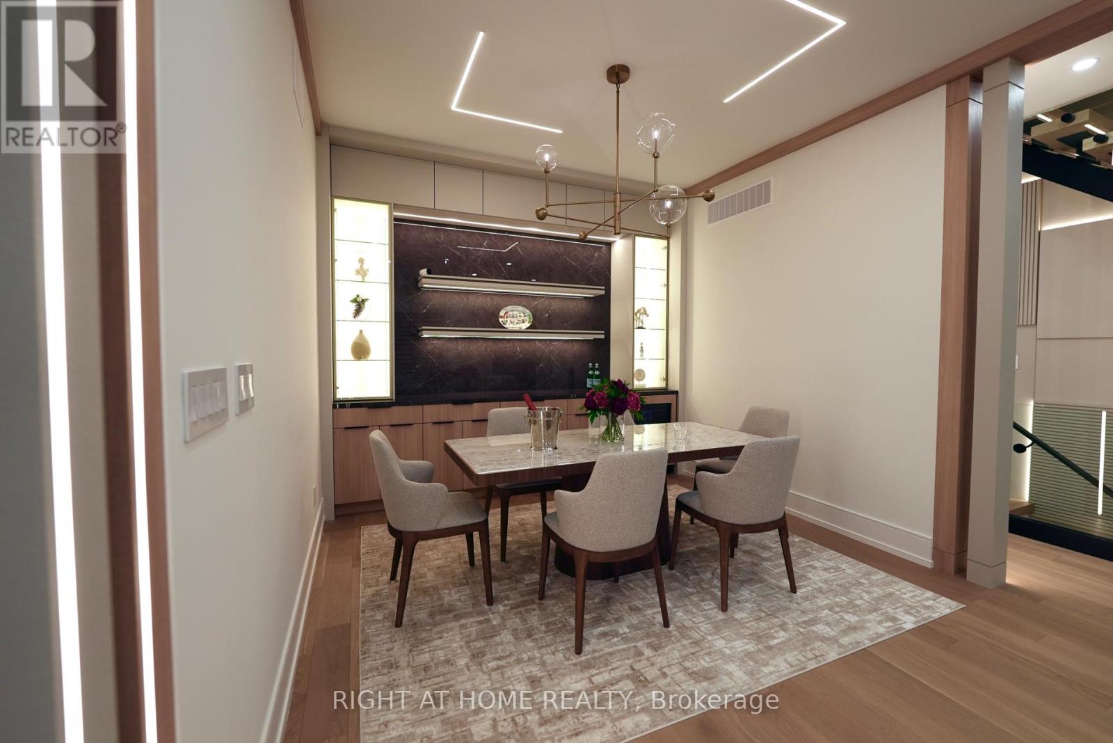 A RARE OFFERING on an impeccable brand new custom residence in the Kingsway, one of Etobicoke's finest and highly sought-neighbourhoods known for its vibrant family-oriented community, top schools, and walkable neighbourhood charm. This grand three-story home boasts over 5,000 square feet, perfectly designed for a growing family-offering generous gathering areas, comfortable private spaces, and room to create lasting memories together. The ground floor showcases an elegant layout, highlighted by stunning fireplace and exquisite custom millwork. The chef-inspired kitchen features a spacious eat-in island, premium built-in appliances, and abundant prep and storage areas. Seamlessly connected living and dinning areas create an airy, flowing environment idea for everyday living. Upstairs, the primary suite offers a tranquil retreat with a private balcony, custom walk-in closet & make-up table, spa-inspired ensuite & custom window covers. Three additional bedrooms, each with designer finishes and two bathrooms completed this level.The top floor adds a large -scale suit ideal for Guests/Game Room/Teen Haven/Art Studio or more. The lower level impresses with a spectacular recreation room, gym, wet bar, wine rack, nanny suite, bathroom, laundry room & radiant heating. Ideally located just steps from top-rated Lambton Kingsway School, swimming pool, parks, panoramic Humber River trail, picturesque Old Mill Inn, as well as a wide array of shops, cafes, dinning & transit including the subway. (id:65552)