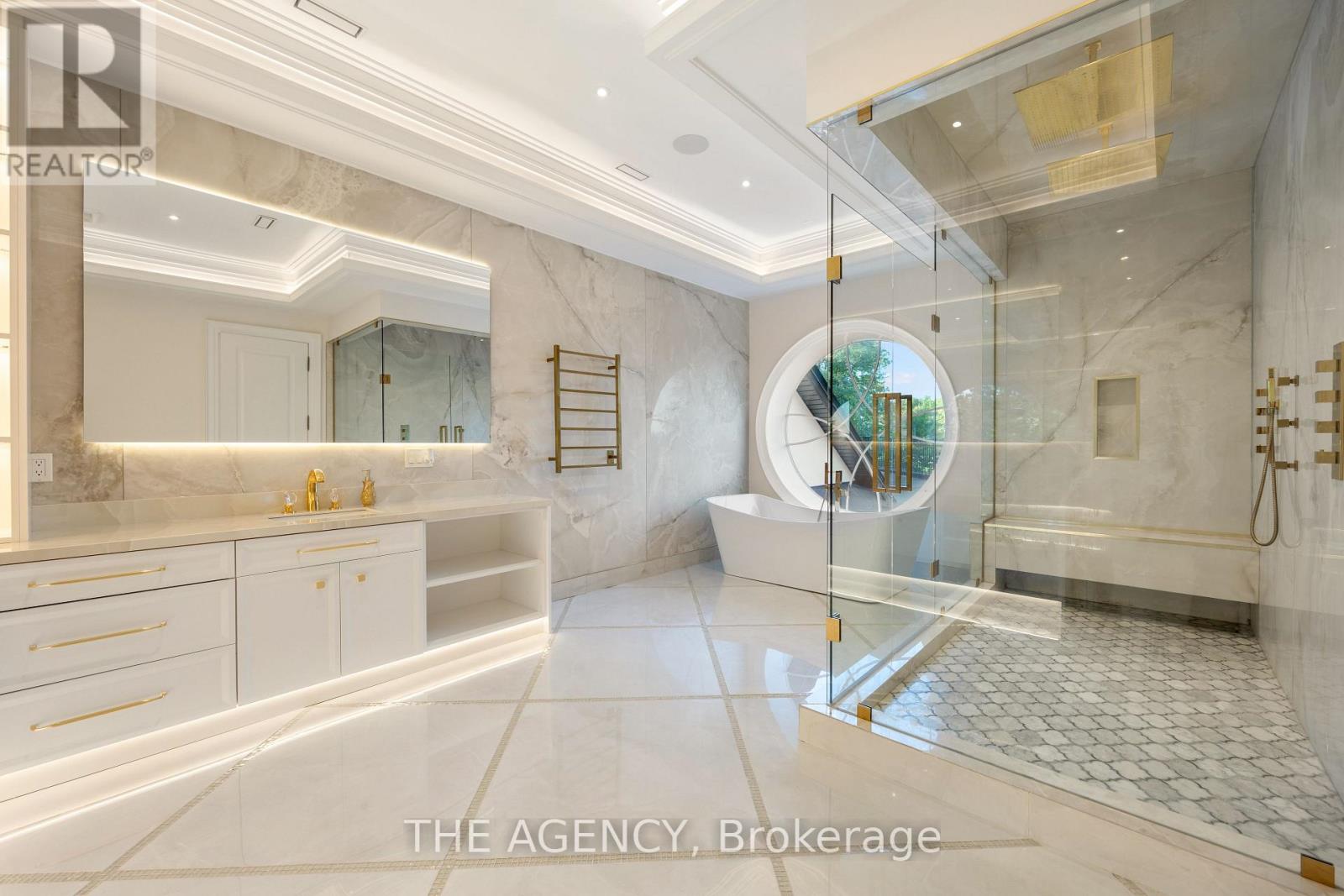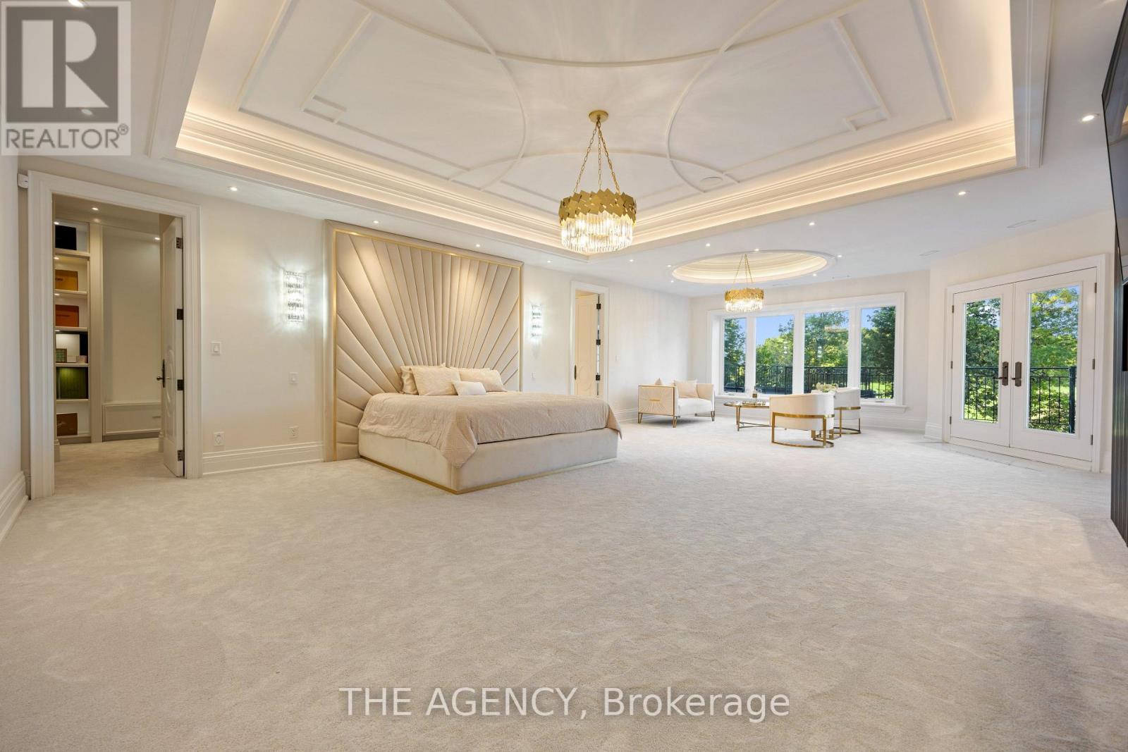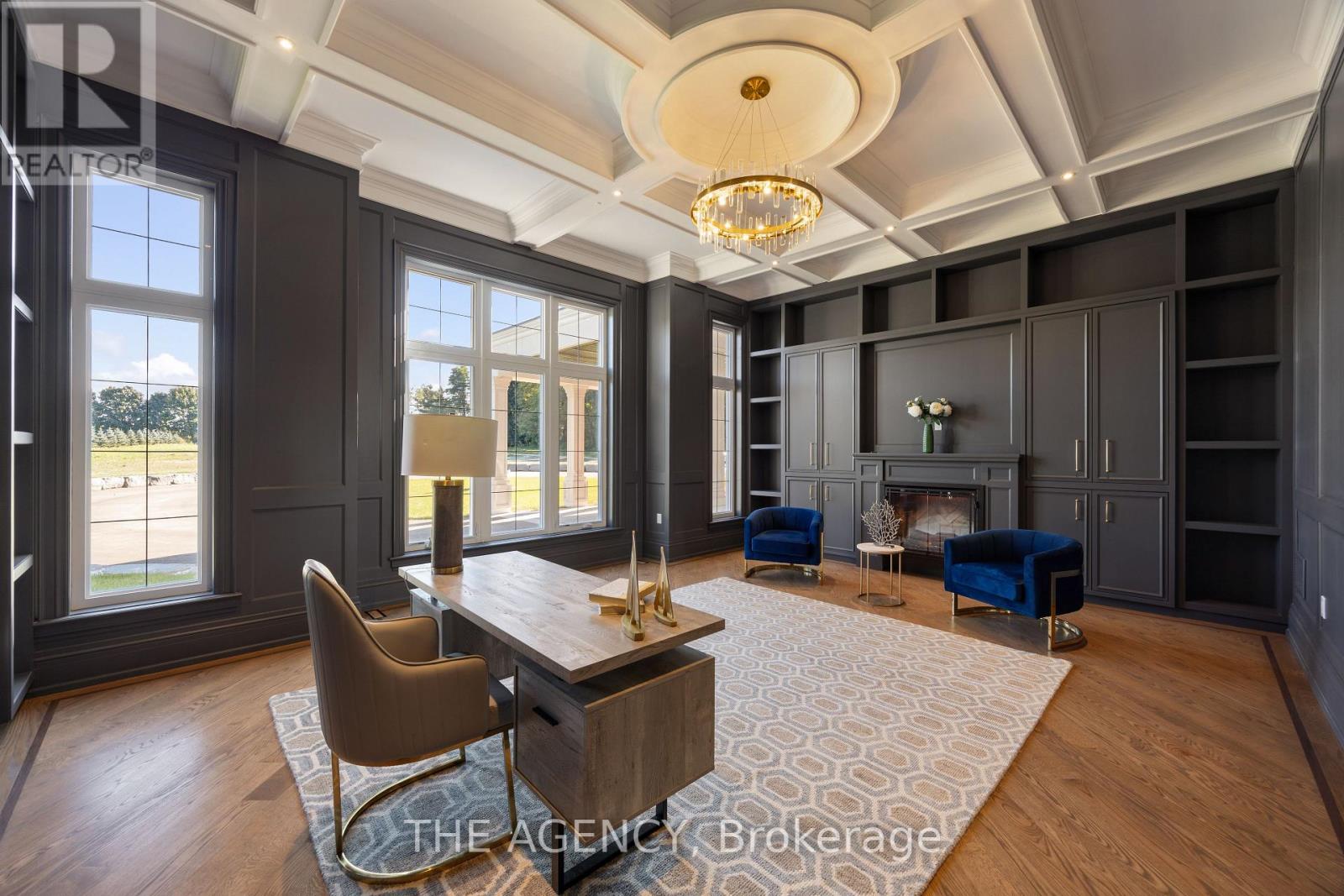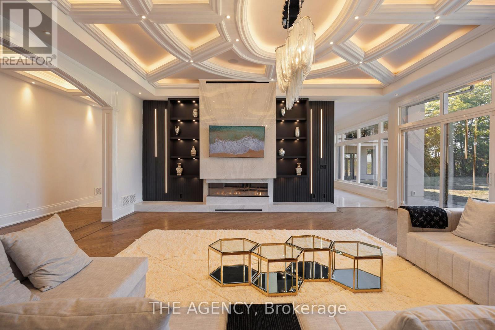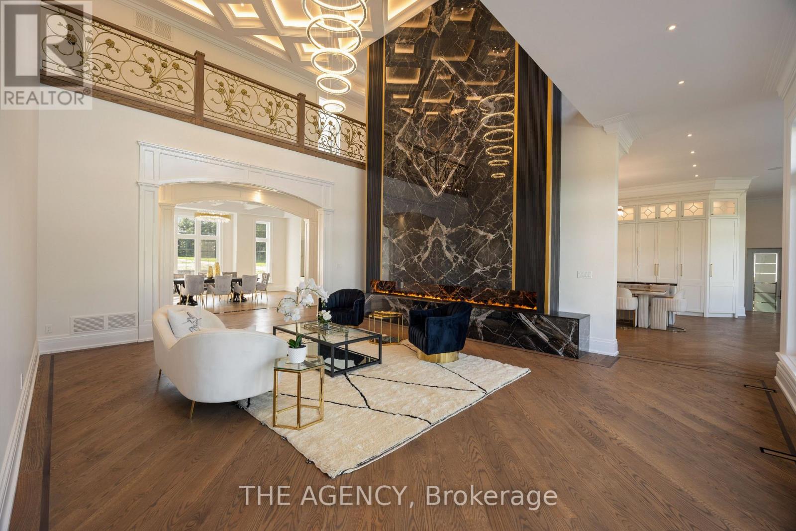 Introducing a residence of unrivaled grandeur, where architectural artistry meets timeless elegance. Nestled on ten acres of immaculate, level grounds, this extraordinary estate offers over 20,000 square feet of refined living space, where each room showcases exceptional craftsmanship and exquisite detail destined to surpass every expectation. A majestic foyer welcomes you with soaring ceilings and sweeping palace-inspired staircases, setting a regal tone for greeting guests in opulent style. Expansive entertaining salons boast custom 22-foot ceilings and walls of glass that frame panoramic vistas, immersing the interiors in natural light and breathtaking scenery. Indulge in eight sumptuous suites, including a master retreat designed as a sanctuary of comfort and serenity. Unwind in your private spa and sauna, enjoy cinematic experiences in the state-of-the-art theatre, or marvel at the serenity of an indoor waterfall that adds a touch of tranquility to your surroundings. Four elegant fireplaces enhance the ambiance throughout, while the gourmet kitchen is a chefs dream, equipped with a 60-inch Wolf gas range, Wolf hood, built-in Bosch coffee maker, offering a culinary experience as luxurious as the home itself. This estate is equipped with advanced amenities, including steam humidifiers, four furnaces, four air conditioning units, a comprehensive reverse osmosis water system, and a whole-home water softener, ensuring an uncompromising lifestyle defined by comfort and sophistication. Experience a property where luxury knows no limits, and every moment is elevated to an art form. You won't find this level of luxury, square footage and land combined anywhere else! (id:65552)