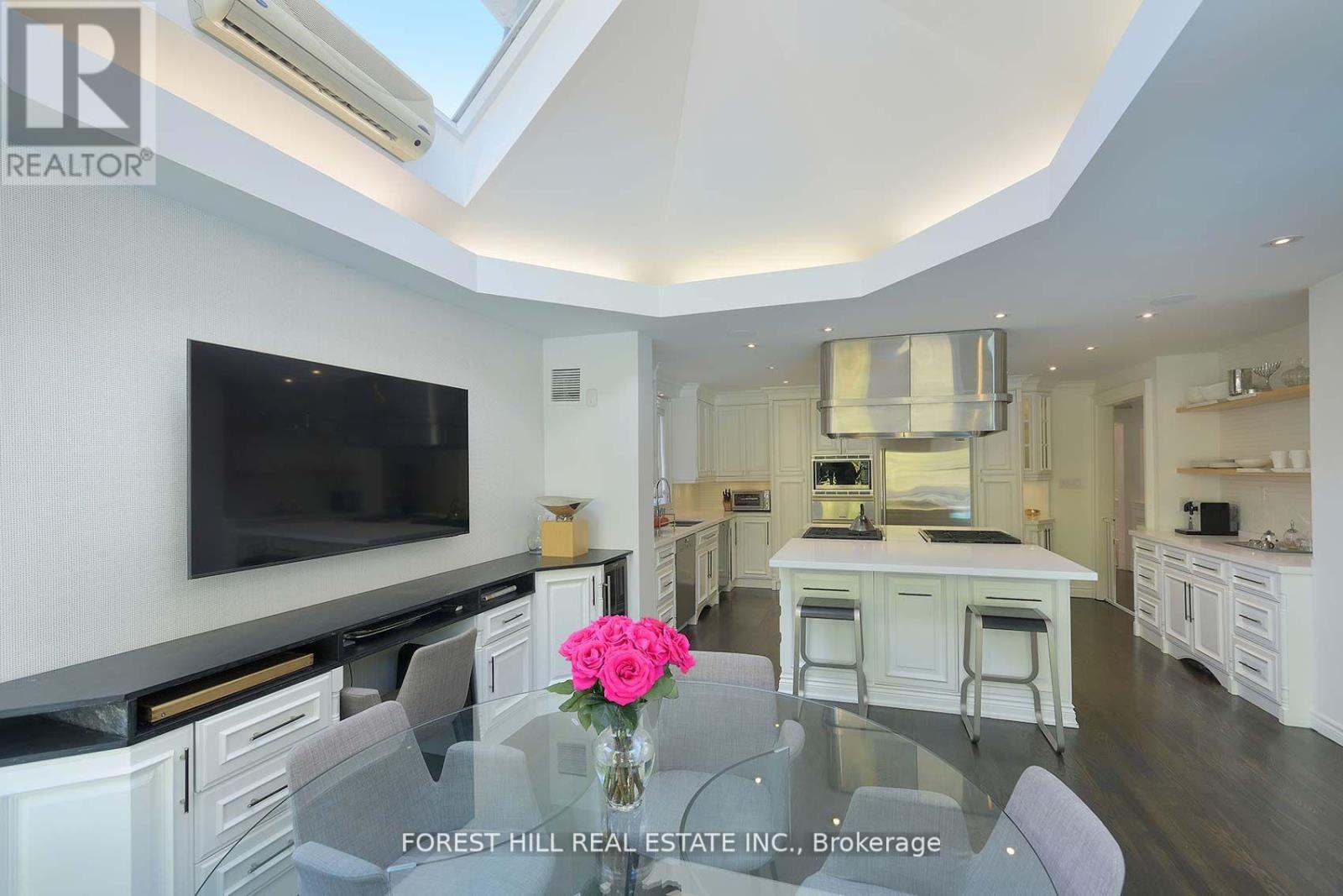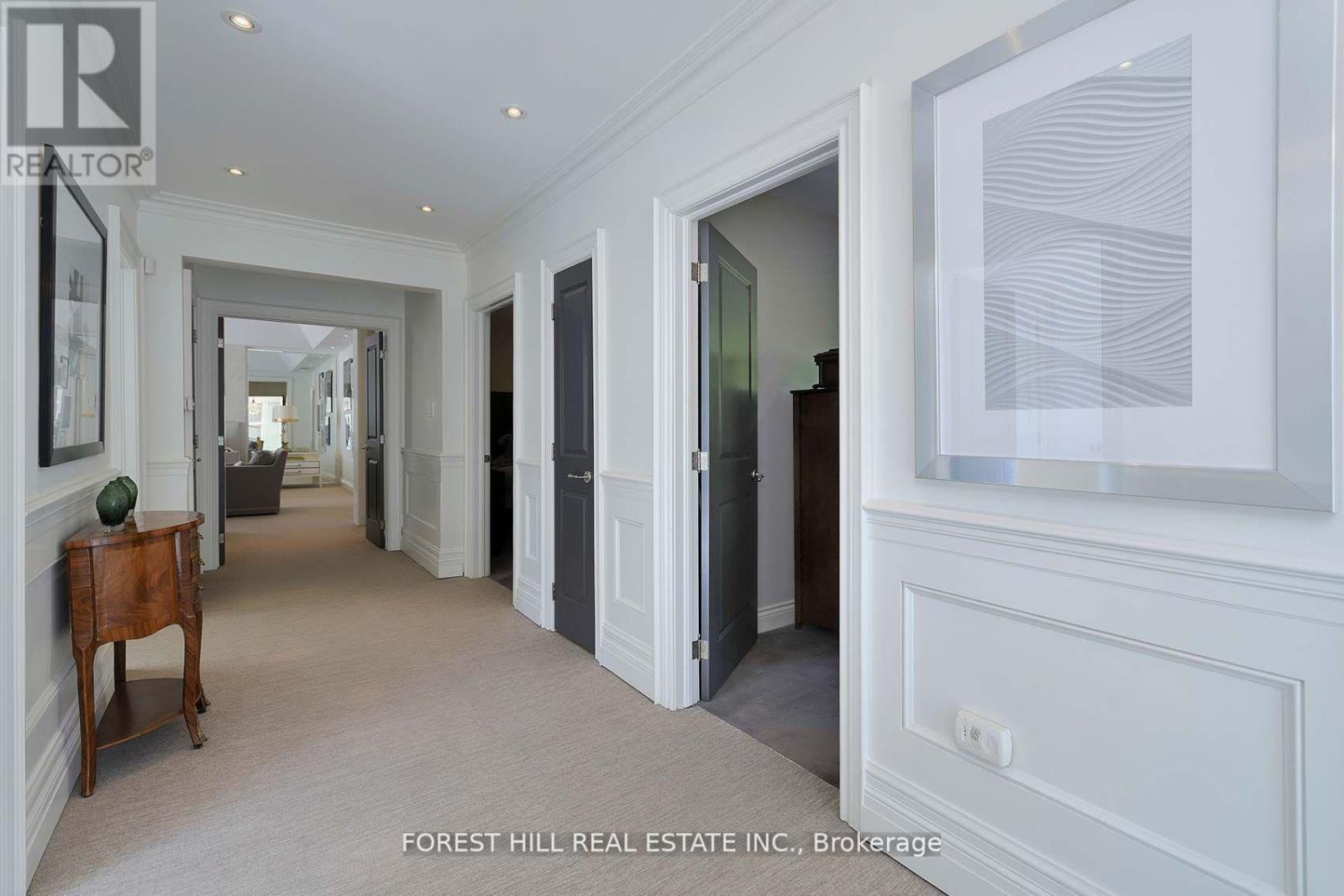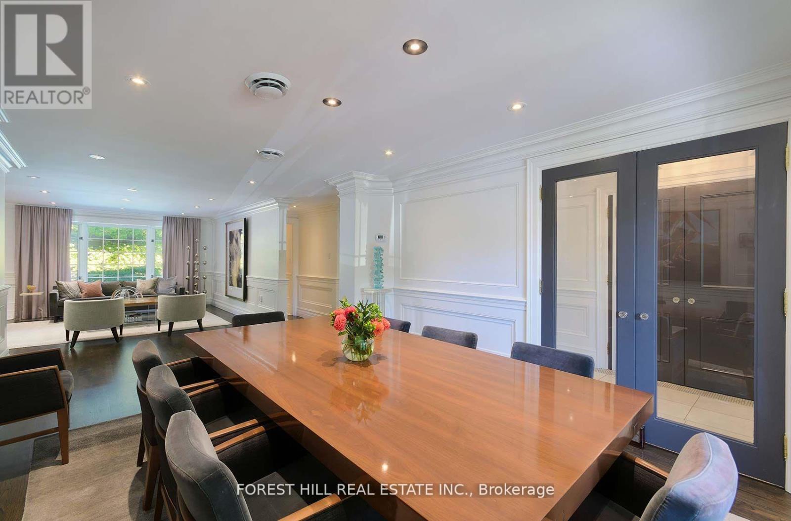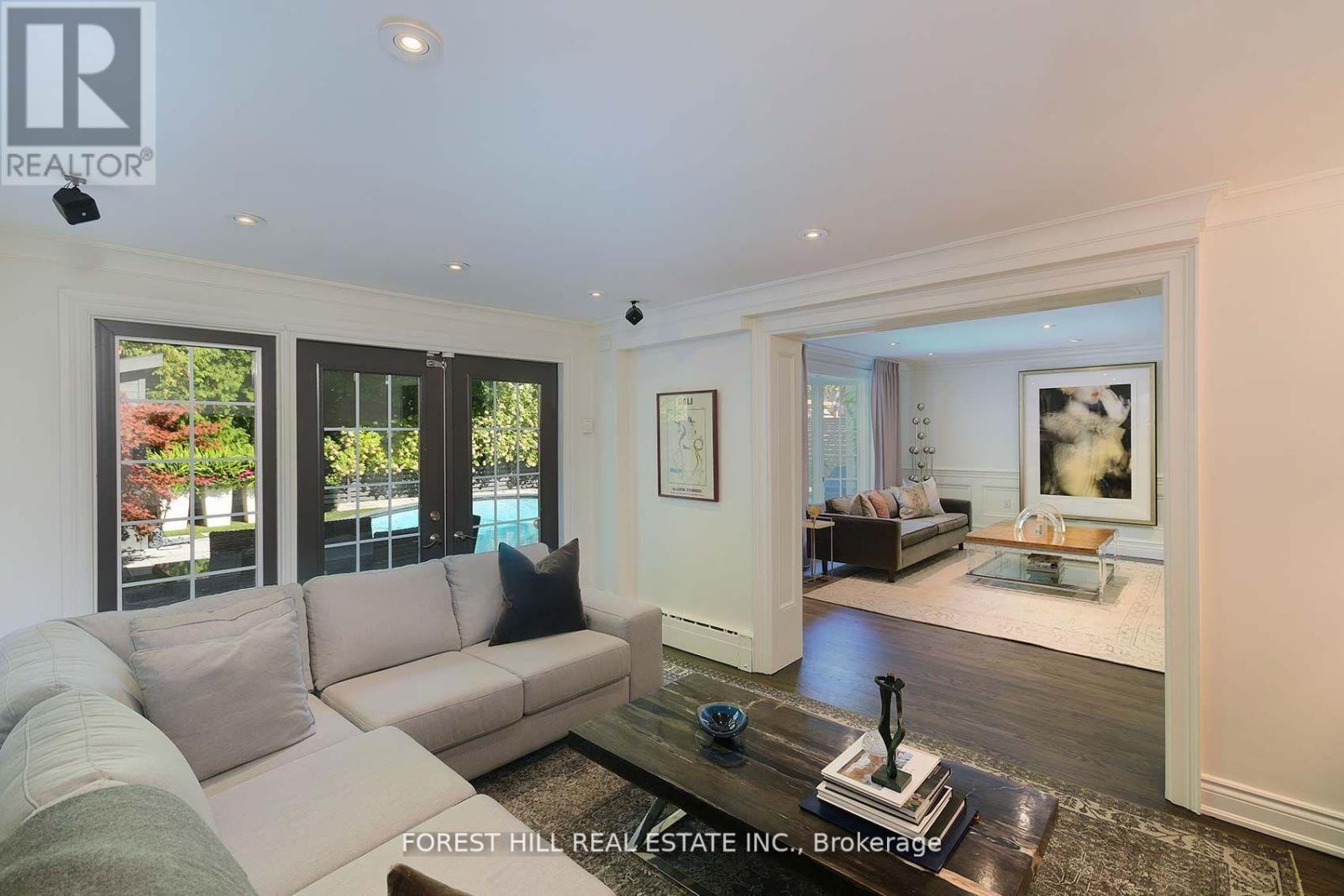 This is the one! 34 Forest Ridge Drive checks all your boxes beginning with its stunning curb appeal. Situated on a 59' wide lot on this quiet and most coveted street in upper Forest Hill Village, this sophisticated home features 4+1 bedrooms, a main floor office, a main floor family room and a main floor powder room. The welcoming foyer with large closet invites you into an elegant living space where you can relax and entertain. The living room is bright with a gas fireplace and views of the stunning back yard with pool and beautiful garden. The stylish dining area is spacious enough for large dinner parties yet intimate enough for smaller ones. The incredible eat-in kitchen features stainless steel appliances, Caesarstone countertops, two built-in Wolf gas ranges, two Miele dishwashers, a Sub-Zero fridge, two built-in warming drawers, Avantgarde wine cooler and more. The main floor is hardwood throughout with beautiful views overlooking the backyard pool and garden. Upstairs the gorgeous large primary bedroom has a vaulted ceiling, a sizeable seating area and a six-piece en-suite with heated floors. There is a walk-in closet and two double closets as well as abundant additional storage in the ensuite. There are three additional upstairs bedrooms. Bedroom 2 features a tandem room and 4 double closets with built-in storage. Bedrooms 3 and 4 each has two double closets with built-in storage. The basement rec room is large with good ceiling height. There are an additional bedroom, bathroom and a cedar closet on the lower level. The laundry room is spacious and storage is abundant. This is a great location with close TTC and highway access. Walking distance to shops, good schools, parks, the Beltline Trail, Cedarvale Ravine and more. (id:65552)