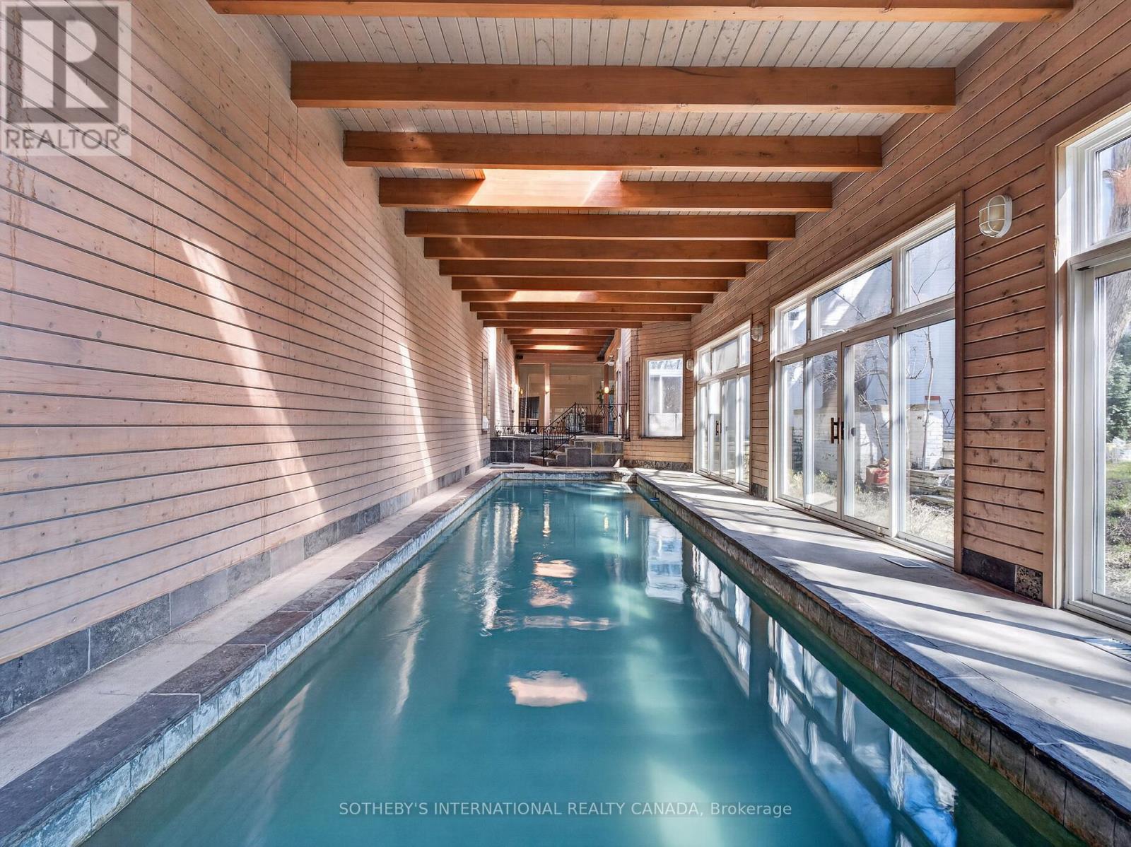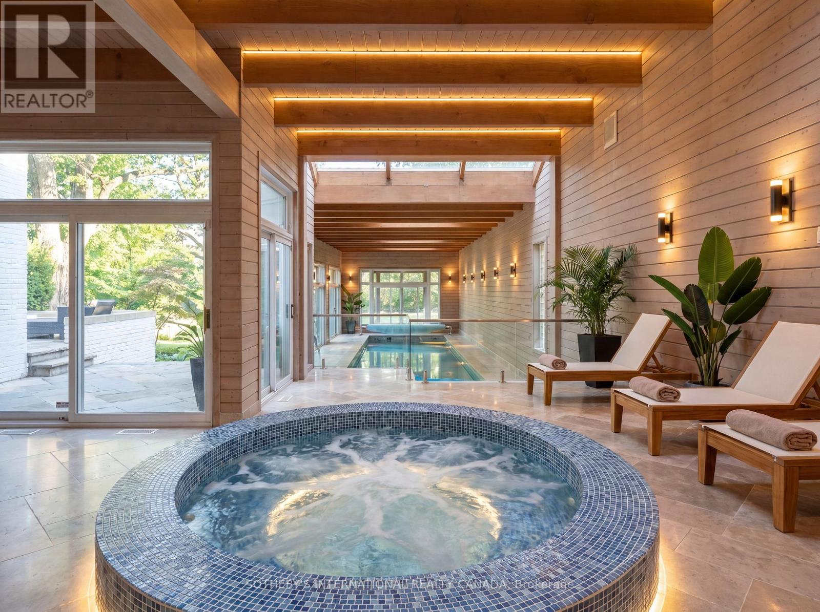 39 Burton Road is a landmark residence, gracefully positioned within one of the most exclusive and prestigious enclaves in Forest Hill. Set on a rare 100x170.5 FT lot, this extraordinary estate offers appx 10,000 to 14,000 SF living space and presents a remarkable opportunity for both luxury living and scarcity investment. The expansive 17,000 SF grounds are nestled with a dense canopy of mature trees and exquisitely landscaped gardens that provide a private and sensational oasis. Approved severance allows two premium lots, effectively transforming one prominent residence into two and maximizing land value on one of the finest streets. The current mansion was built for an exceptional luxurious lifestyle that balances sumptuous entertaining and personal relaxation. Indulgence recreational amenities highlight an indoor saltwater pool, a circular hot tub, and a sauna that opens to a serene alfresco retreat for maximum comfort and wellness. Originally a Georgian, the mansion was reimagined by acclaimed architect Stanley Shenkman and interior designer Robert Dirstein into a striking modernist statement, defined by bold geometry, sweeping curves, and a flat roofline. Recognized for its distinctive aesthetic, once-famous black-changing-to-white exterior, the residence became a design icon after the radical redesign. Today, the home reflects the celebrated eclecticism and modernism, starring a teak paneled foyer, retro mid-century details, wall-to-wall windows, extensive use of skylights and French doors that bathed the interiors with natural light. This excellent location is also known for its extreme proximity to walkable social hubs, places of worship, and top-tier schools such as UCC, BSS, Holy Rosary, St Michael's, Robbins, Bialik, Leo Baeck, Forest Hill CI and more. Rich in architectural significance and cultural character, the legendary residence is a rarity offering in a highly coveted row renowned for its affluent scale, influential prestige, and enduring grandeur.