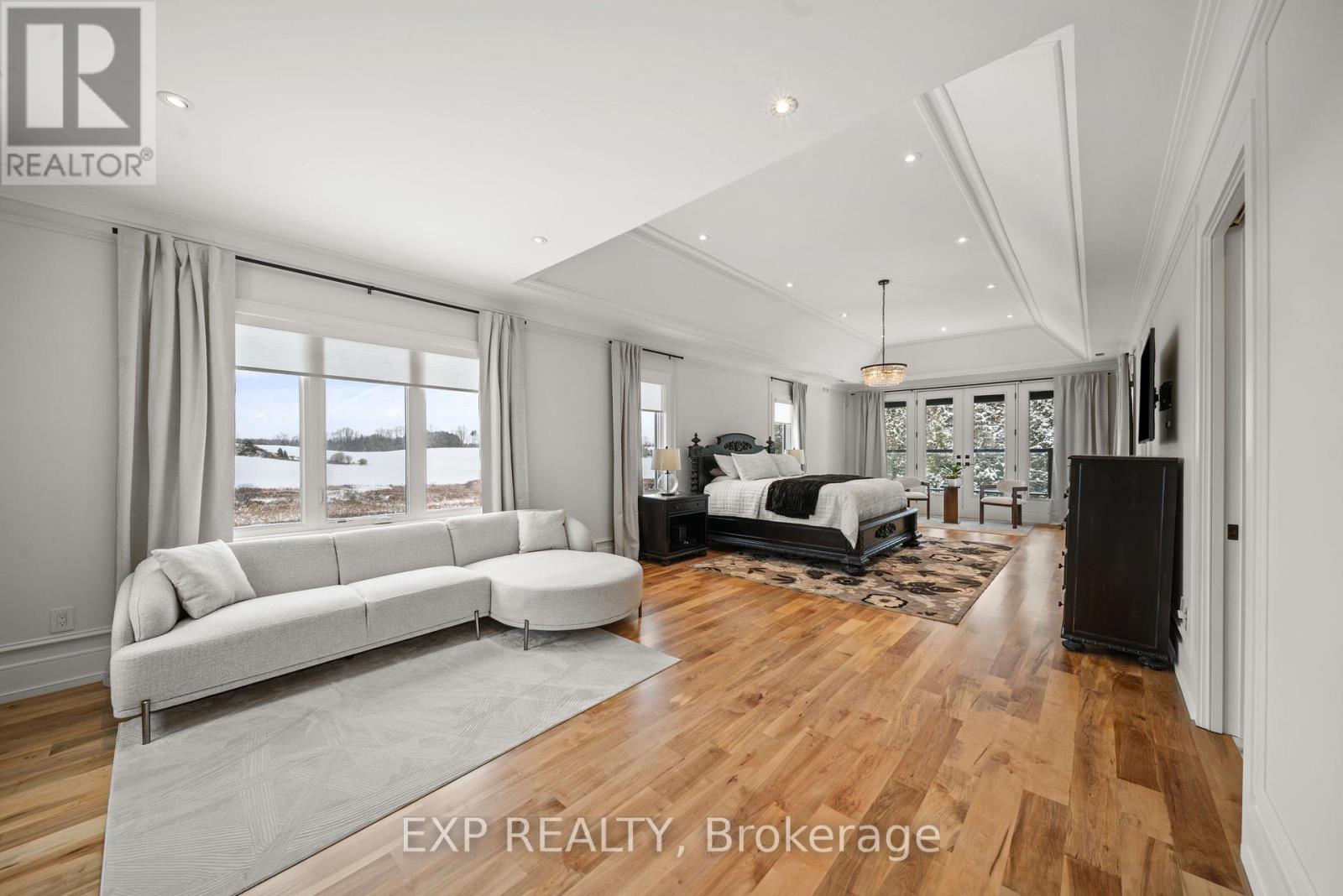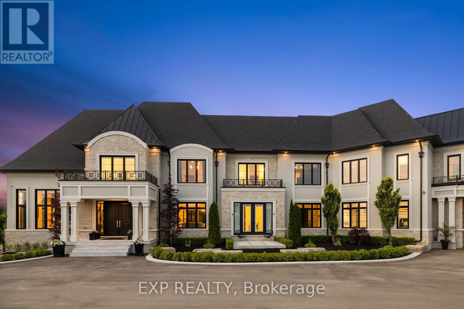 Welcome to the lap of luxury at this majestic King City gated estate, spanning on over 2.5 acres of picturesque land. With over 10,000 square feet of modern and tasteful finishes, this home exudes elegance with a grand entrance, crown molding, wainscoting and hardwood throughout. A chef's lavish kitchen complete with Dacor fridge and freezer, an 84-inch Wolf stove, and not one, but two walk-in pantries. Boasting 5 bedrooms, the primary bedroom includes a extravagant closet and an exquisite bathroom. Additionally, this property showcases a huge in-law suite for extended family or guests. Newly finished, light-filled walkout lower level. Featuring an expansive theatre room with a sleek wet bar perfect for entertaining in style. This impressive space also includes an additional bedroom, two elegant bathrooms, and a spacious recreation room. Step outside to the backyard oasis, offering unmatched privacy, a basketball court, open field, and a cozy firepit-perfect for outdoor gatherings and relaxation. Experience the ultimate in luxury living at this remarkable estate. (id:65552)
