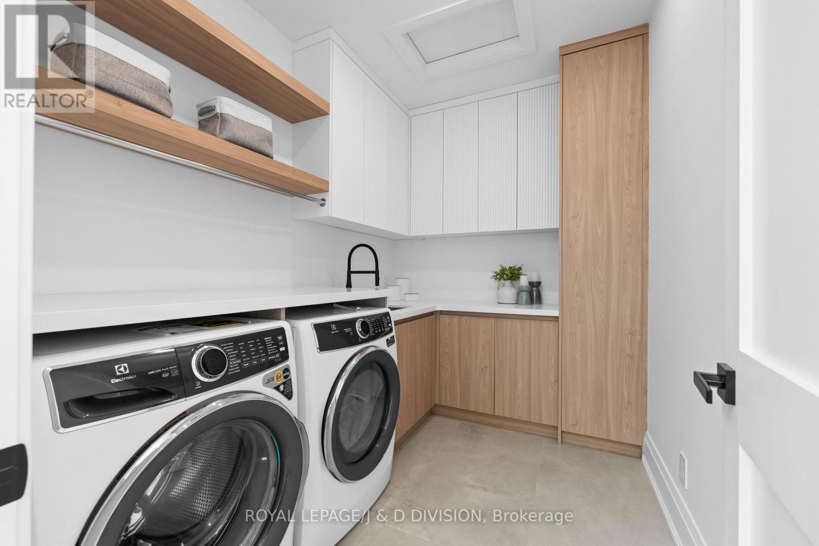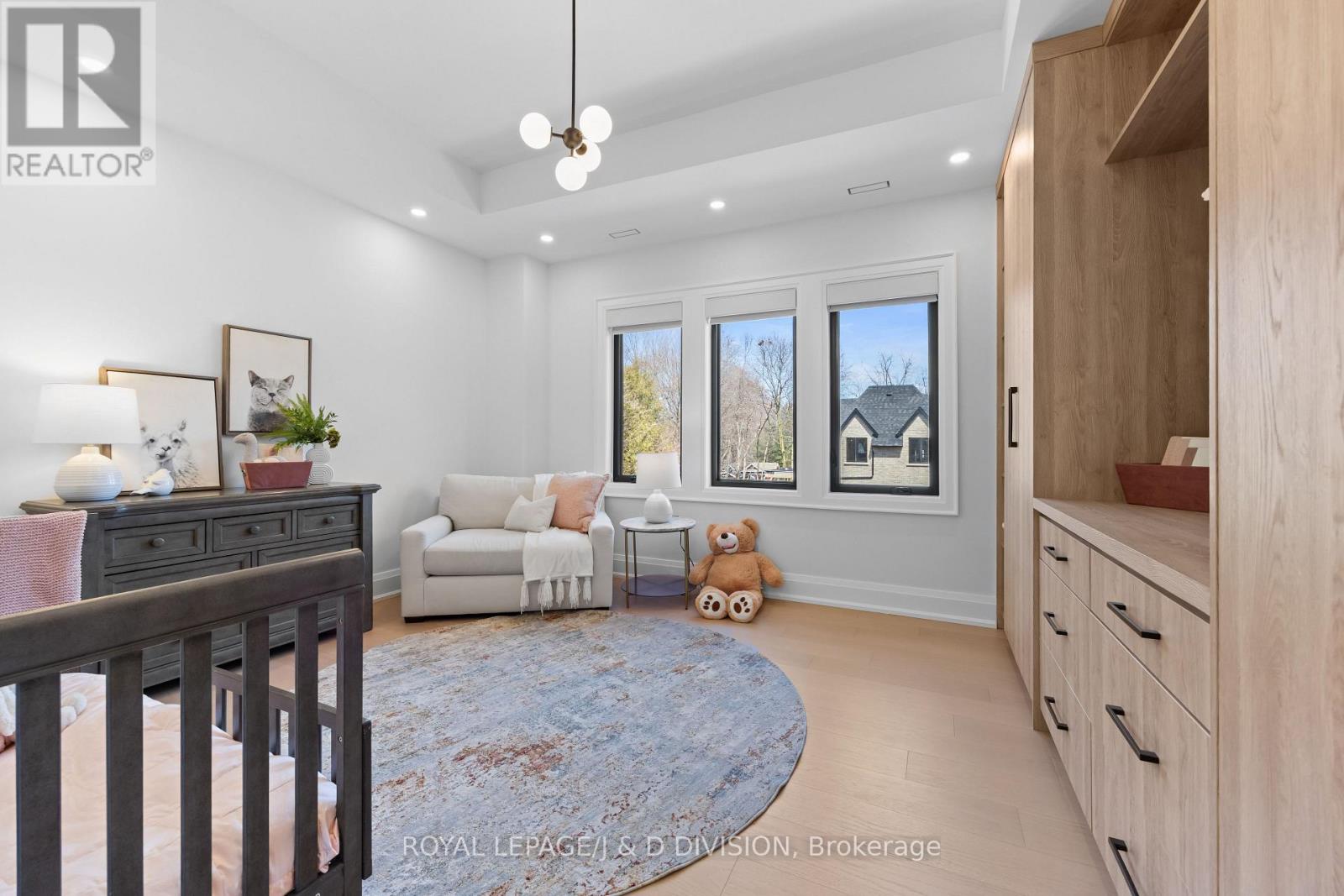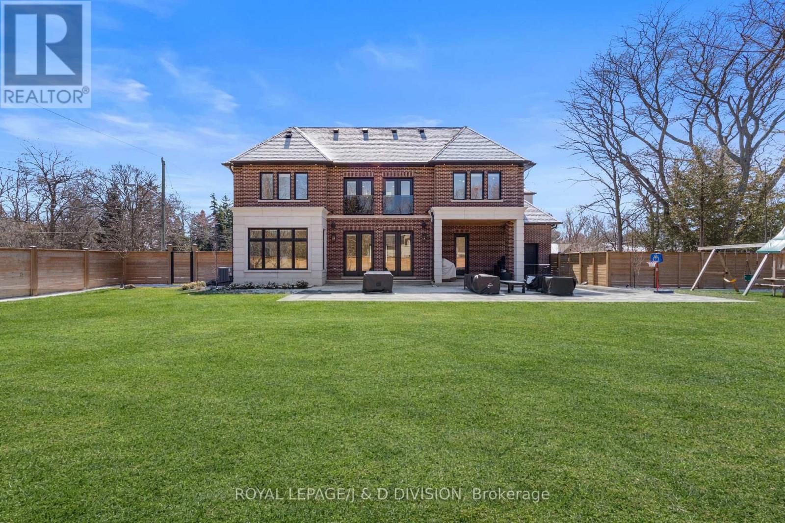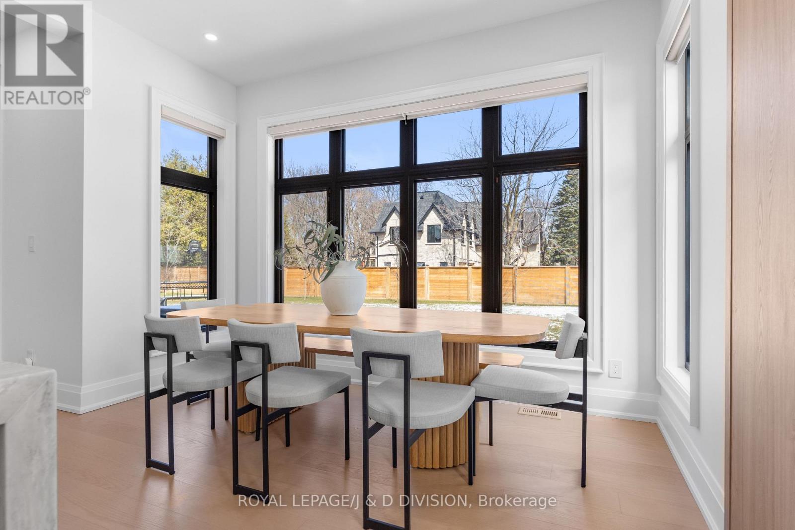 A striking residence, architecturally designed by the renowned Peter Higgins. This custom-built residence sits in one of the most exclusive enclaves in the Scarborough Bluffs just steps from the lake. It offers nearly 7,000 square feet of living space on an exceptionally private lot. Step inside where luxury is boundless. A classic centre hall plan introduces elegant living and dining rooms. The living room features exquisite millwork and a bright south exposure, while the formal dining room comfortably seats 8-10 guests and is anchored by a gas fireplace. The family room is both dramatic and inviting, with a coffered ceiling, French doors to the gardens, and a striking stone fireplace wall. The chef's kitchen blends elegance with functionality in an open-concept layout overlooking the family and breakfast areas. A large centre island with seating for four is complemented by floor-to-ceiling cabinetry, premium integrated appliances, and a seamless full-height backsplash. The breakfast area, set within a garden-view window bay, seats up to eight and is supported by a butler's pantry and walk-in pantry. A discreet mudroom with access to the double garage and garden, along with two powder rooms, completes the main floor. A sweeping staircase ascends gracefully to the second floor, adorned with intricate custom millwork and two skylights that bathe the landing in natural light, creating a luminous and unforgettable architectural statement. A luxurious primary suite features a fireplace, sitting area, and Juliette balconies. The spa-inspired ensuite offers heated floors, steam shower, and refined marble and quartz finishes, alongside an expansive walk-in closet. Four additional bedrooms, three with ensuites, and a laundry room complete the second level. The expansive walk-up level features a wine room, fitness studio, nanny suite, spa bath, recreation room with wet bar, heated floors, and separate garden access. All floors are accessible by private elevator. (id:65552)