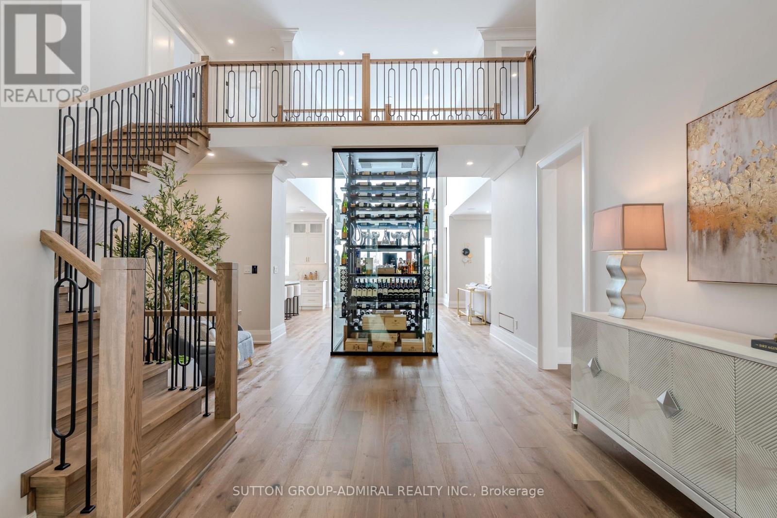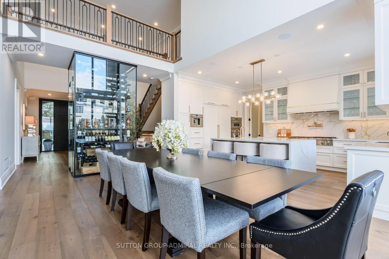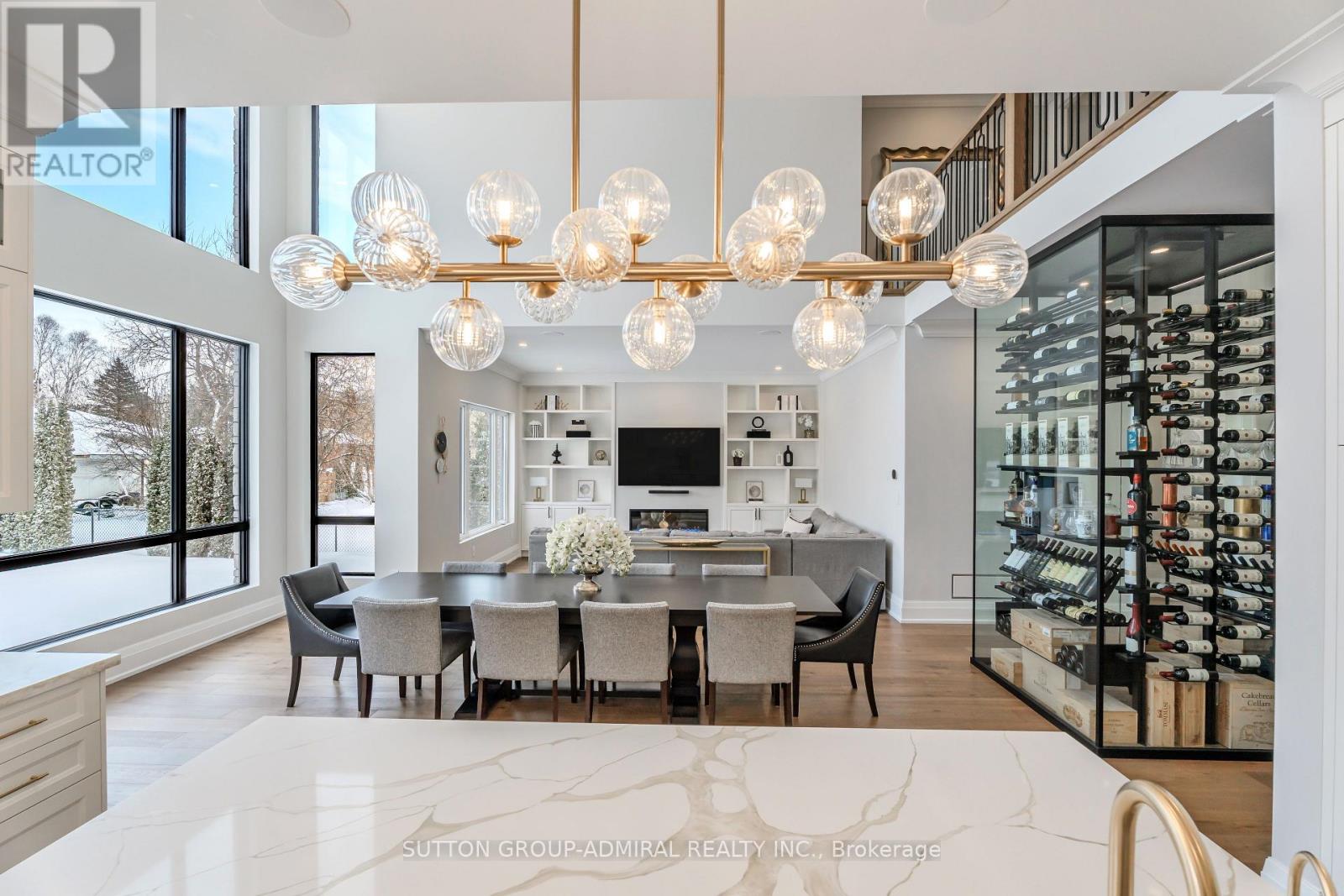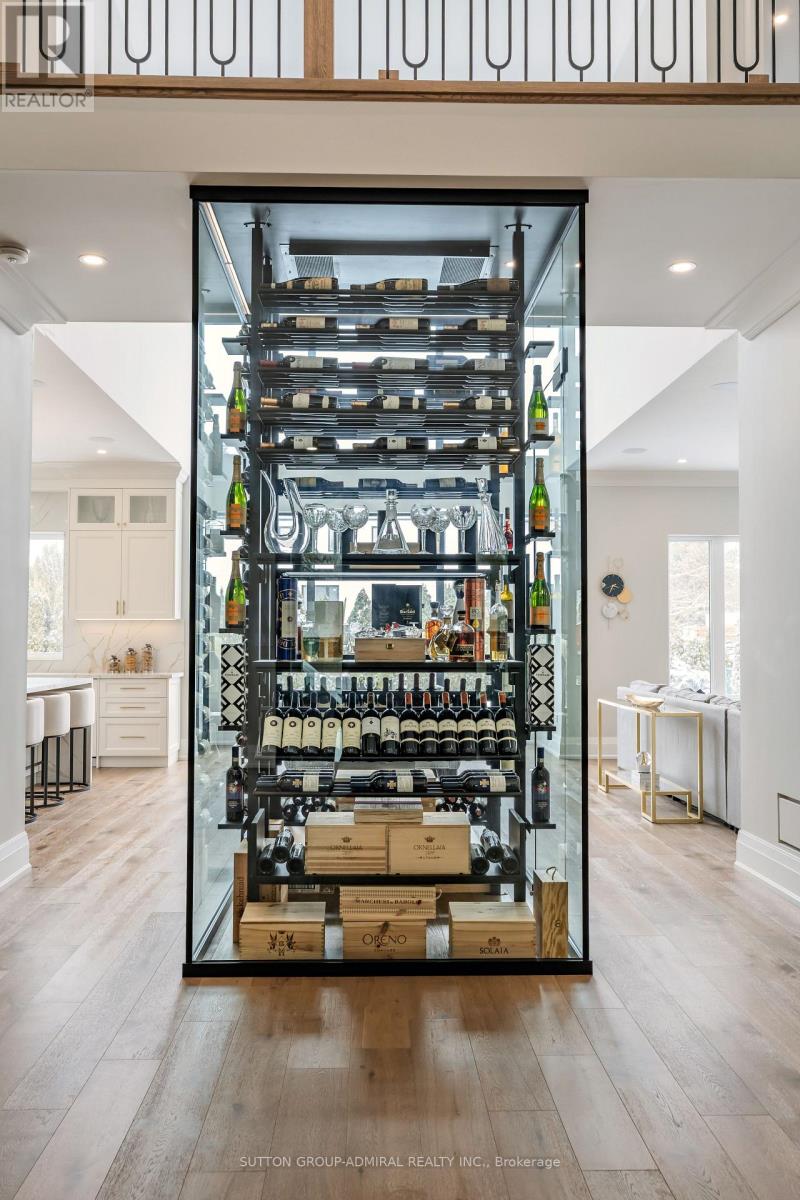 Luxury custom-built executive residence, perfectly tailored for multigenerational living. This striking property showcases timeless stone craftsmanship, a custom 10 ft front door and an oversized 3.5 car garage - ideal for car enthusiasts! Designed with both everyday comfort and upscale entertaining in mind, the main floor features a spacious primary bedroom retreat- ideal for elderly parents, extended family, or a live-in nanny- offering privacy and convenience without compromising luxury. The foyer features a striking custom wine cellar, complete w/a cooling system & capacity for 300 plus bottles-a wine connoisseur's dream. The heart of the home is the stunning custom kitchen w/large centre island w/breakfast bar, built-in Thermador appliances and a generous servery with additional storage and a rare walk-in cooler. The kitchen's large eat-in area features soaring cathedral ceiling & expansive windows that floods the space with natural light & overlooking the inviting family room w/custom built-ins & a fireplace. The main floor also features a home office w/built-in cabinetry, perfectly suited for remote work or study. A large mudroom w/access door into garage & walk-out to yard plus a stackable washer/dryer. Upstairs, you will find an additional primary bedroom w/a large 5 piece ensuite with oversized glass steam shower & separate soak tub & a large walk-in closet. There are also two additional bedrooms each w/their own ensuite bathrooms & walk-in closets. Plus an additional upper level laundry room w/large window, B/I cabinetry & counters. This exceptional home masterfully blends elegance, functionality & flexibility! (id:65552)