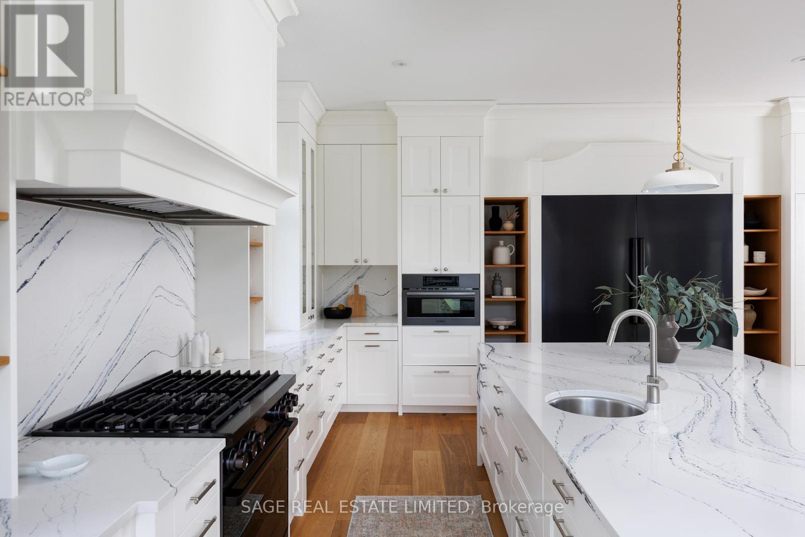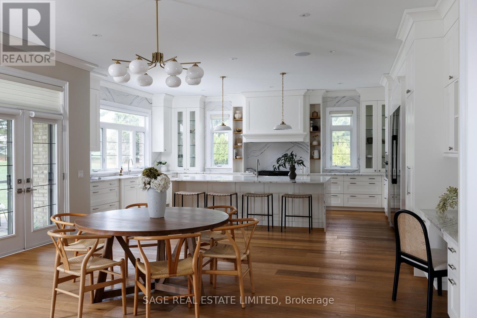 You've been looking for this house your whole adult life. You just didn't know the address. Situated on one of Kleinburg's most coveted positions off the Boulevard, this estate sits at the edge of Copper Creek Golf Course, one of Canada's top-ranked courses. The rear opens directly onto the fairways with a seamless stretch of green anchored by a mature treeline. The lot is pool-sized and perfectly proportioned for it. You don't own the course, but from the back patio's exposure at sunset, it may feel that way. The exterior is pure stone, not chosen but earned. A 4-vehicle garage, herringbone paver driveway and a standing-seam metal detail at the entry portico is the quiet signature of a builder who was showing off. Inside, a rotunda foyer with coffered dome ceiling sets the tone immediately. Principal rooms are generous without being cartoonish. A great room, anchored by a dramatic floor-to-ceiling stormy book-matched stone wall. 5 sets of French doors onto the covered patio and the course beyond. The kitchen is not a showroom. White shaker Downsview cabinetry to the ceiling, a waterfall island in book-matched Cambria quartz with seating that invites people to stay, a Dacor range w/ commercial grates & a Dacor refrigerator for the person who knows what that means. Around it, the room opens into an informal dining area built for family dinners, game nights, and conversations that go longer than planned. Every house has a kitchen. Very few have a room like this one. The primary suite is a private residence within the house. 3 additional upstairs bedrooms are thoughtfully appointed for family at every stage of life. Below grade, the spaces are finished to the same standard throughout. Sweeping recreation room, nanny suite, home gym space, wet bar roughed in, and storage that will change your life. This is where the hockey bags live and the kids host their friends without disturbing a soul upstairs. This is not a house you settle for. This is a house you arrive at.