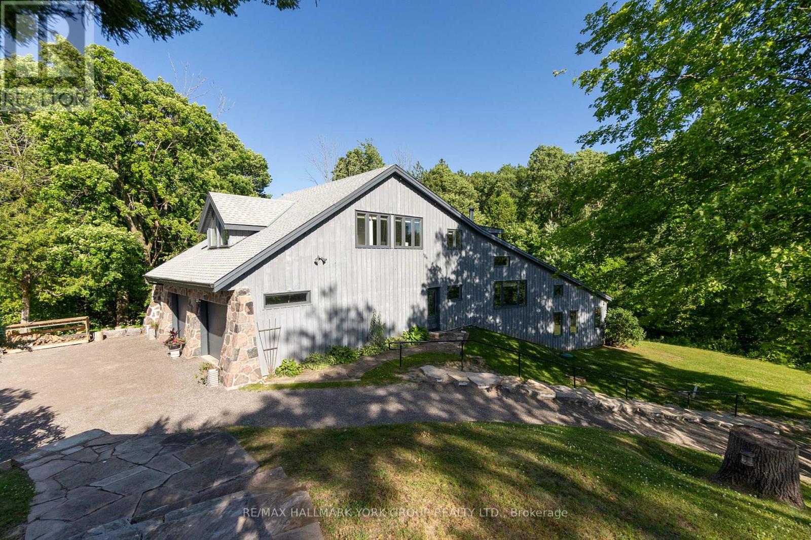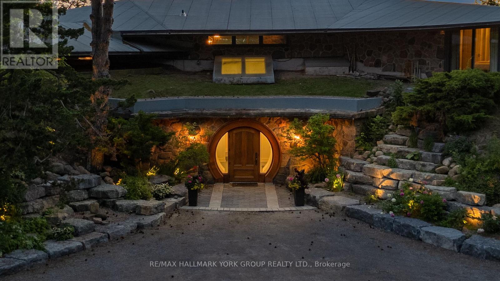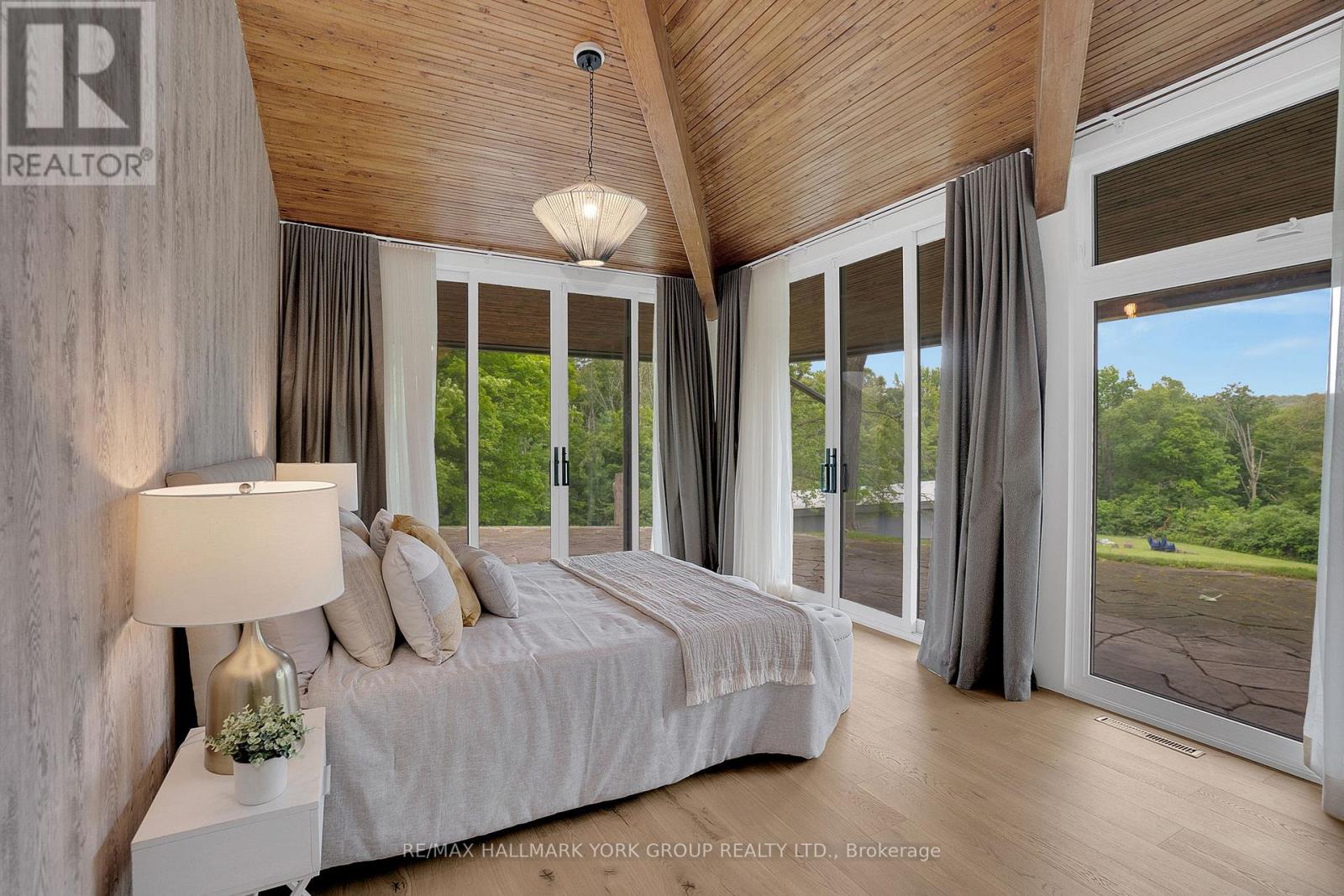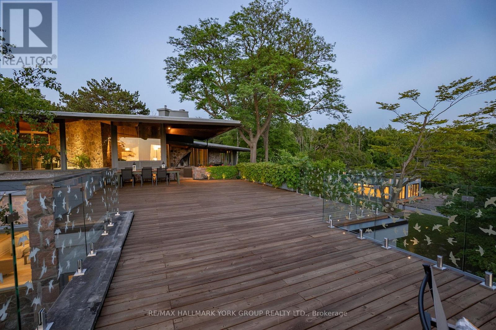 Welcome to an extraordinary estate tucked away behind welcoming stone pillars and a winding forested driveway! This is a work of art designed by the legendary Grant Whatmough and Gardiner Cowan, with distinctive Frank Lloyd Wright style of Architecture. This iconic Mid-Century Modern residence is gracefully integrated into 32 acres of majestic land, where nature and architecture exist in perfect harmony. From the moment you approach the stunning entry door, you're drawn into a world of timeless design and serene beauty. This home is lovingly maintained with extensive renovations, while preserving the character and soul of this home, Including Floor-to-ceiling windows bring the outdoors in, Stone fireplaces indoor and out, original stone walls and impressive wood beams throughout. Spanning approximately 5,000 sq ft, the main residence features 6 bedrooms, 7 bathrooms, an office, a meditation room, and a separate nanny suite. Multiple terraces and decks surround the home, offering breathtaking views of the land, and a tranquil lake creating the feel of a private luxury retreat. This property features a rare second home- fully renovated and approximately 3,500 sq ft-offering 3 bedrooms, 4 bathrooms, and a massive loft space! This second home is ideal for an extended family! There is an additional Yoga studio with an outdoor shower! a Detached garage/ workshop, a charming cedar Cabin with Sauna and Cold plunge, a Covered cabana for entertaining or relaxing on the property. This is a once-in-a-lifetime opportunity to own an architecturally significant estate in the prestigious King Township. With unmatched privacy, lush surroundings, and two beautifully appointed homes, this property is truly a timeless work of art. Don't Miss it! (id:65552)
